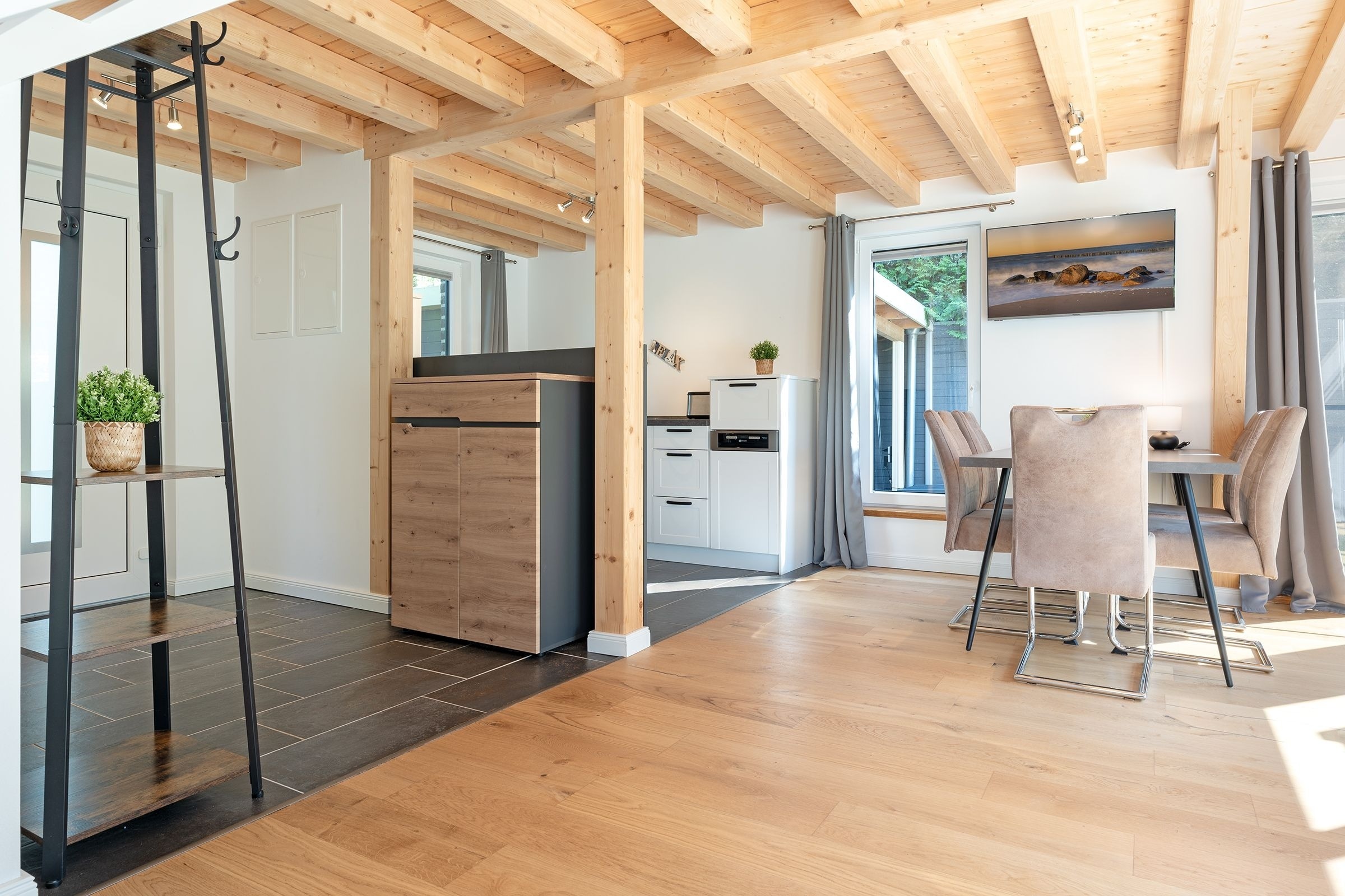 In bester Lage von Travemünde auf der Priwall Halbinsel: Das komfortable 2-Zimmer-Ferienhaus Muschel 16 mit 65 m² Wohnfläche sowie großzügiger Sonnen-Terrasse und eingezäuntem Garten für bis zu 3 Personen.