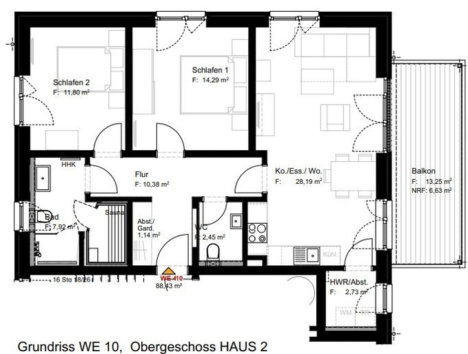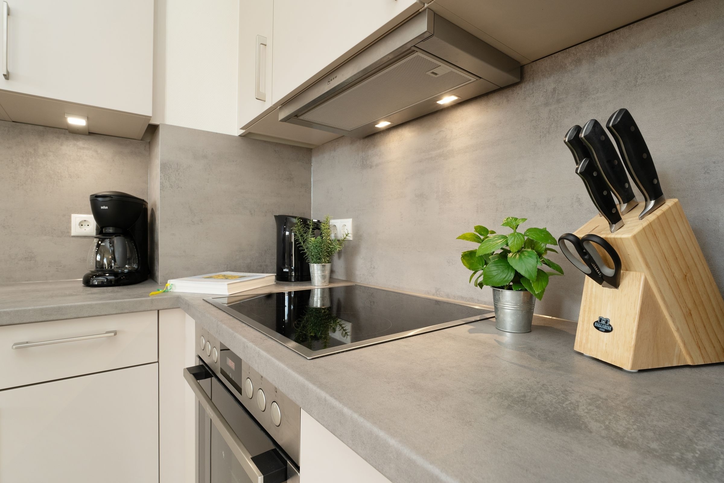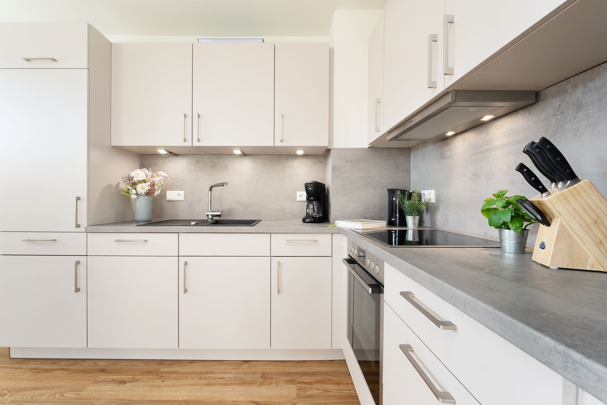 Der lichtdurchflutete Wohn- und Essbereich mit komfortablem Ecksofa und großem Flachbildfernseher ist das Herzstück dieser Wohnung. Die angrenzende, offene Küche ist sehr gut ausgestattet und bietet ausreichend Platz zum gemeinsamen Kochen. Auf dem überdachten, möblierten Balkon mit Süd-Ost-Ausrichtung sorgen zwei Sonnenliegen und ein Sonnenschirm für weiteren Komfort. Die Wohnung verfügt über zwei separate Schlafzimmer. Beide sind mit einem Boxspring-Doppelbett (180x200 cm, durchgehender Topper) sowie einem Kleiderschrank und einem TV eingerichtet. Zusätzlich zum Hauptbadezimmer mit WC, bodengleicher Dusche und eigener Sauna gibt es ein Gäste-WC. Die Fußbodenheizung in der gesamten Wohnung sorgt stets für eine angenehme Wärme.