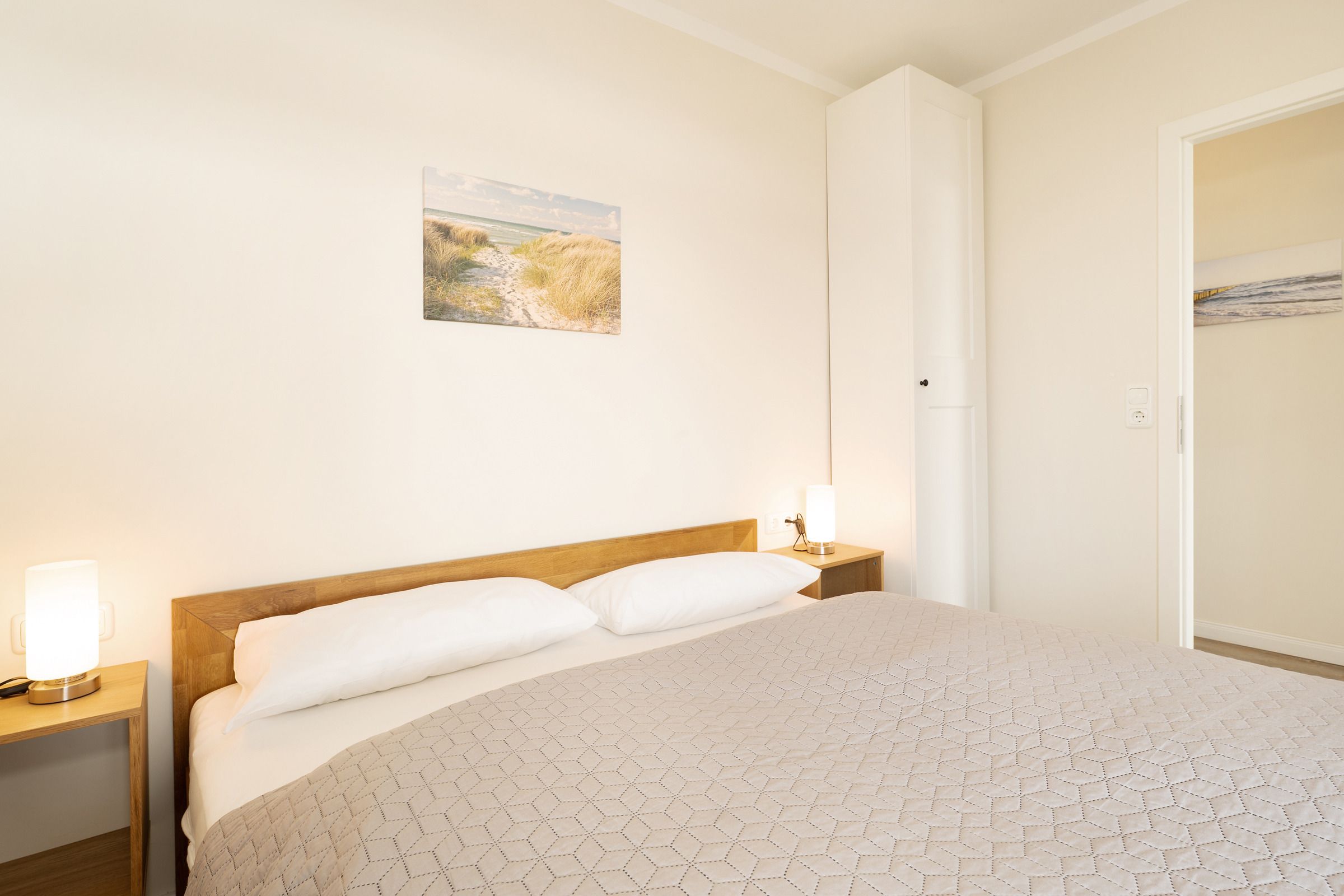 Herzlich willkommen im Urlaub! Ein Aufzug bringt Sie in Ihr Zuhause auf Zeit. Die geschmackvoll eingerichtete Wohnung bietet einen großen Wohn- und Essraum mit offener Küchenzeile. Die gute Ausstattung mit Induktionsherd, Backofen mit integrierter Mikrowelle sowie Geschirrspüler sorgt bei der Selbstversorgung für gute Laune. Für ein zeitgemäßes Medienerlebnis erwartet Sie eine kleine Musikanlage (Radio, CD, Bluetooth), ein Fernseher sowie ein kostenloser WLAN-Anschluss. Das Highlight des Feriendomizils ist sicher der großzügige Balkon. Sie haben in die eine Richtung einen tollen Blick auf die nur 100 m entfernte Ostsee. In der anderen Richtung fällt Ihr Blick auf das in der Ferne gut sichtbare Wahrzeichen der Insel Fehmarn: die Fehmarnsundbrücke. Die zwei getrennte Schlafzimmer, in denen jeweils ein Doppelbett steht, sorgen für eine angenehme Nachtruhe. Das Duschbad ist hell gefliest. Der Strand, genutzt nur von Bewohnern der Ferienwohnanlage, befindet sich nur zwei Gehminuten vom Haus entfernt und wird ohne das Überqueren einer Straße erreicht.