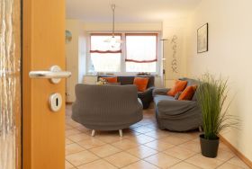 In einem ruhigen Wohngebiet am Rande von Burg: charmante, 78 m² große 3-Zimmer-Ferienwohnung im Erdgeschoss mit Terrasse für bis zu 4 Personen.
