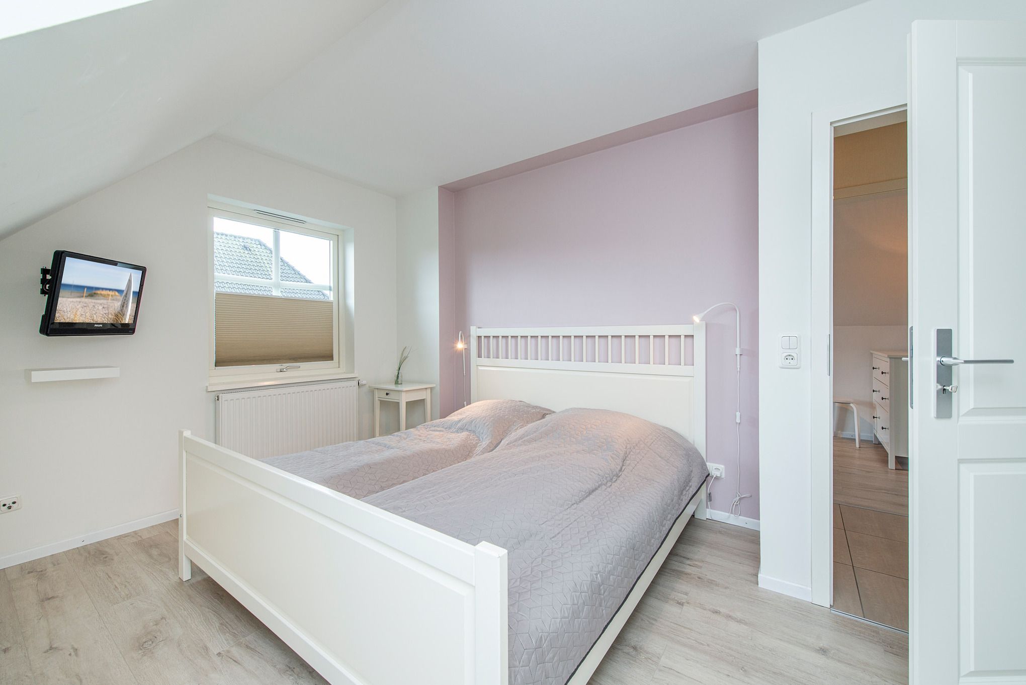 Schlafzimmer 1: Doppelbett (180x200 cm), Kleiderschrank, Verdunkelungsmöglichkeit: Plissee, TV, direkter Zugang zum Balkon