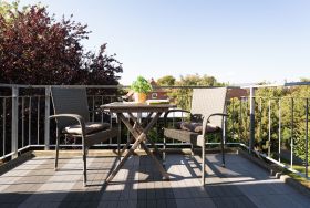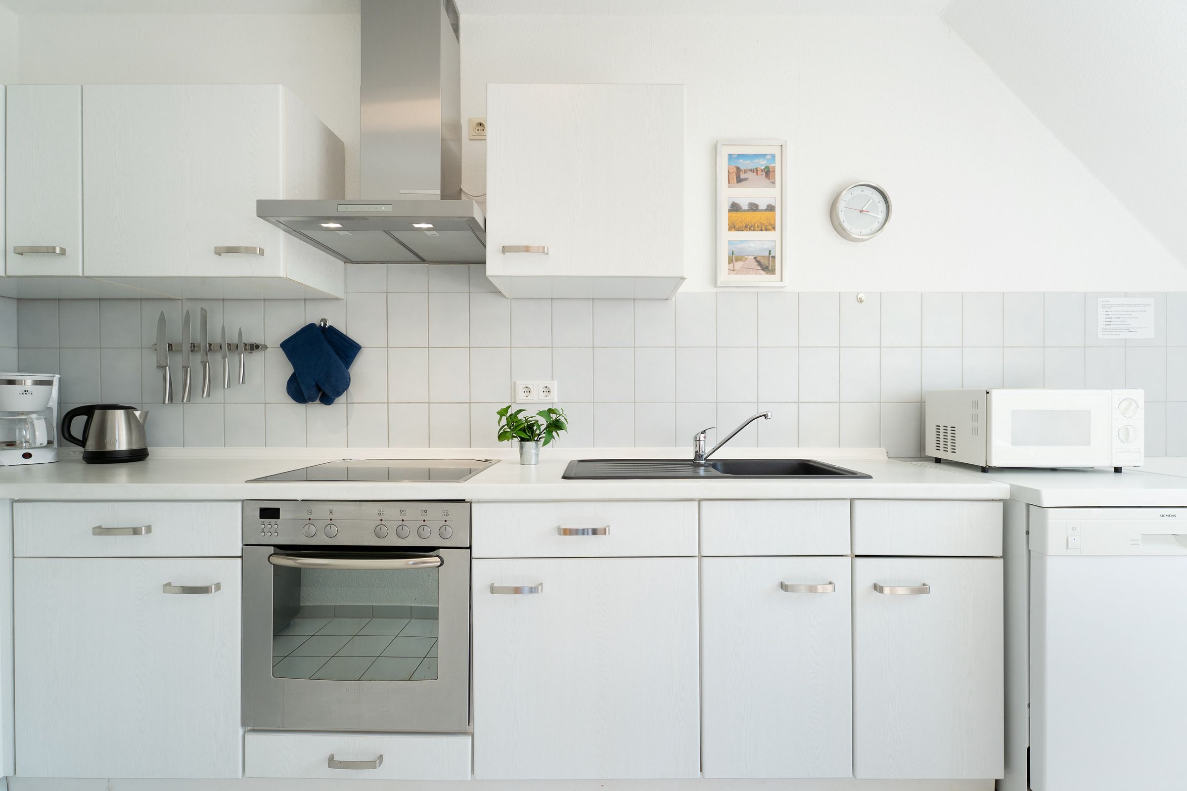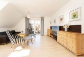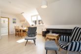 Die charmante Maisonettewohnung punktet mit einem hellen Wohn- und Essraum mit bequemer Polstergarnitur, TV-Gerät, Essecke sowie Zugang zum möblierten Balkon. Die separate Küche ist mit allen Annehmlichkeiten, wie z. B. Spülmaschine, Herd, Backofen und Mikrowelle ausgestattet. Im großen Schlafzimmer befinden sich ein Doppelbett (2x 80x200 cm, offenes Fußteil) sowie ein Kleiderschrank. Im zweiten Schlafzimmer stehen zwei Einzelbetten (je 90x200 cm) und ebenfalls ein Kleiderschrank. Das Badezimmer mit Fenster erwartet Sie mit Dusche, WC und modernem Waschtisch.