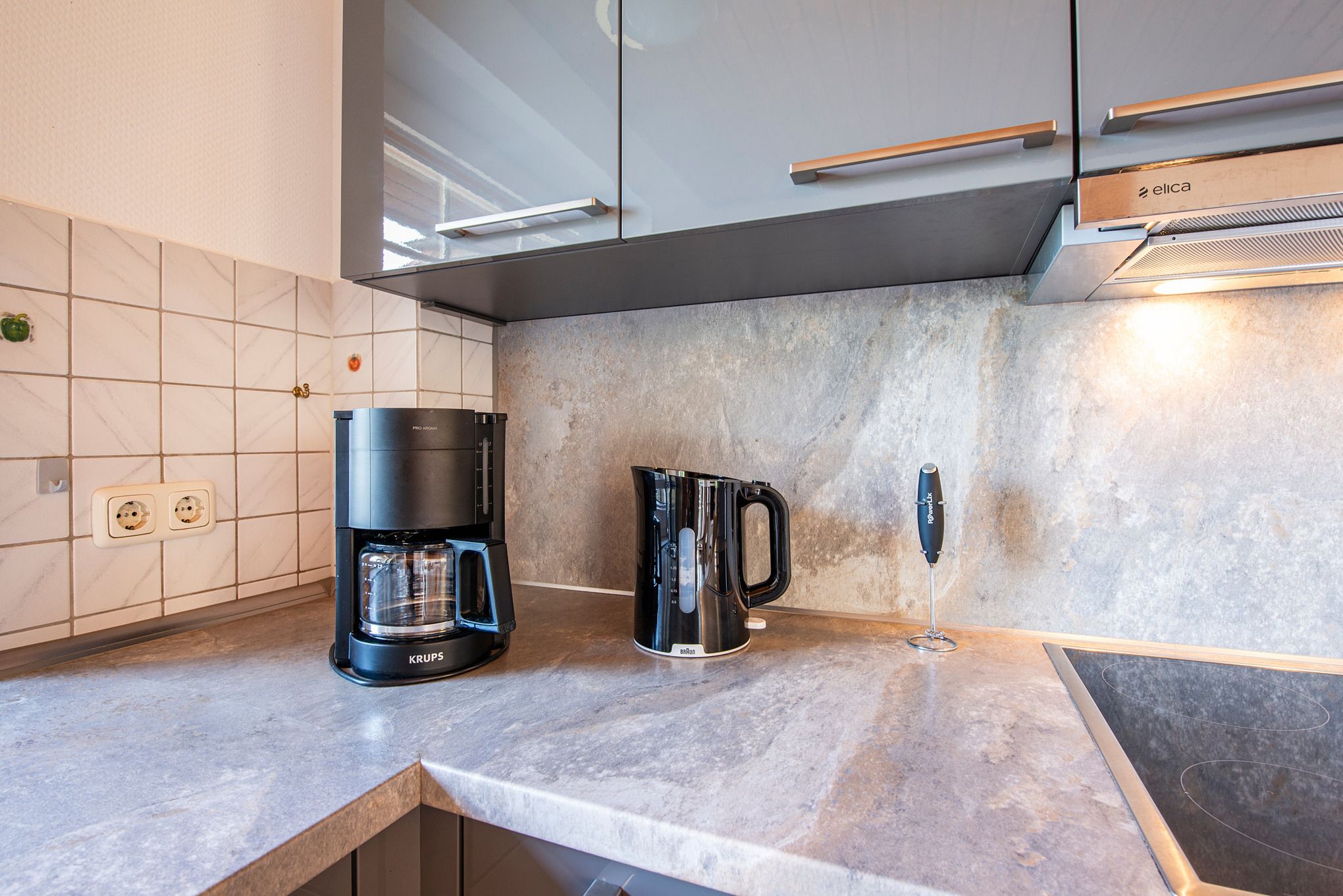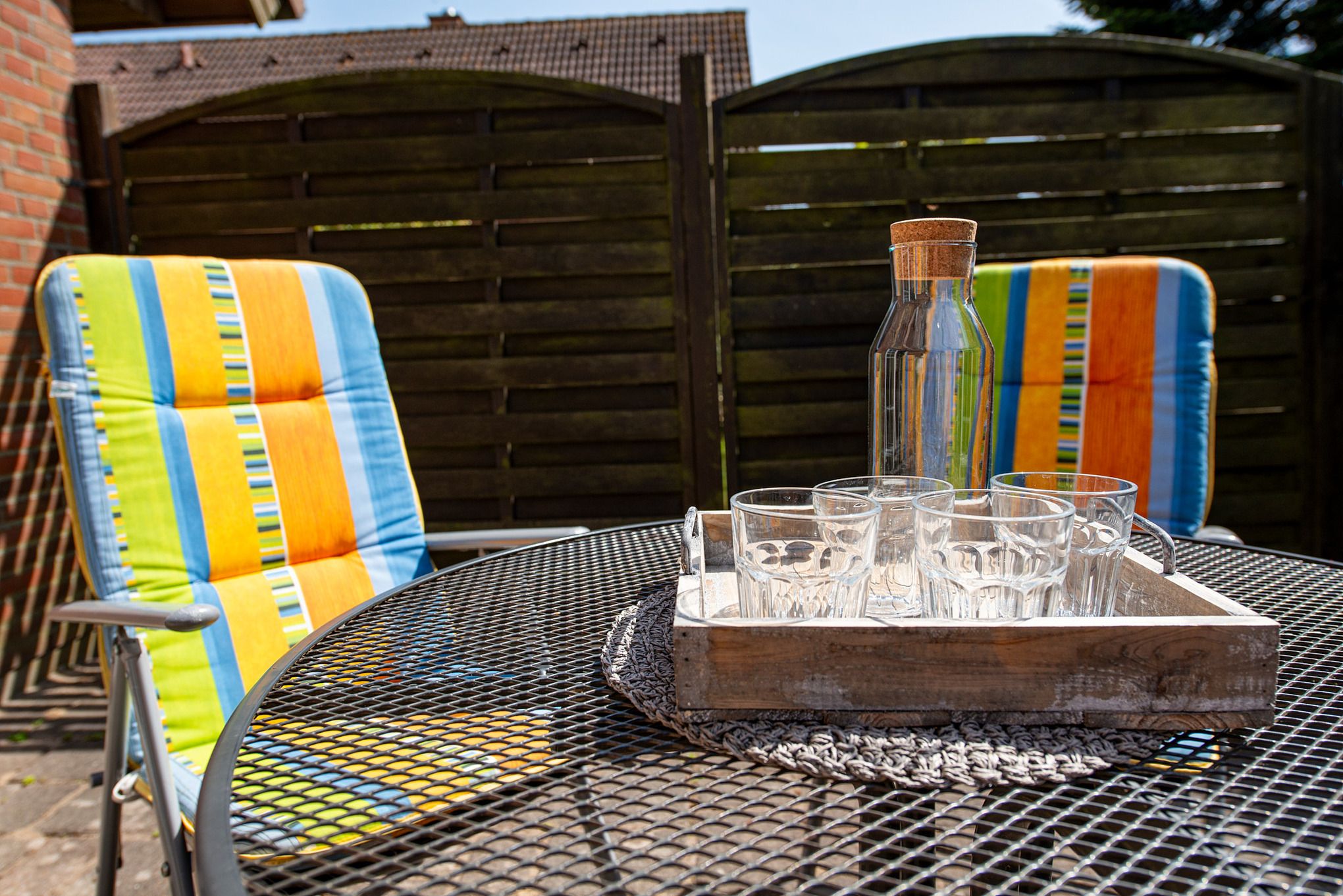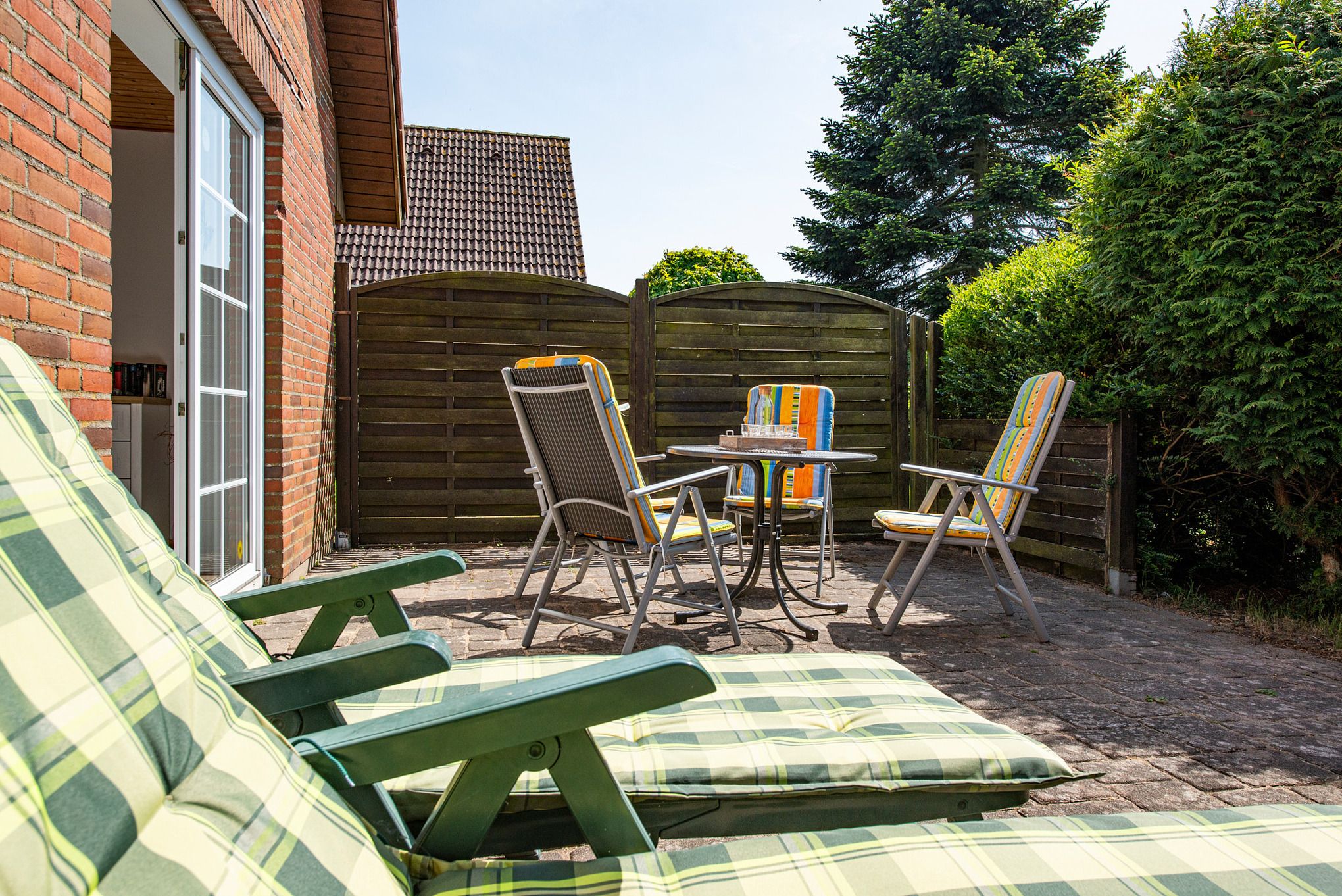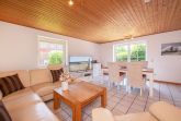 Die charmante Wohnung Elsa bietet im hellen Wohnraum eine gemütliche Sitzecke vor dem TV-Gerät sowie eine schöne Essecke direkt an der großen Fensterfront. Hier können Sie die großzügige möblierte Terrasse betreten und das Wetter genießen. Sonnenliegen sowie ein Grill stehen Ihnen zudem im eingezäunten Garten zur Verfügung. Die moderne, separate Küche ist u. a. mit einem Kühlschrank, einem Herd und einer Spülmaschine ausgestattet. Nächtigen können Sie in einem der beiden Schlafzimmer, in dem einen steht ein Doppelbett, in dem anderen befinden sich zwei Einzelbetten. Das tageslichthelle Duschbad bringt Sie erfrischt in den neuen Urlaubstag.
