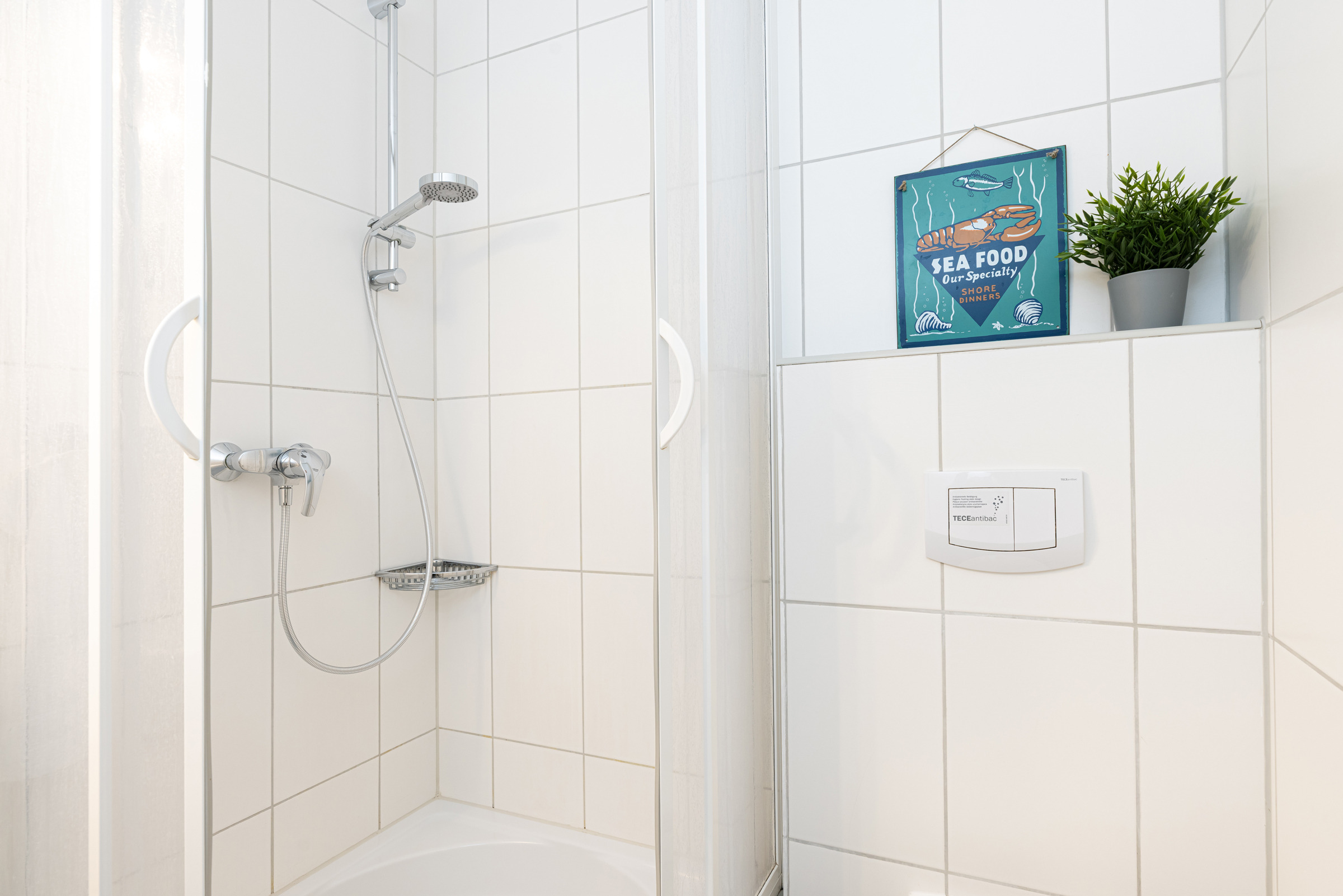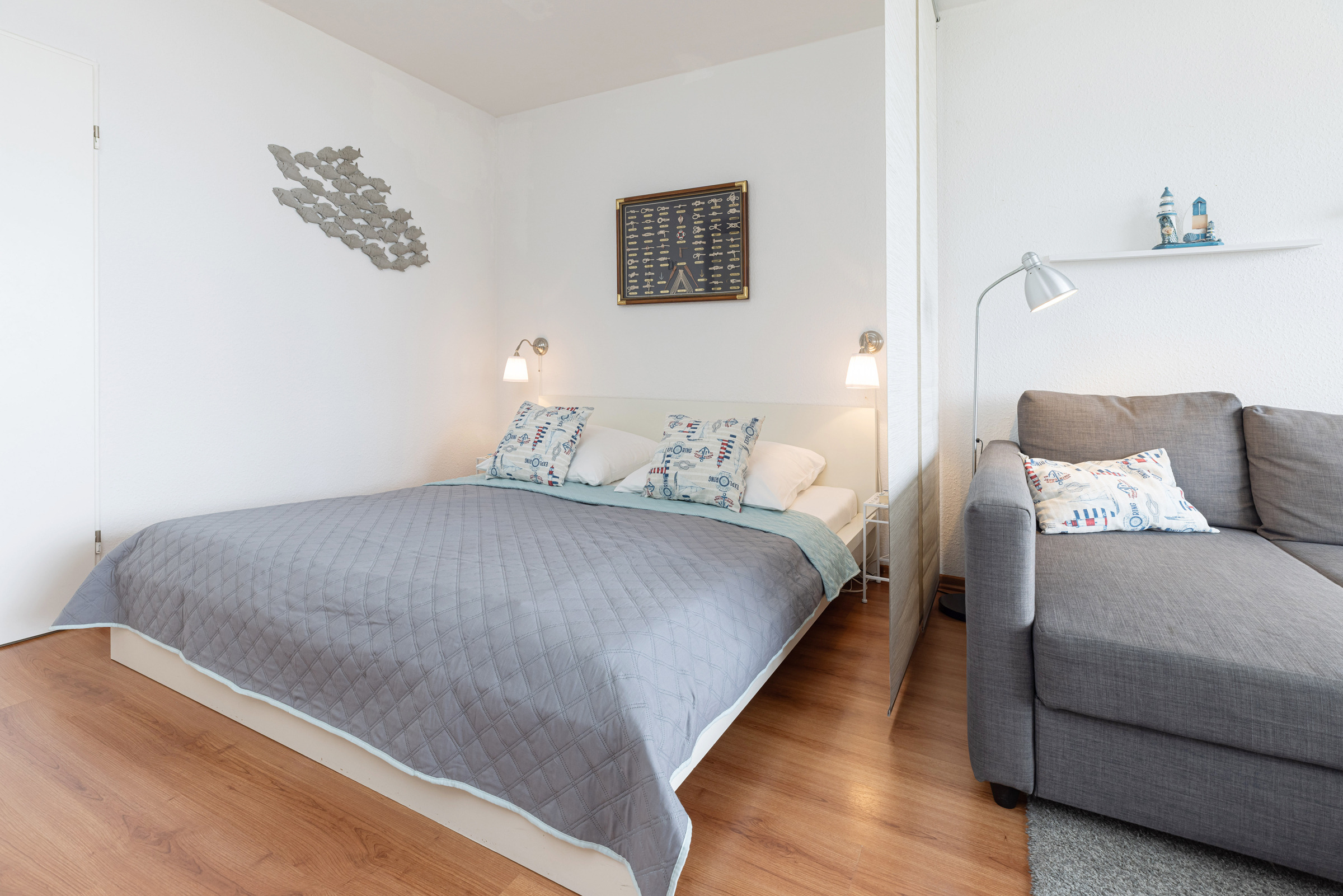 Die maritim eingerichtete Wohnung ist perfekt für einen erholsamen und unvergesslichen Urlaub auf Fehmarn. Die Wohnung ist modern und kinderfreundlich eingerichtet. Das gemütliche Wohnzimmer hat ein Ecksofa, einen Flachbildfernseher, ein CD-Radiogerät und eine integrierte Essecke sowie eine große Fensterfront mit Zugang zum Balkon. Von hier aus sind das Meer, die Hafeneinfahrt von Burgstaaken und die Fehmarnsundbrücke sehr gut zu erkennen. Der Balkon liegt zur Südseite, sodass Sie dort fast den ganzen Tag die Sonne genießen können. In der sehr gut ausgestatteten Küche finden Sie alles, um schmackhafte Speisen zuzubereiten sowie eine Mikrowelle, eine Kaffeemaschine, einen Wasserkocher und einen Toaster. Der Schlafbereich mit bequemen Doppelbett ist mit einer dezenten Trennwand vom Wohnzimmer abgeteilt. Im Kinderzimmer befinden sich zwei Einzelbetten, die auch für Erwachsene geeignet sind, sowie ein Tisch zum Spielen. Das Duschbad ist hellgefliest.