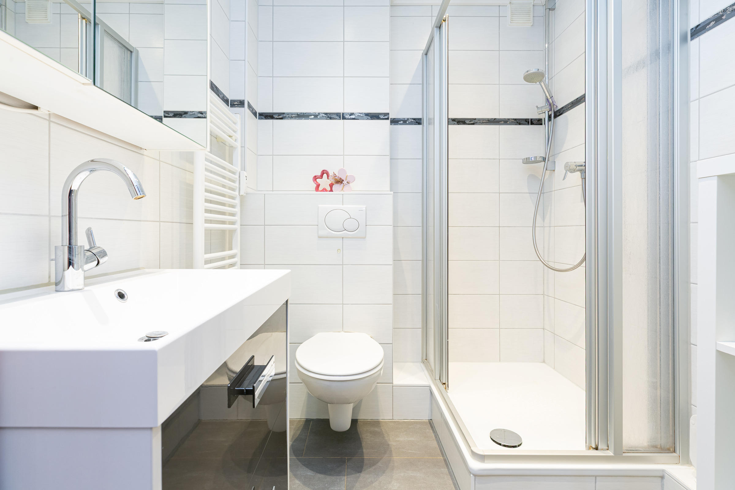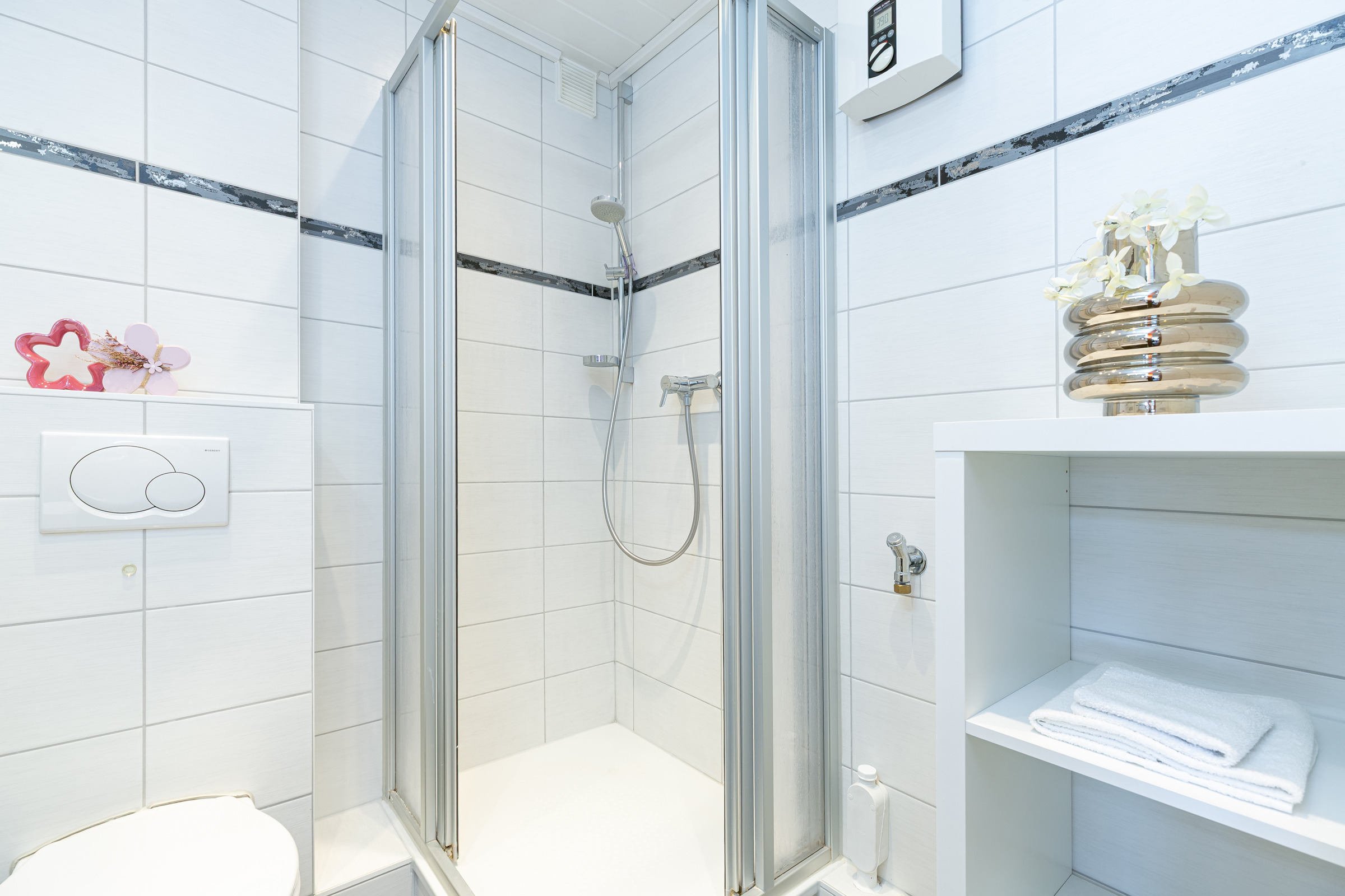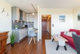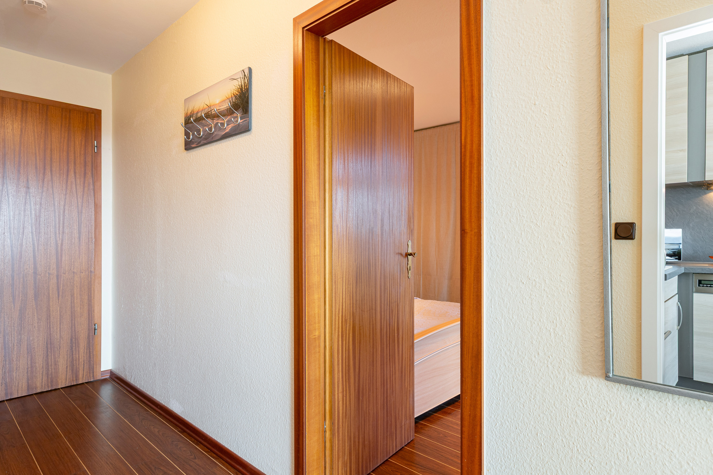 Die moderne, sehr gut ausgestattete Küche lädt zum gemeinsamen Kochen ein. Als Schlafmöglichkeit dienen ein Doppelbett im separaten Schlafzimmer sowie ein Schlafsofa im Wohnzimmer. Im hell gefliesten Badezimmer starten Sie erfrischt in den neuen Tag. Der Strand befindet sich nur zwei Gehminuten vom Haus entfernt und wird ohne das Überqueren einer Straße erreicht. So ist der Weg zum erfrischenden Bad in der Ostsee mit Kindern jeden Alters leicht zu bewerkstelligen. Der Strand wird nur von den Bewohnern der Ferienresidenz genutzt, sodass es ausreichend Platz für jeden Strandbesucher gibt.