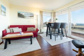 Die Ferienwohnung Meerblick mit Wohlfühlfaktor besticht nicht nur durch ihren einzigartigen Meerblick und der ruhigen Lage, sondern auch durch die liebevoll ausgesuchte Einrichtung. Es erwartet Sie ein unvergesslicher Aufenthalt, der Jung und Alt gleichermaßen begeistern wird. Entspannen Sie im Wohnbereich gemütlich vor dem TV-Gerät oder nehmen Sie Platz auf dem großen Balkon mit traumhaftem Meerblick. Lassen Sie sich von der Sonne verwöhnen während Sie den Wellen im Hintergrund lauschen und den Tag auf der Terrasse mit eigenem Strandkorb entspannt ausklingen.