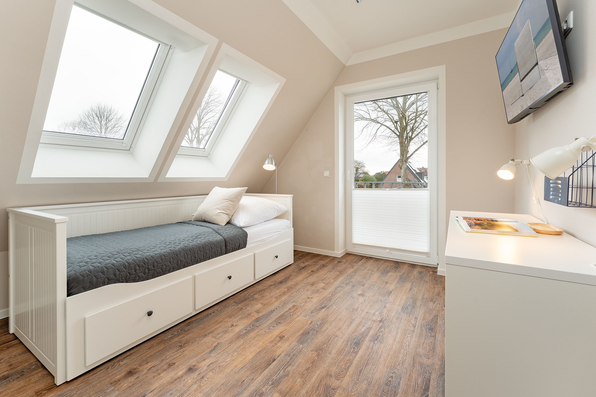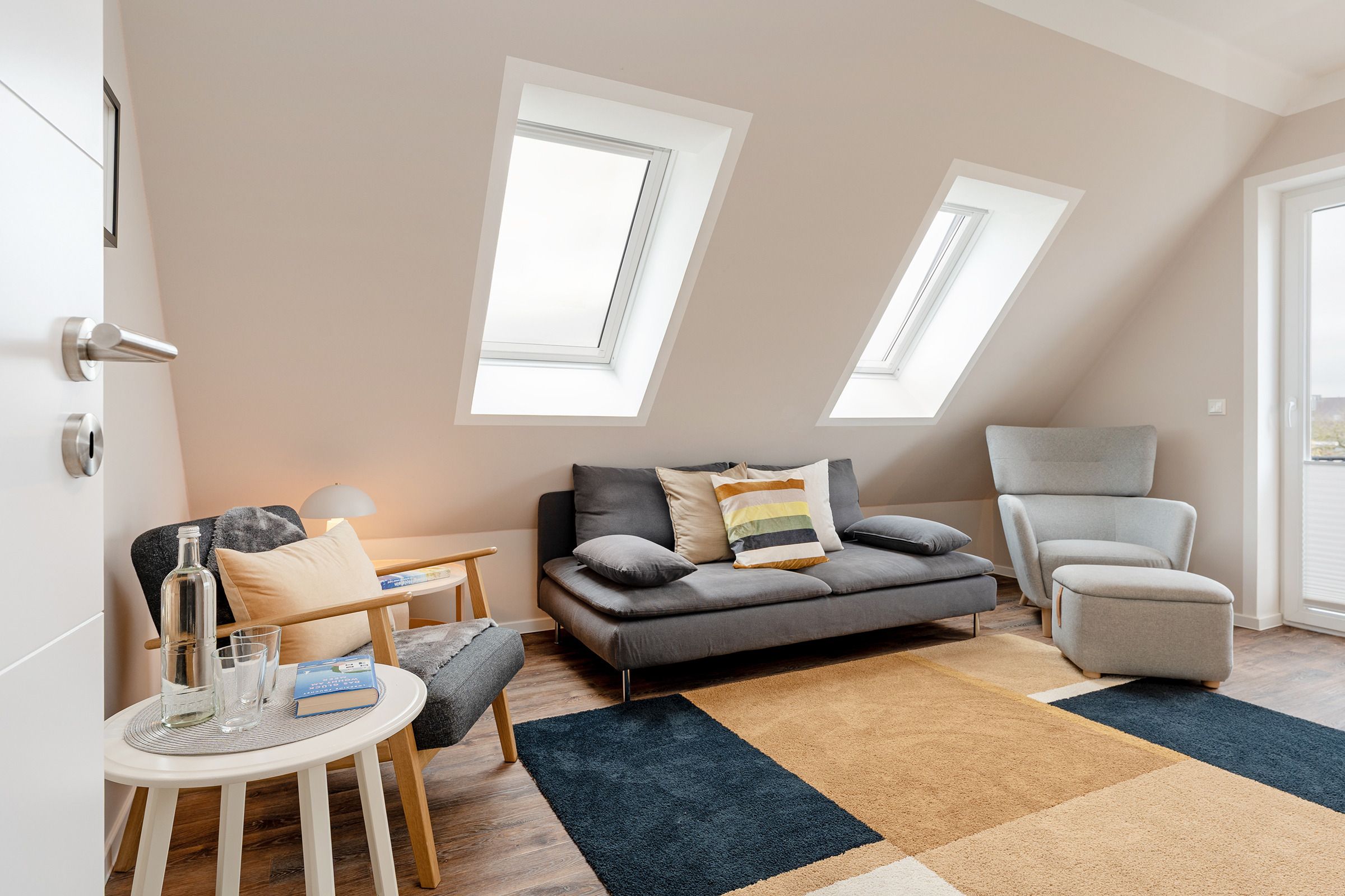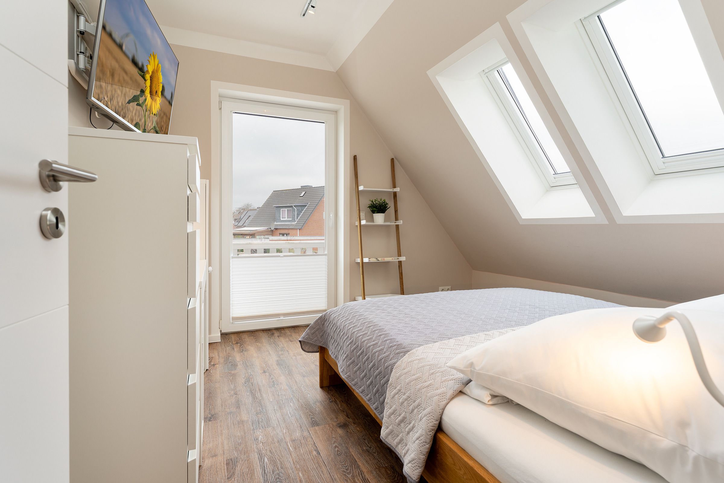 Modern eingerichtete 4-Zimmer-Ferienwohnung im 2. Stock mit Balkon in Burg auf der Sonneninsel Fehmarn bietet auf 78 m² genug Platz für bis zu 5 Gäste.
