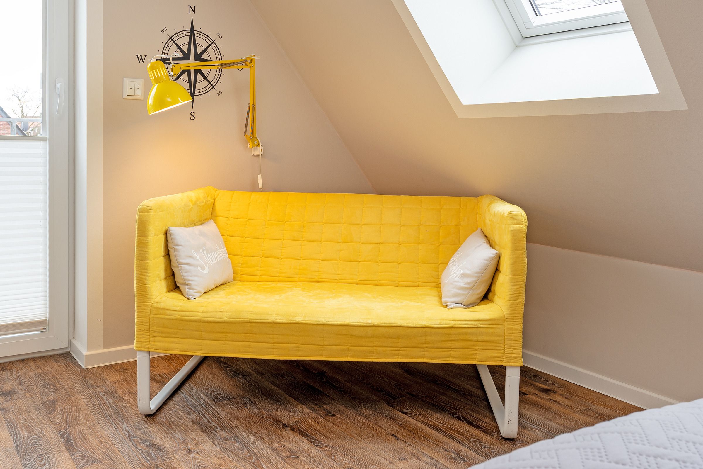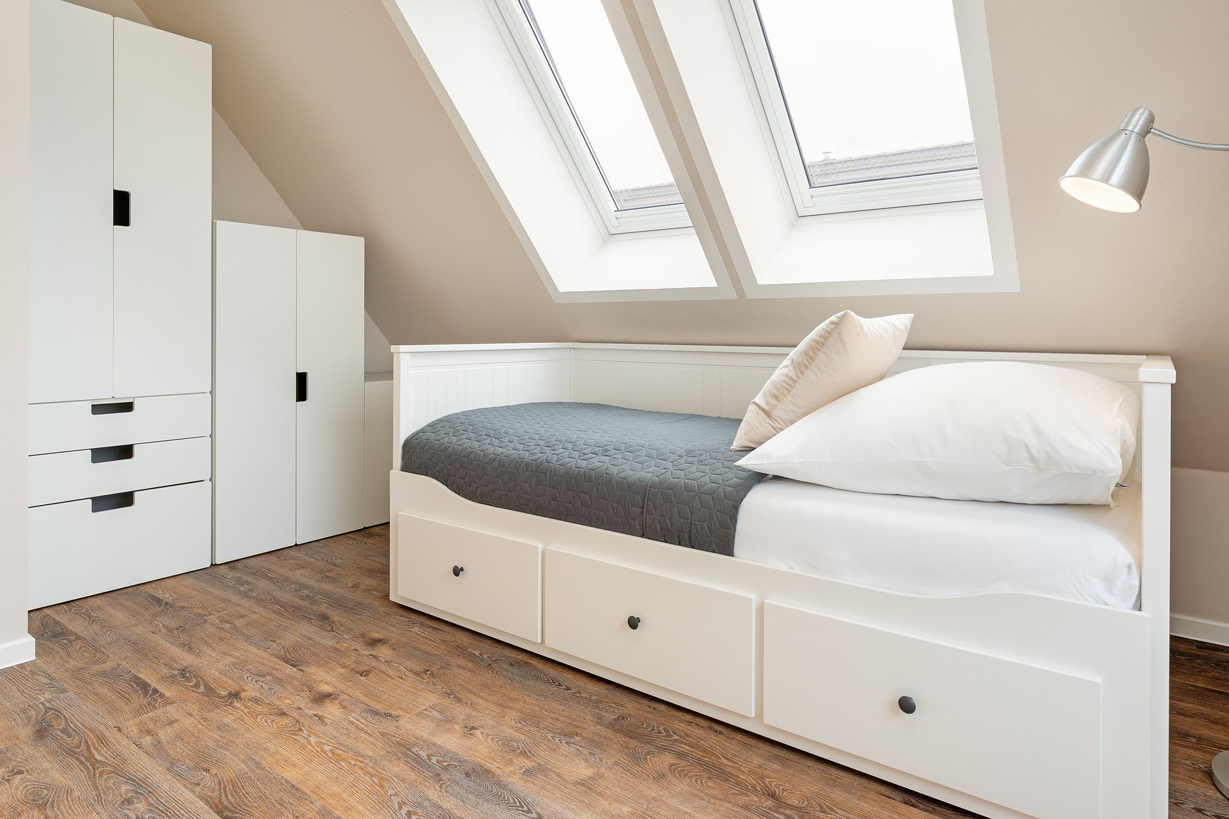 Diese stilvolle Ferienwohnung bildet den perfekten Rückzugsort für Ihren Urlaub. Die moderne Einrichtung gepaart mit dem Charme einer Dachgeschoss-Wohnung eignen sich ideal für Familienurlaube oder Remote Work. Das gemütliche Wohnzimmer lädt zum Verweilen ein, auch haben Sie hier Zutritt auf den möblierten Balkon, auf dem Sie die Sonne genießen können. Die moderne, sehr gut ausgestattete Küche bietet alles, was der Herz begehrt, sodass Sie sich wie zu Hause fühlen können. In den drei komfortablen Schlafzimmern, zwei mit einem Doppelbett und eins mit einem Einzelbett, finden Sie erholsamen Schlaf. Alle Schlafzimmer sind mit einem modernen Schreibtisch ausgestattet - somit eignet sich dieses Feriendomizil auch perfekt für das fokussierte Arbeiten oder die vielen bekannten Online-Meetings während einer Workation. Ein modernes Badezimmer mit begehbarer Regendusche darf natürlich auch nicht fehlen. Elektrische Außenrollläden sind an allen Fenstern, auch den Dachfenstern, vorhanden. Die Unterkunft liegt in einer ruhigen Wohngegend. Sowohl das Zentrum von Burg als auch der Hafen in Burgtiefe sind bequem zu Fuß erreichbar. Sie können also problemlos die Vorteile der Stadt und den Trubel des Hafens genießen.
