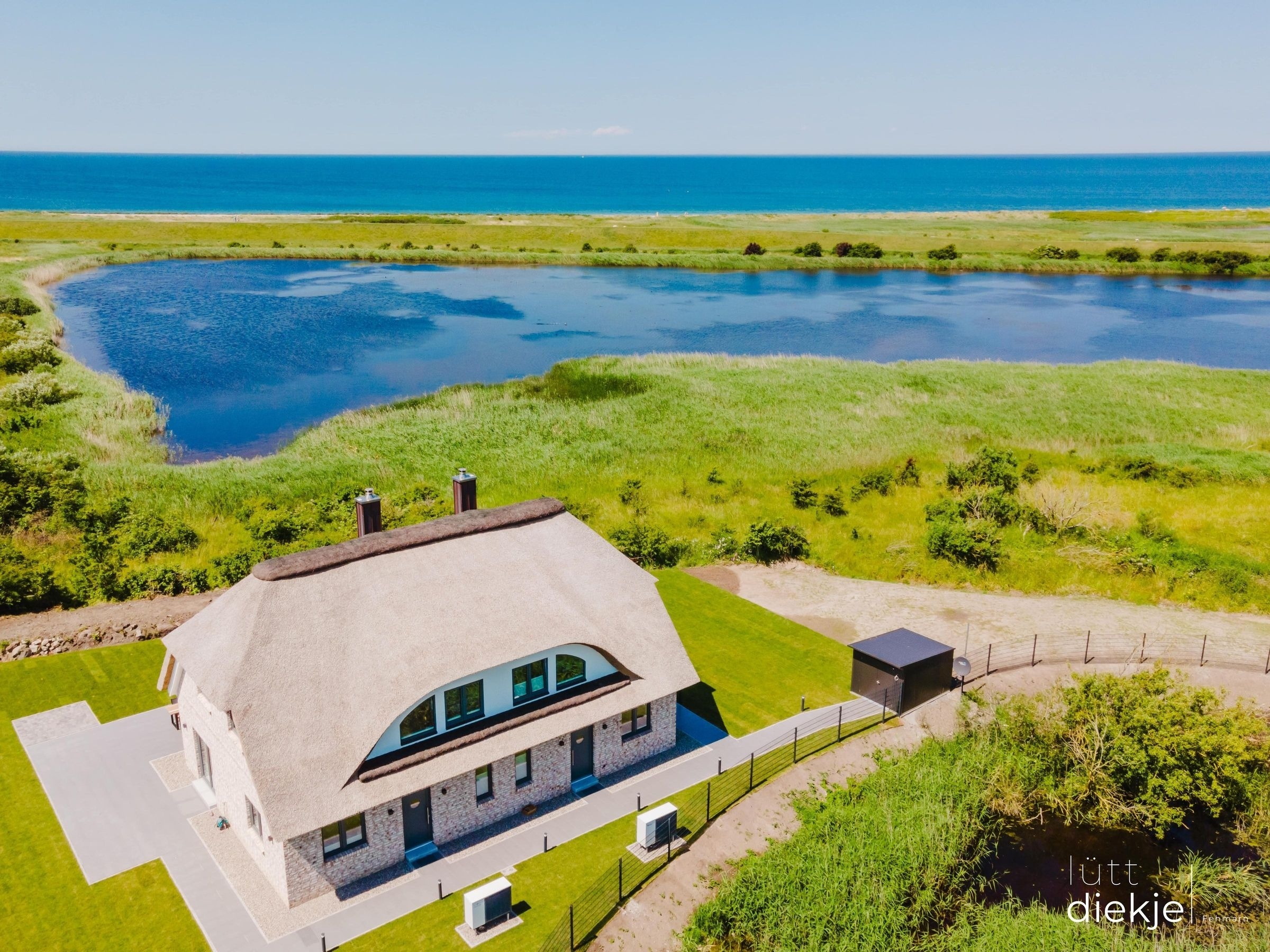 Ein Highlight ist der idyllische Teich direkt vor dem Haus, in dem glückliche Frösche beheimatet sind. Hier können Sie in den Morgenstunden eine Tasse Kaffee in der Sonne genießen. Die Terrasse und der Balkon, beide in Westausrichtung, bieten einen atemberaubenden Blick auf den See und das Meer. Mit einer Entfernung von nur knapp 150 Metern zum Strand ist die Lage einfach unschlagbar.