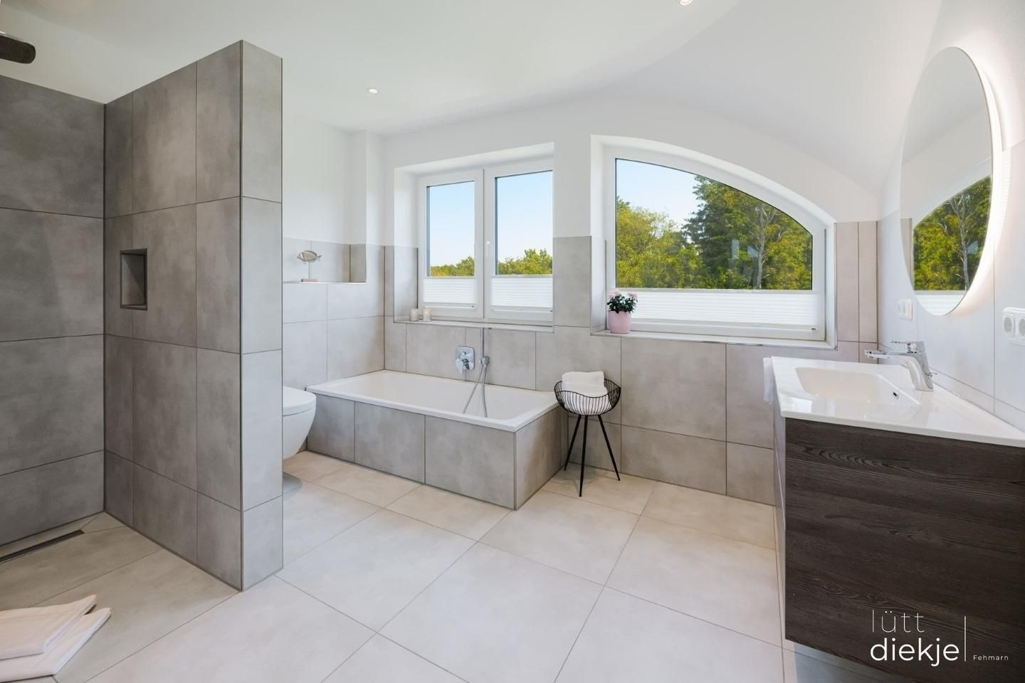 Hier trifft moderner Luxus auf idyllische Natur. Die stilvolle Ausstattung lässt keine Wünsche offen. Das großzügige Wohnzimmer mit Wohnküche und Kaminofen lädt zu gemütlichen Abenden ein. Die Küche ist ein wahres Paradies für Hobbyköche, ausgestattet mit einer modernen Kochinsel, die sich ideal für gesellige Kochabende eignet. Die beiden separaten Schlafzimmer bieten maximalen Komfort: eines mit Doppelbett und das andere mit zwei Einzelbetten, die sich auch zusammen schieben lassen. Zwei luxuriöse Badezimmer stehen Ihnen zur Verfügung: eines mit Dusche, das andere mit einer ebenerdigen Regendusche sowie einer Badewanne. Zu den weiteren Annehmlichkeiten zählen eine Sauna sowie eine Fußbodenheizung, die in der kühleren Jahreszeit für wohlige Wärme sorgt.