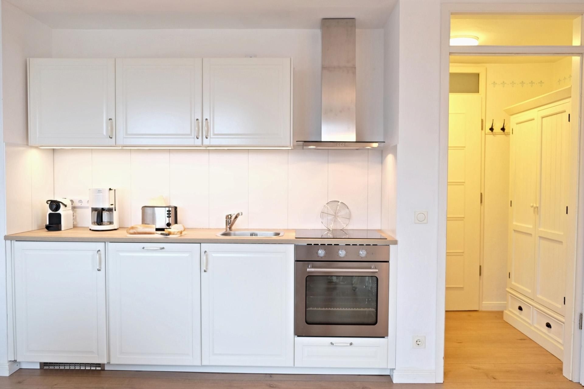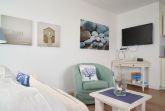 Nur rund 100 Meter vom Strand entfernt ... Die ideale Lage und die liebevoll ausgesuchte Möblierung machen diese Ferienwohnung zum perfekten Urlaubsdomizil an der Ostsee. Lassen Sie sich vom traumhaften Meerblick vom Balkon aus verzaubern - auch von Innen haben Sie die Ostsee im Blick. Das Appartement besteht aus einem kombiniertem Wohn-/Schlafbereich mit einer eingebauten Küchenzeile mit Ceranfeld und Geschirrspüler. Im separatem Schlafzimmer steht ein bequemes Doppelbett (2x 90x200 cm), in dem Sie herrlich träumen werden. Auch die Couch im Wohnzimmer bietet einen Schlafplatz (ca. 130x190 cm). In dem großen Badezimmer mit Duschwanne und Handtuchtrockner können Sie entspannt in den neuen Tag starten.