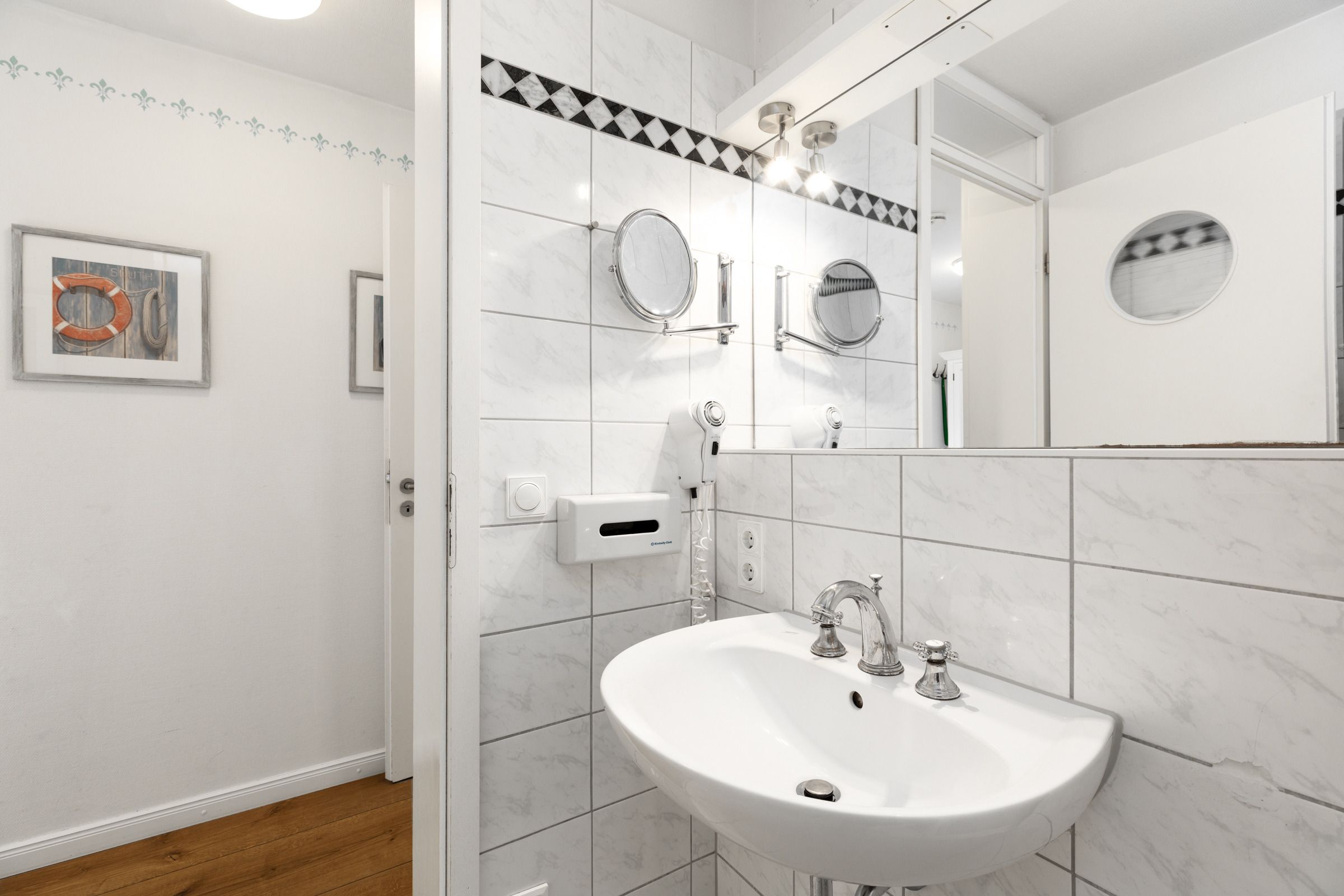 Die Schlüsselübergabe erfolgt über einen Tresor am Kraushaar Ferienwohnungen Servicebüro in der Strandstraße 10, 24235 Laboe.