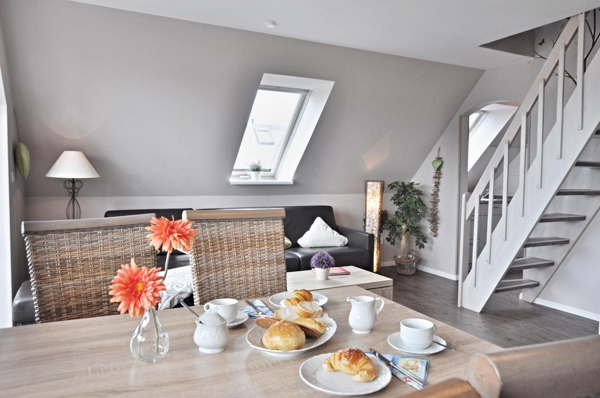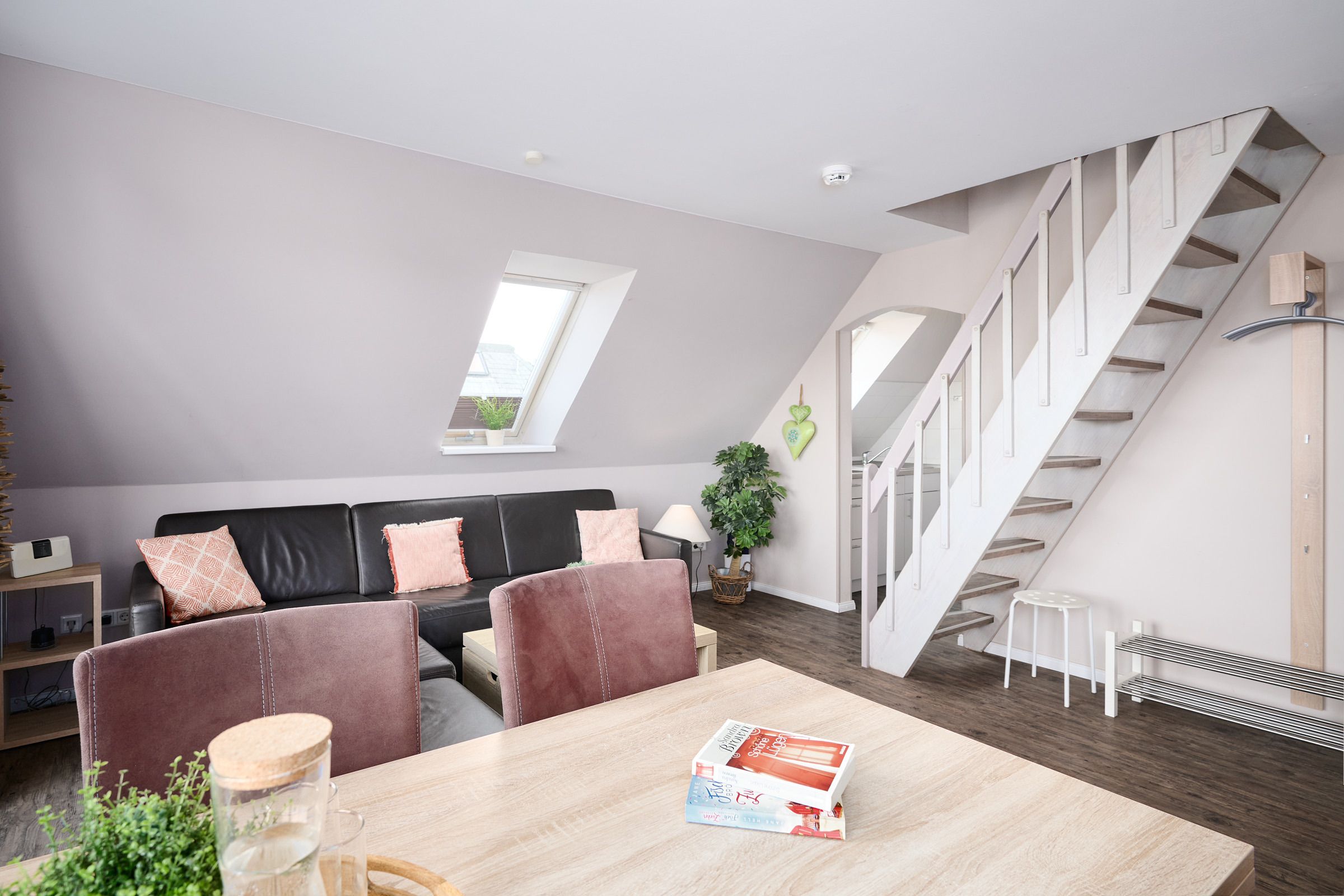 Im schönen Laboe: strandnahe 2-Zimmer-Ferienwohnung im 2. Stock mit 2 Balkonen und Meerblick bietet auf ca. 50 m² auf 2 Ebenen genug Platz für bis zu 4 Personen.