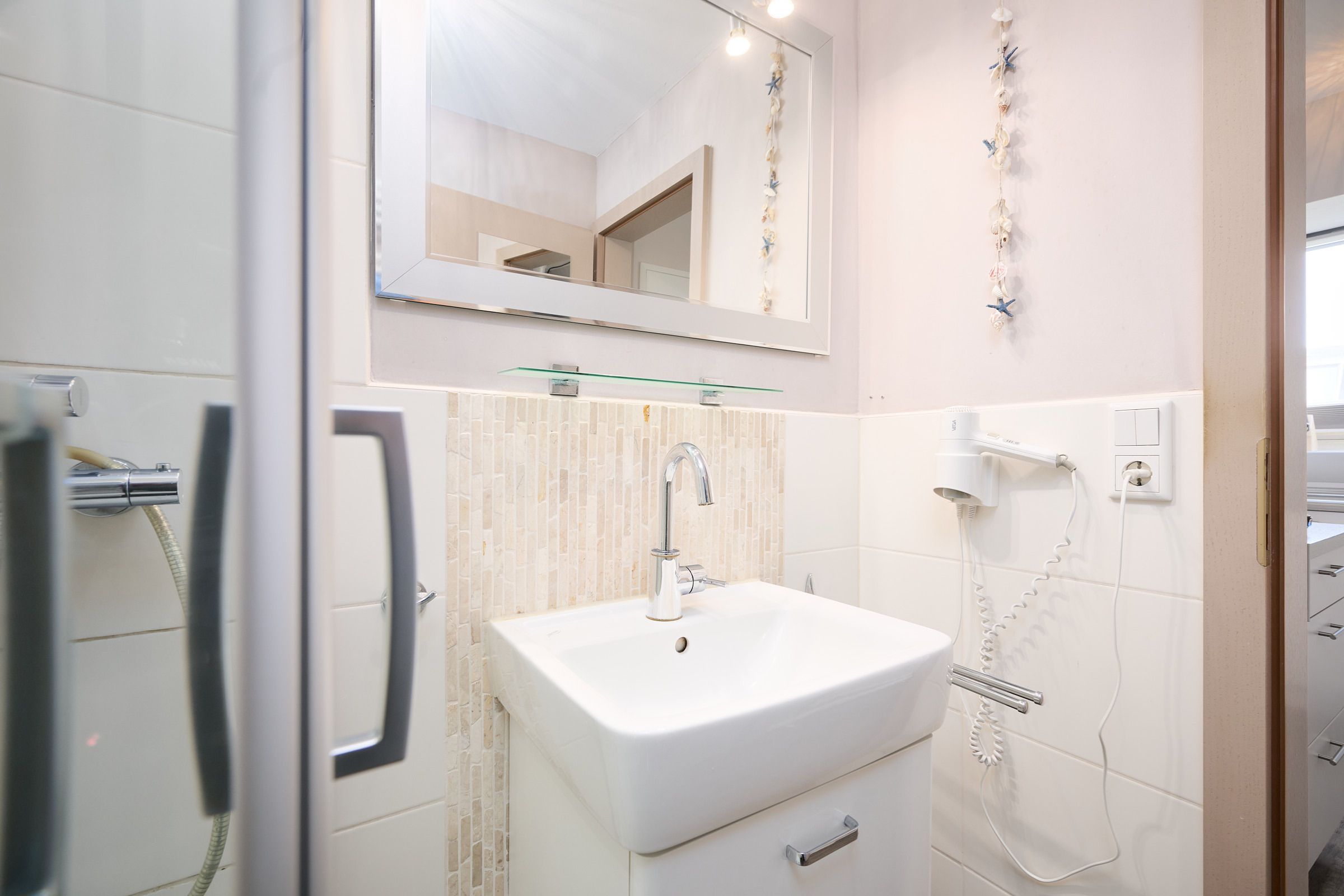 Der Ostseeblick ist kaum zu überbieten. Das Wohnzimmer und das Schlafzimmer sind zur Seeseite ausgerichtet. Der Wohnbereich ist mit einer modernen Schlafcouch ausgestattet. Mit nur einem Handgriff verwandeln Sie die Couch in ein bequemes Bett (170x200 cm). Die separate Küche bietet diverse Annehmlichkeiten, die das Urlauberherz beim Kochen begehrt. Zum Beispiel ein 4-Platten-Ceranfeld und eine moderne Mikrowelle mit Grill- und Backofenfunktion. Auf dieser Ebene der Wohnung befindet sich auch ein großzügiges Duschbad. Zur oberen Ebene der Wohnung führt eine relativ steile Treppe. Hier befindet sich ein Schlafzimmer mit einem modernen Doppelbett (2x 90x190 cm) und einem zweiten Flachbildfernseher. Ebenso ein zweites Duschbad. Auf beiden Ebenen gibt es jeweils einen Balkon, von denen Sie einen wunderschönen Blick auf die Kieler Förde genießen. Wer Wert auf gute Unterhaltung legt, darf sich über die moderne Multi-Media-Ausstattung mit 2 Flachbildschirmen mit Netflix-Zugang, Blu-Ray-DVD-Player und iPhone/iPad-Docking-Station sowie Alexa freuen. Ein kostenloser WLAN-Anschluss (17.000 Mbit/s) gehört ebenso dazu.