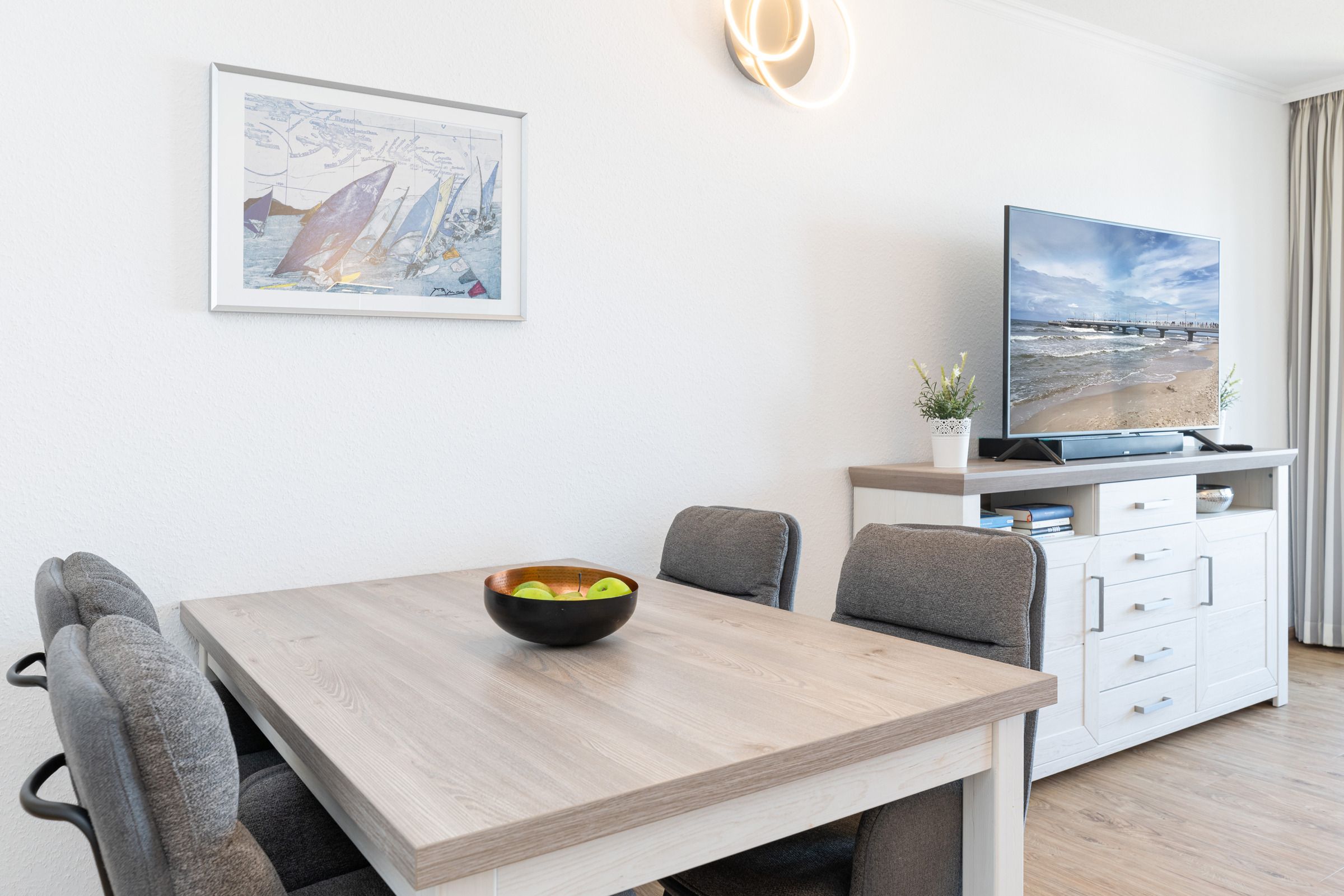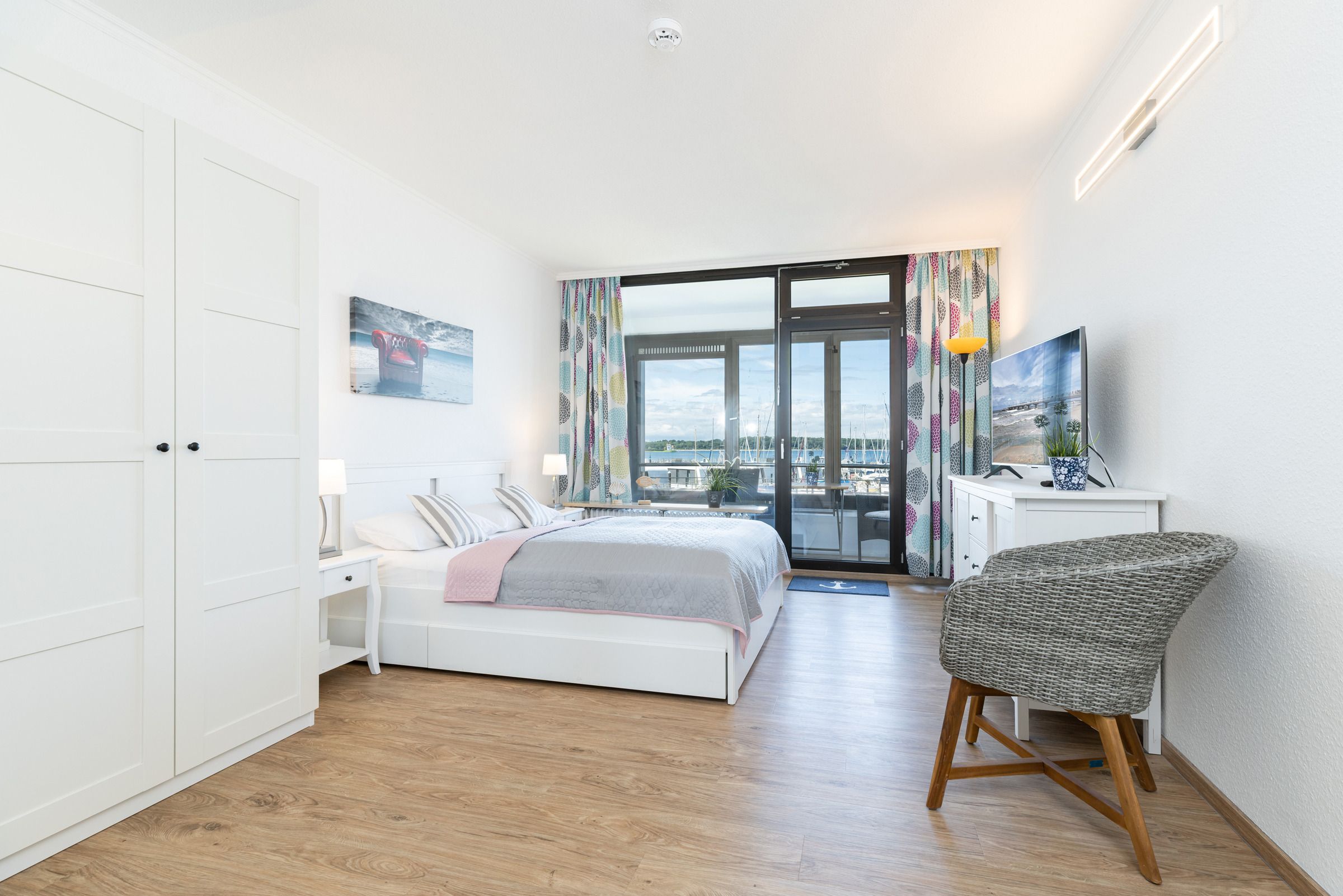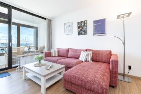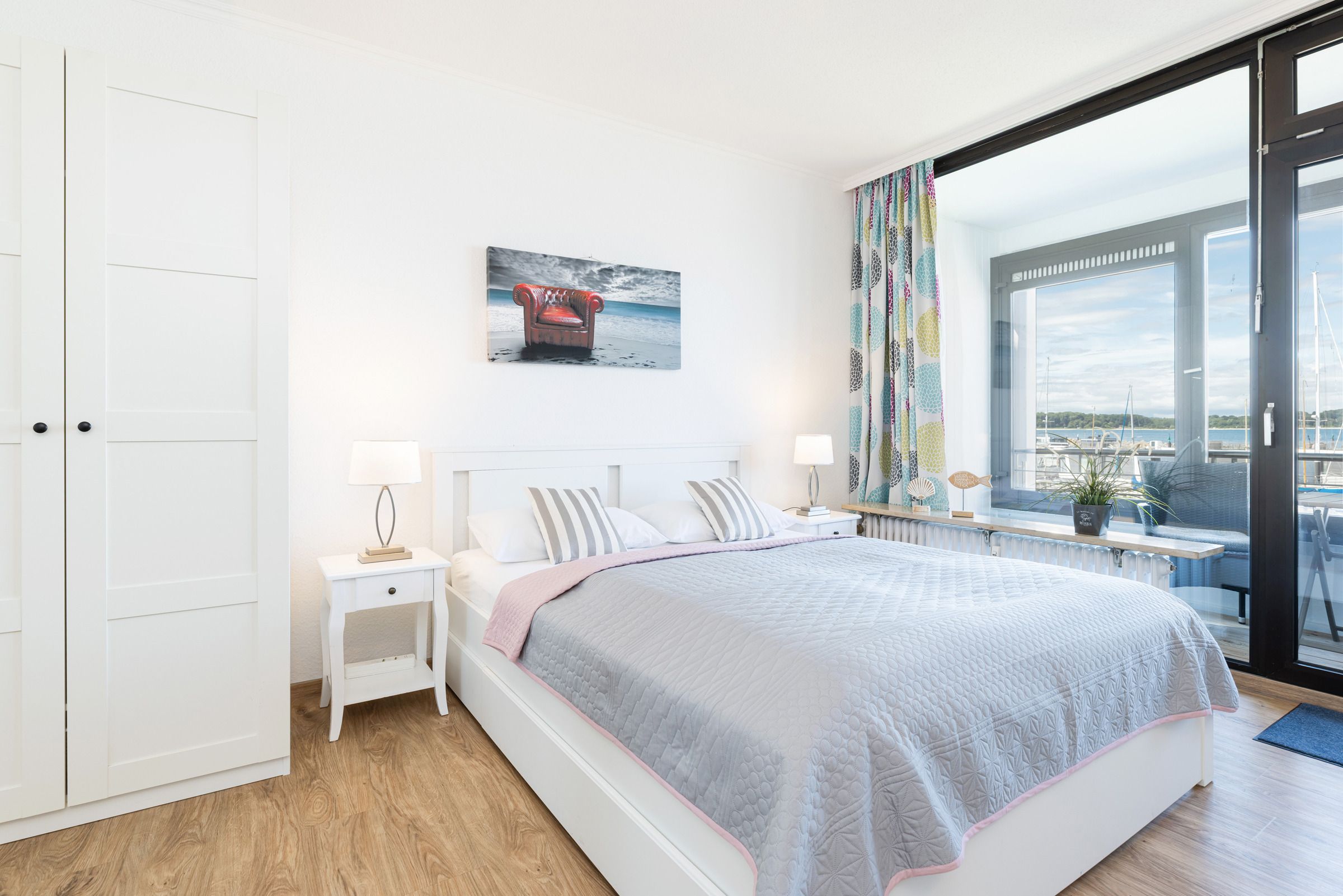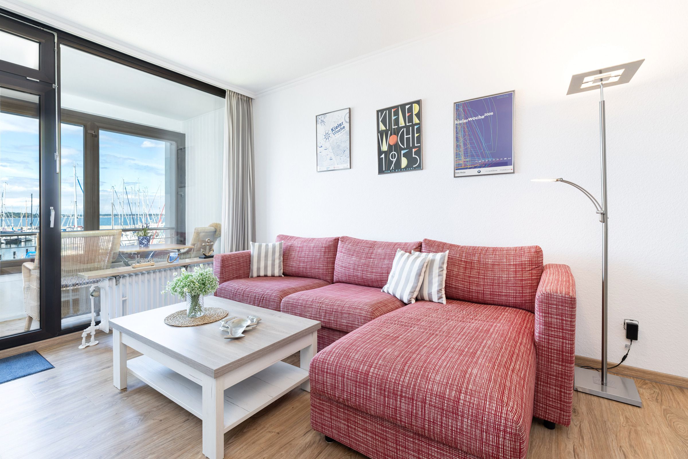 Herzlich willkommen im Urlaub! Nehmen Sie Platz auf dem Sofa im geschmackvoll eingerichteten Wohnzimmer. Hier können Sie abschalten und die Seele baumeln lassen, während Sie den wunderschönen Blick auf den Hafen und die Kieler Förde genießen. Freuen Sie sich zudem über eine Canton-Soundbar, die beim Fernsehen für Heimkino Stimmung sorgt. Der Balkon ist verglast, sodass Sie auch in den Wintermonaten die vielen Schiffe beobachten können. Im Sommer können Sie die Fenster weit öffnen und die frische Seeluft reinlassen. Die offene, moderne Küche bietet sämtliche Annehmlichkeiten für eine Selbstverpflegung. Eine Schlafcouch im Wohnzimmer (140 cm breit) und ein Doppelbett (160 cm breit) im separaten Schlafzimmer sind als Schlafmöglichkeiten vorhanden. Auch das Schlafzimmer verfügt über einen möblierten Balkon sowie ein zusätzliches TV-Gerät. Das moderne Duschbad ist hell gefliest und bringt Sie entspannt in den neuen Tag. WLAN ist inklusive.