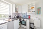 Mittelpunkt der liebevoll eingerichteten Wohnung ist das Wohnzimmer mit seiner schönen Fensterfront in Richtung Kieler Förde. Das Sofa sowie die nette Essecke laden zum Verweilen ein. Die separate Küche ist gut ausgestattet und macht eine Selbstverpflegung angenehm. Das Schlafzimmer verfügt über ein Boxspringbett (180x200 cm) und einen Kleiderschrank. Auch das Bad ist modern eingerichtet und punktet mit einer ebenerdigen Dusche. Eine gemütlich möblierte Terrasse befindet sich direkt vor dem Haus, hier können Sie das schöne Wetter und die gute Seeluft genießen.