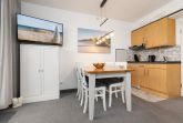 Die Wohnung hat ein offenen Wohn- und Essbereich mit einer kleinen Küchenzeile, ein Schlafzimmer mit einem Doppelbett (160x200 cm), sowie ein Duschbad. In der Küchenzeile können Sie kleinere Gerichte auf dem 2er Cerankochfeld oder im Airfryer zubereiten.
