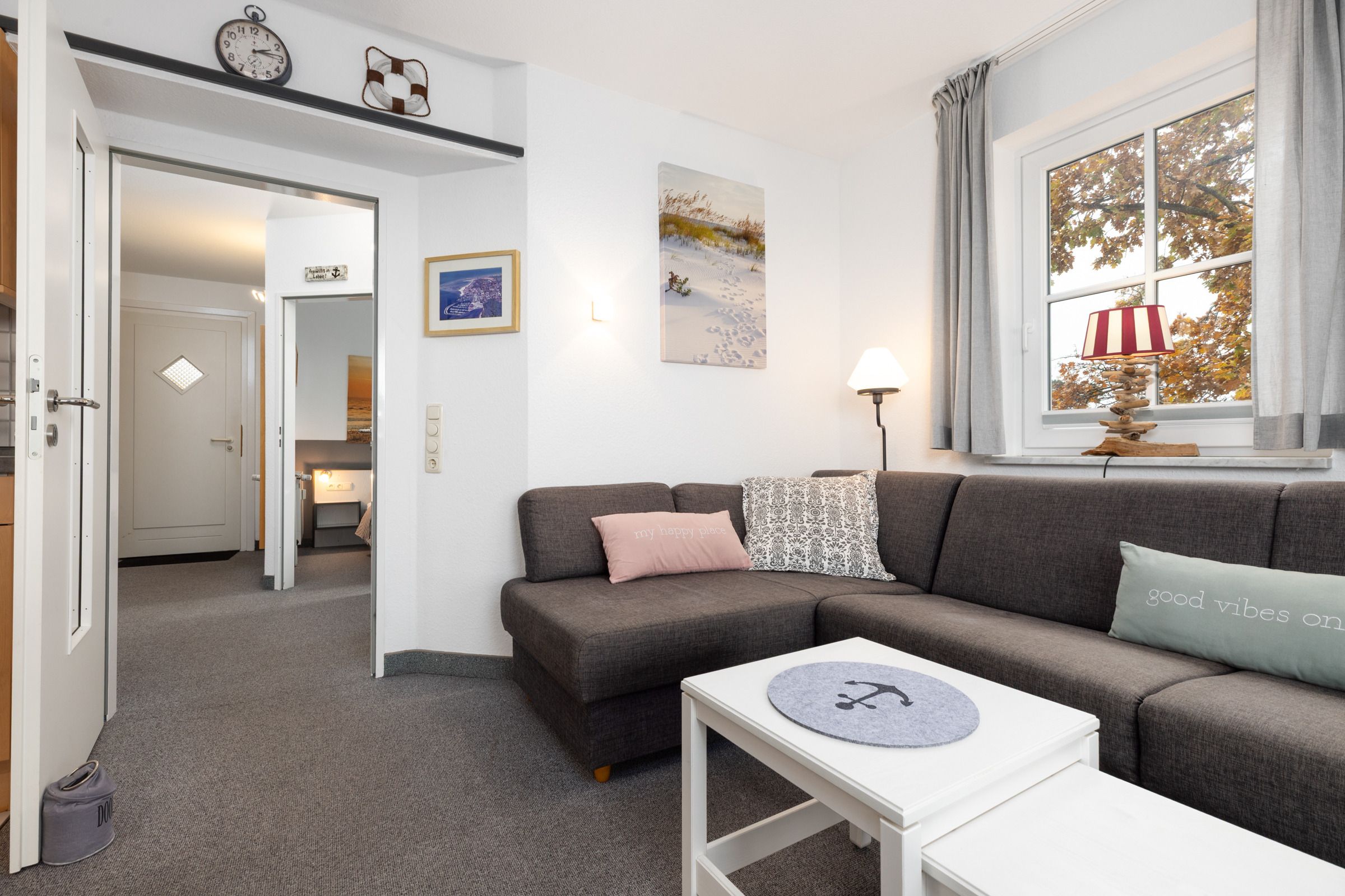 In der geschmackvoll eingerichteten 2-Zimmer-Ferienwohnung können sich auf ca. 43 m² bis zu 4 Personen vom Alltag erholen. Das Appartement liegt im 1. Stock der Appartementhausanlage.