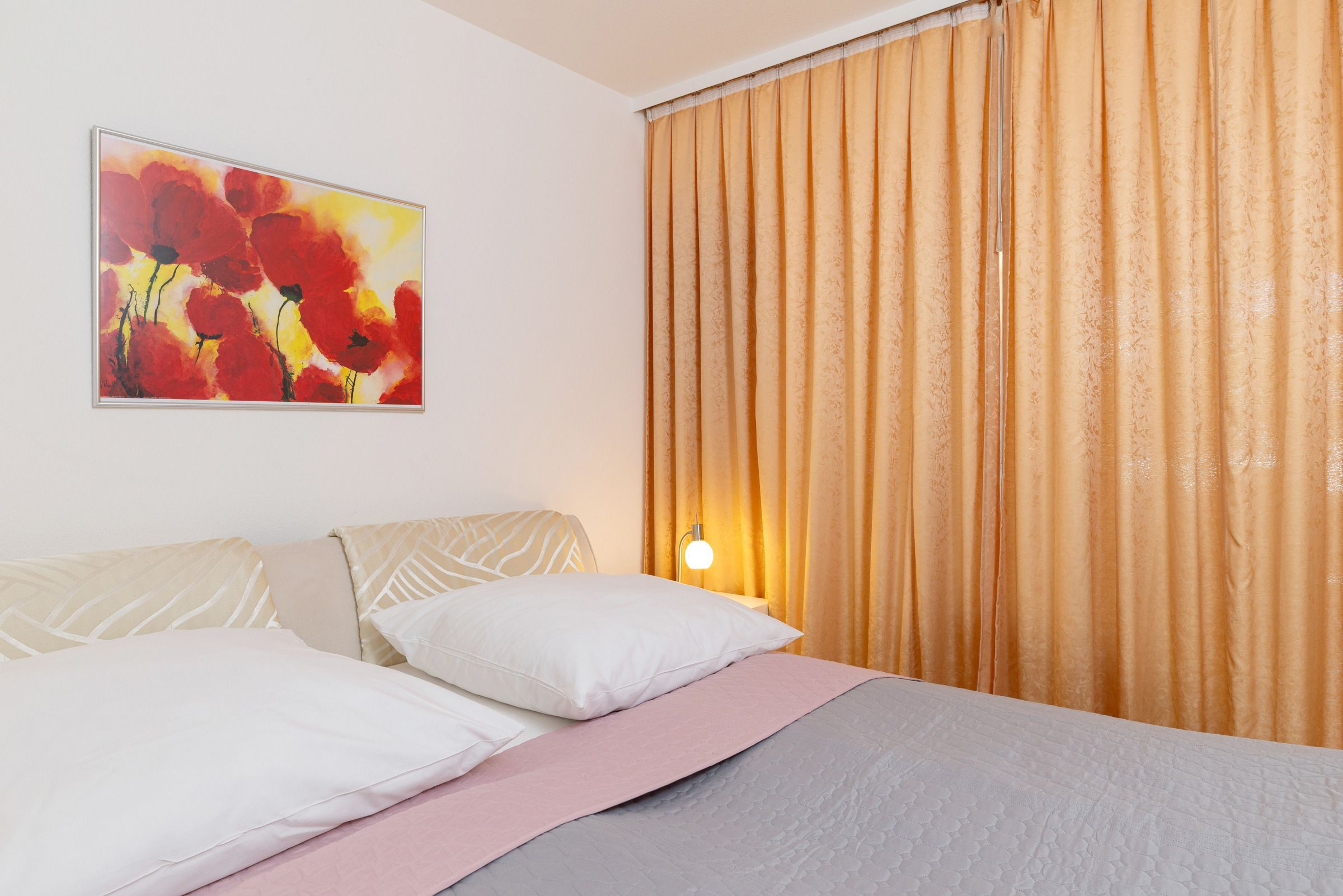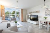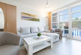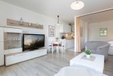 Die Wohnung ist hell und freundlich eingerichtet. Das Appartement verfügt über eine kleine Küchenzeile mit Induktionsherd, einem Essplatz sowie einer Schlafcouch und Doppelbett (180x200cm). Vom Balkon genießen Sie an lauen Sommerabenden und einem Gläschen Wein die etwas eingeschränkte Seesicht.
