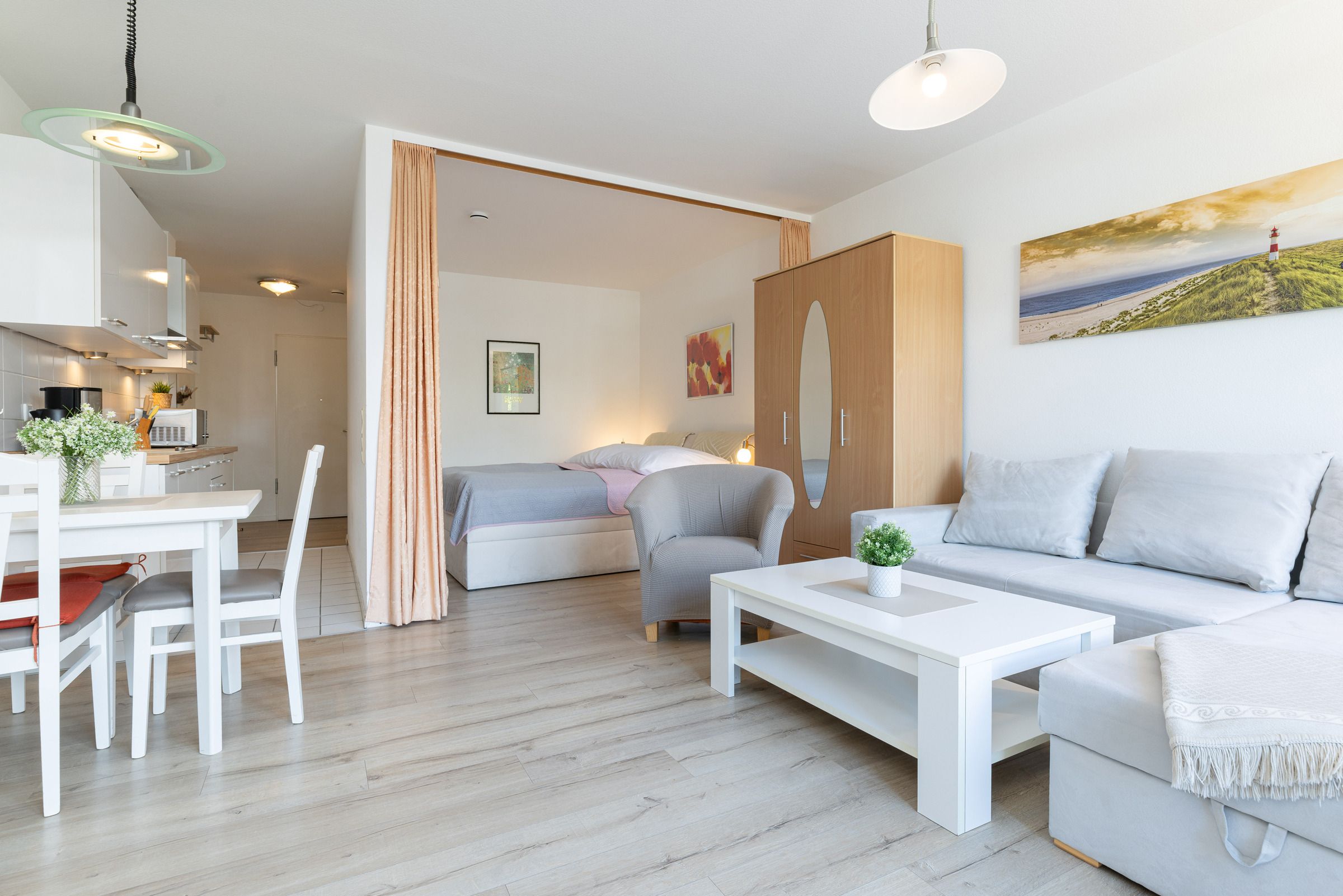 Herzlich Willkommen in der ca. 40 m² großen 1-Zimmer-Ferienwohnung im 1. Stock der Appartementanlage Hafenresidenz, nur wenige Schritte vom Hafen und Strand entfernt. Bis zu 3 Personen können hier in Ruhe einen wundervollen Ostseeurlaub genießen.