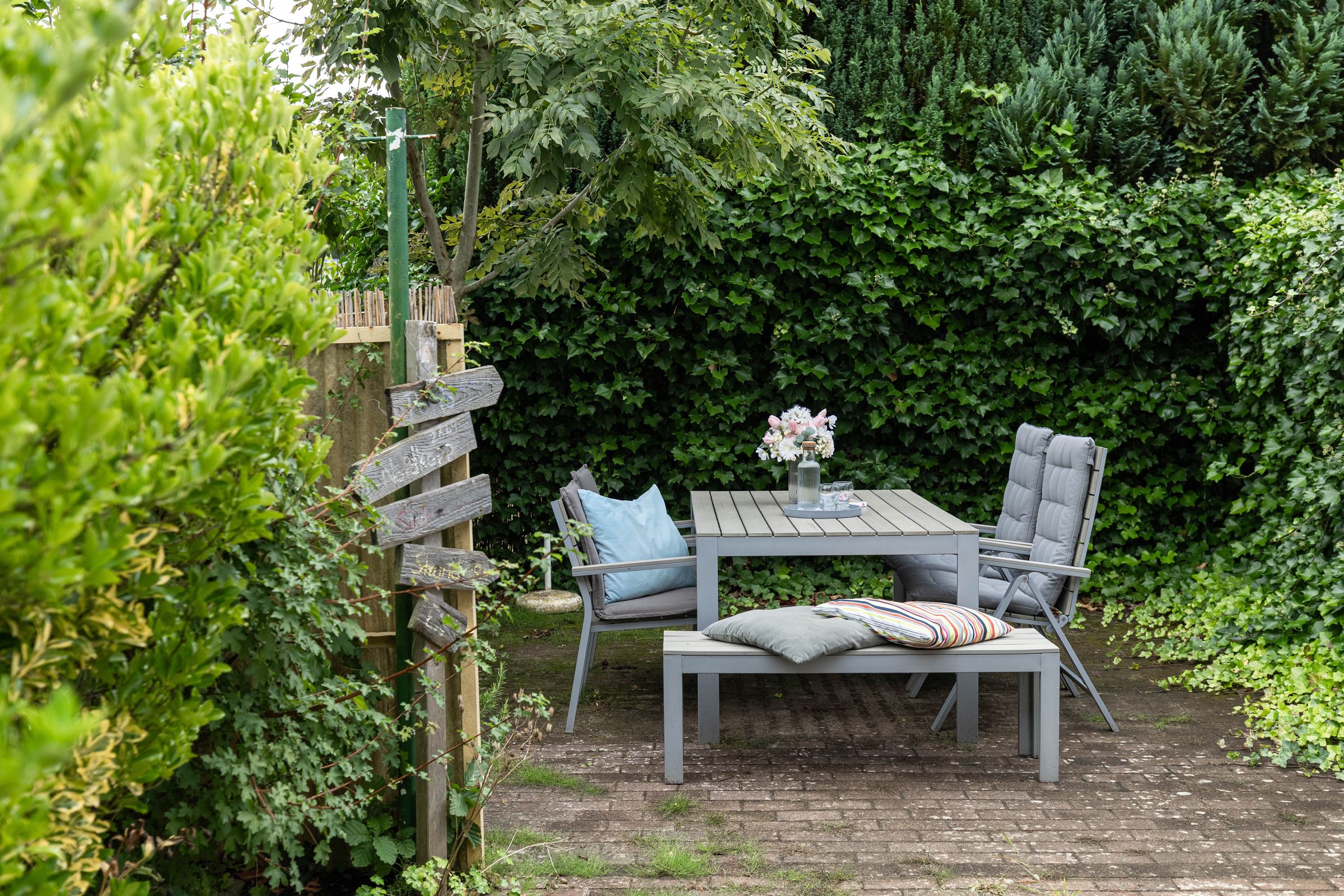 Im Erdgeschoss ist die geräumige, voll ausgestattete Wohnküche mit großen Esstisch, weiteren Sitzgelegenheiten und direktem Zugang zur sichtgeschützten Terrasse und dem großen Garten. Im angrenzenden Wohnzimmer mit Schlafcouch haben Sie ausreichend Platz für kuschelige Stunden vor dem Fernseher. Auch vom Wohnzimmer gelangen Sie auf die Terrasse und in den Garten. Für gemeinsame Grillabende steht Ihnen ein Holzkohlegrill zur Verfügung. Im gesamten Erdgeschoß genießen Sie die Wärme durch eine Fußbodenheizung.
