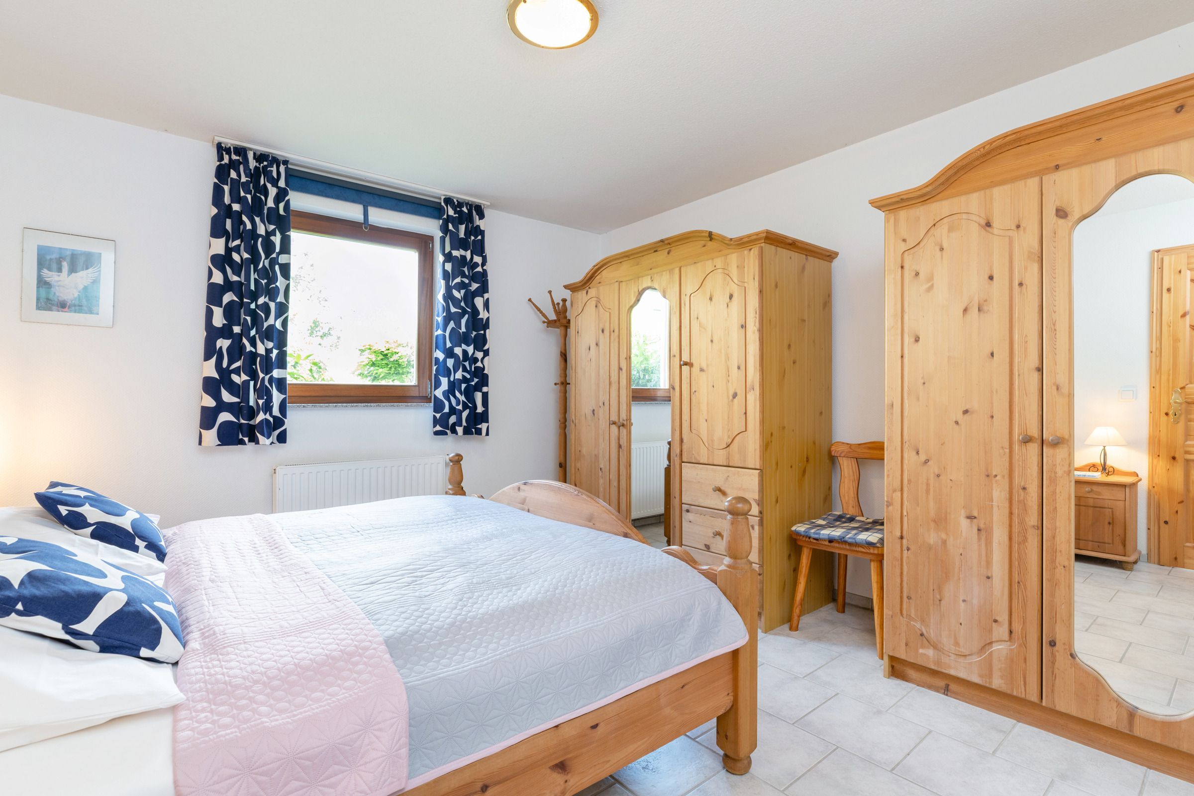 Schlafzimmer: Doppelbett, Kleiderschrank, Verdunkelung: Vorhänge und Rollo, Platz für Babybett vorhanden