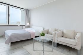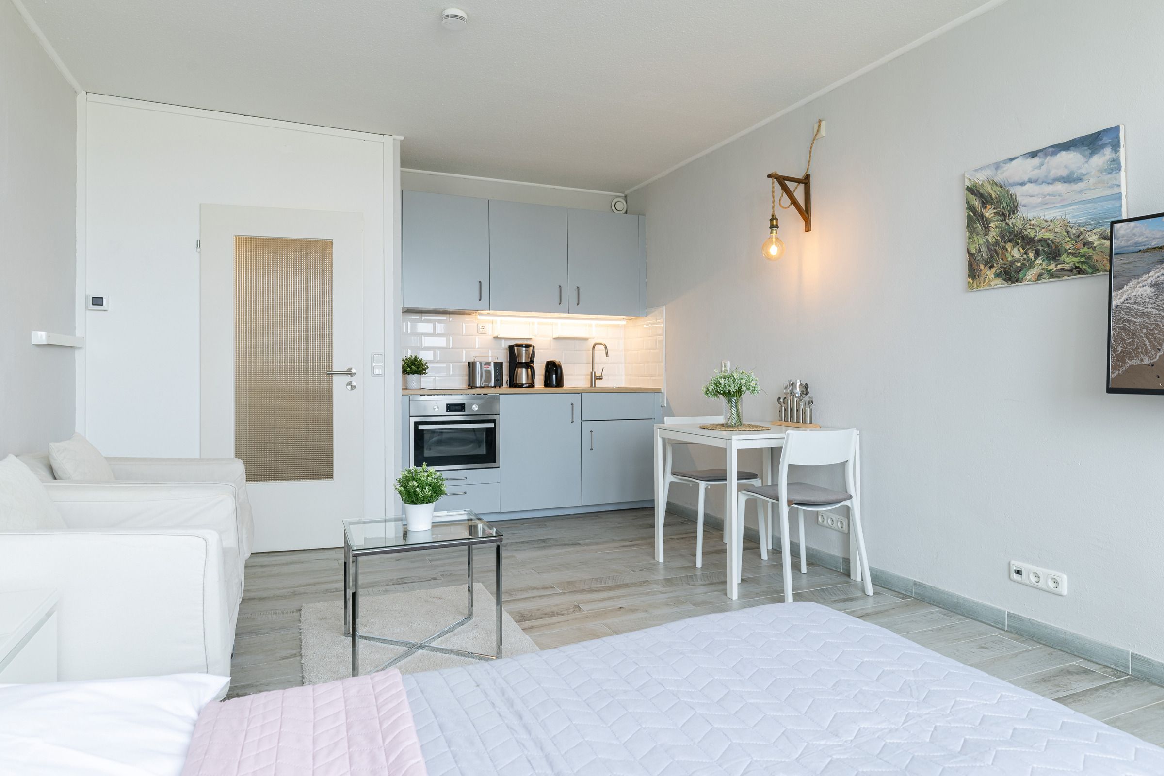 Lassen Sie sich überraschen und finden Sie heraus, was auf 26 m² alles möglich ist. Es erwartet Sie ein modernes Badezimmer und eine kleine Küchenzeile mit einer Backofen-Mikrowellen Kombination. Unter dem Design-Fußboden überrascht eine Fußbodenheizung und sorgt für ein angenehmes Raumklima. Das Doppelbett (140cm x 200cm) ist groß genug für 2 Personen und sowohl von hier, als auch von den beiden bequemen Sesseln kann man auf den großen Flachbild-TV blicken.
