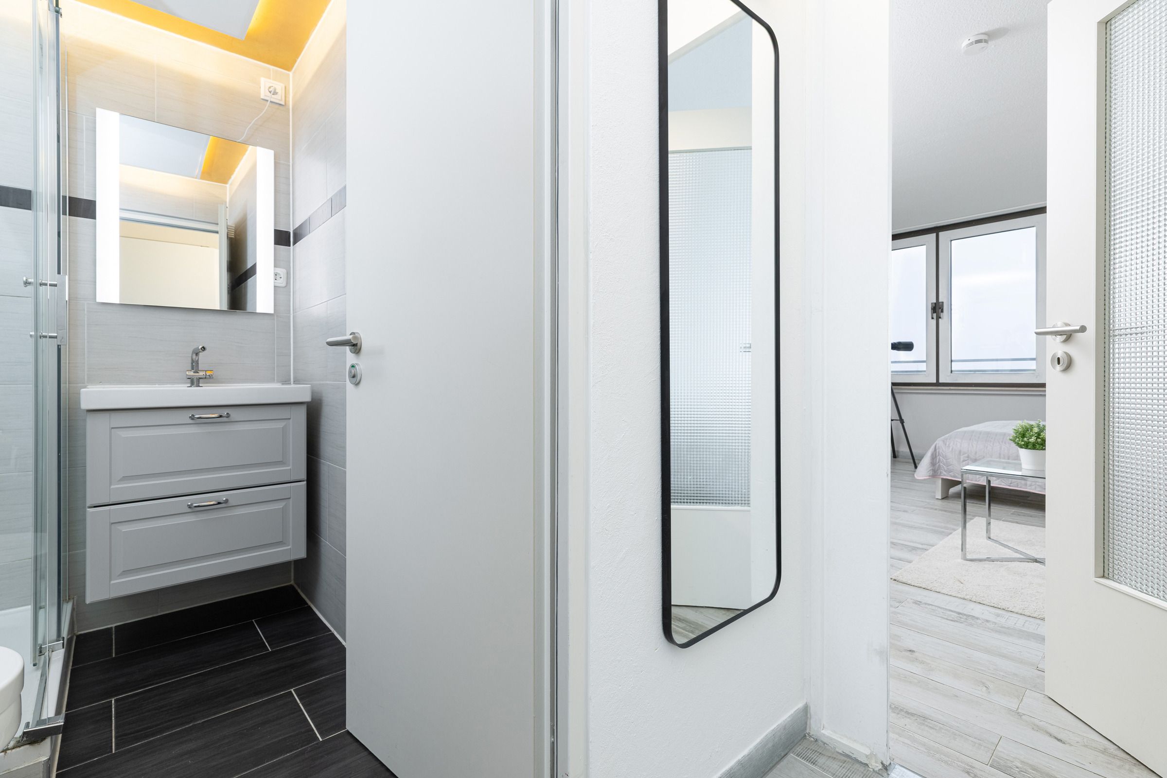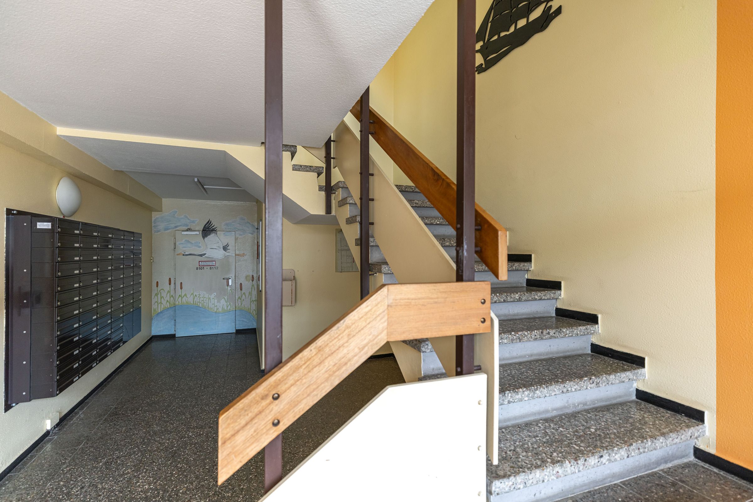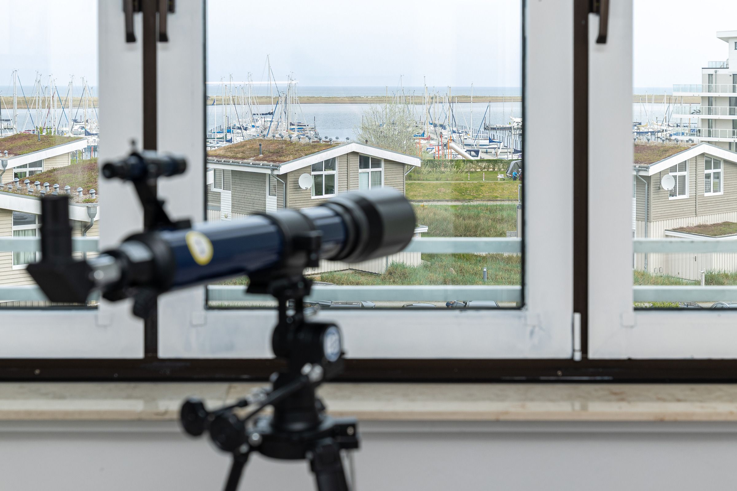 Der 4. Stock, in welchem sich die Wohnung befindet, erreichen Sie über das Treppenhaus oder aber bequem über den Fahrstuhl, der direkt gegenüber von der Wohnung hält. Wer noch höher hinaus möchte, kann über das per Hausflur verbundene Nachbarhaus Palstek 2a auf die Dachterrasse für einen grandiosen Rundumblick über die Marina, den Beginn der Kieler Förde und die Probstei genießen.