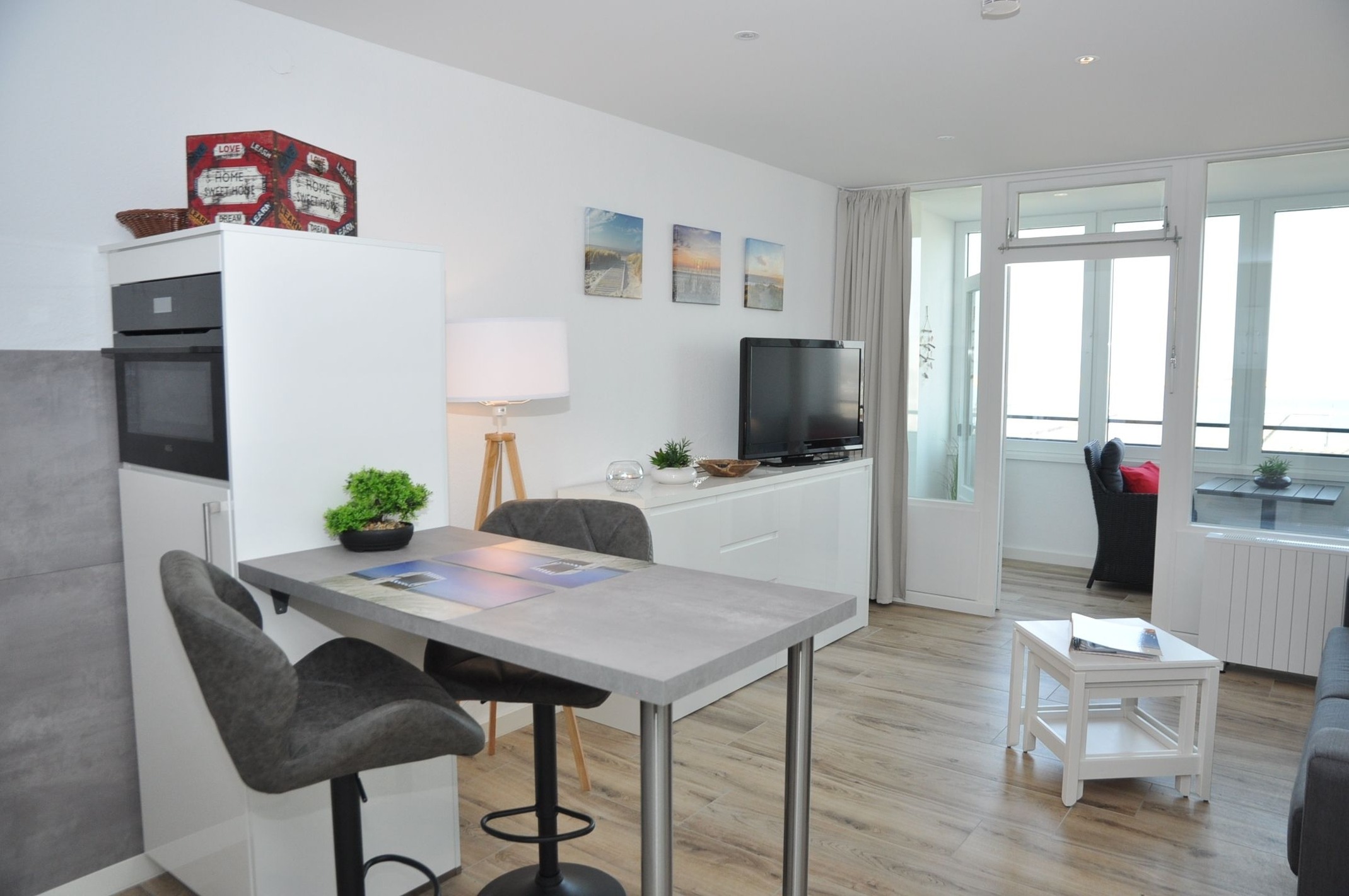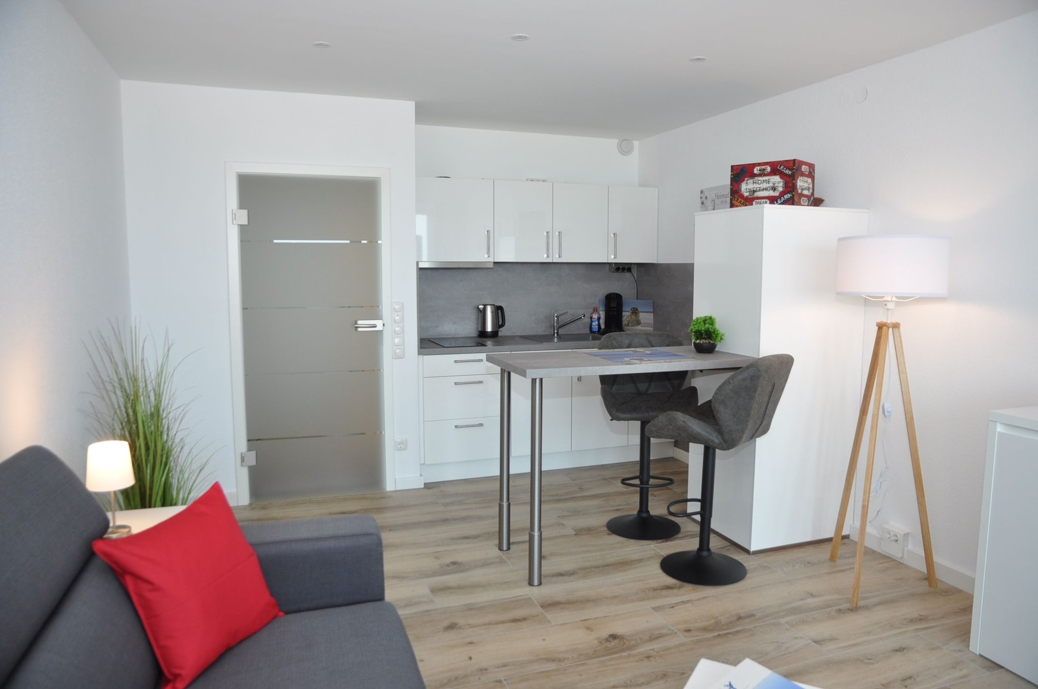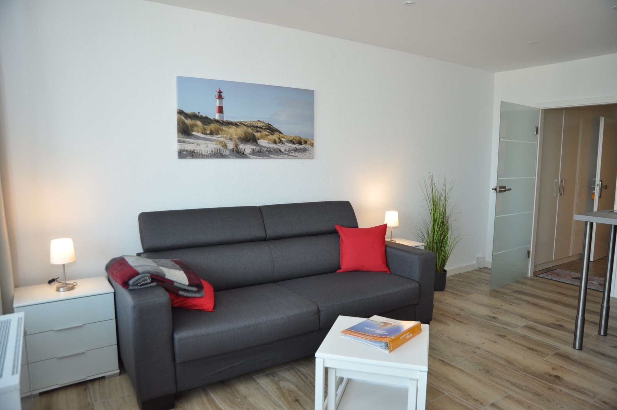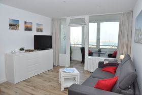 Die 1-Zimmer-Ferienwohnung Leuchtturmblick mit ca. 33 m² Wohnfläche im 5. Stock ist für 2 Personen geeignet.