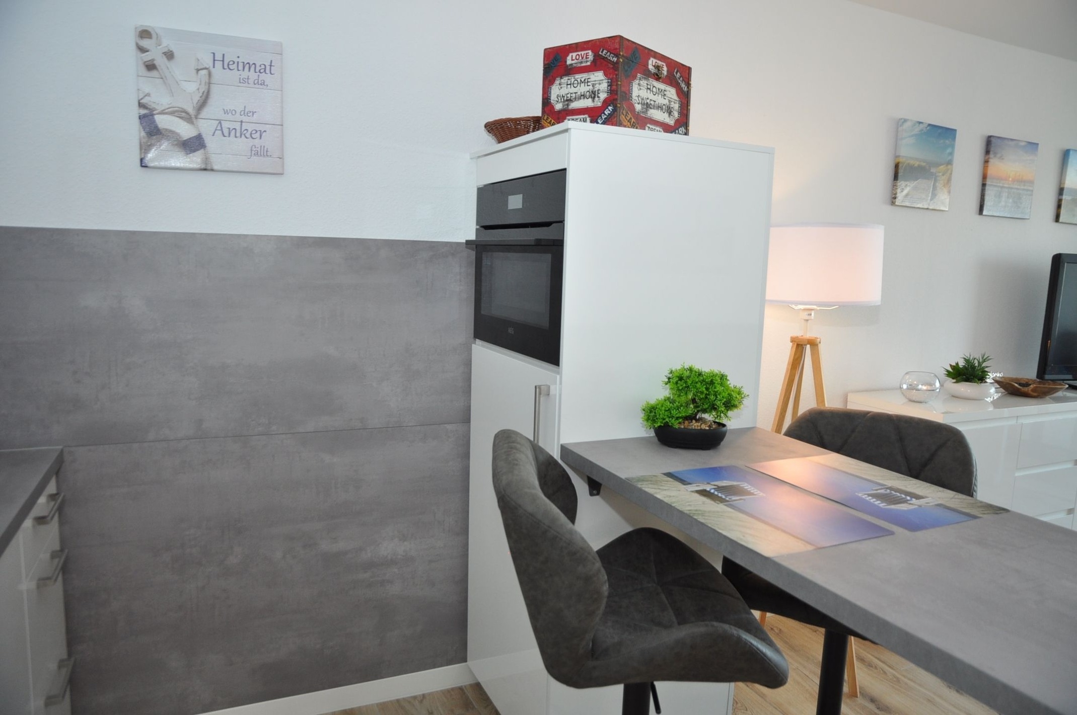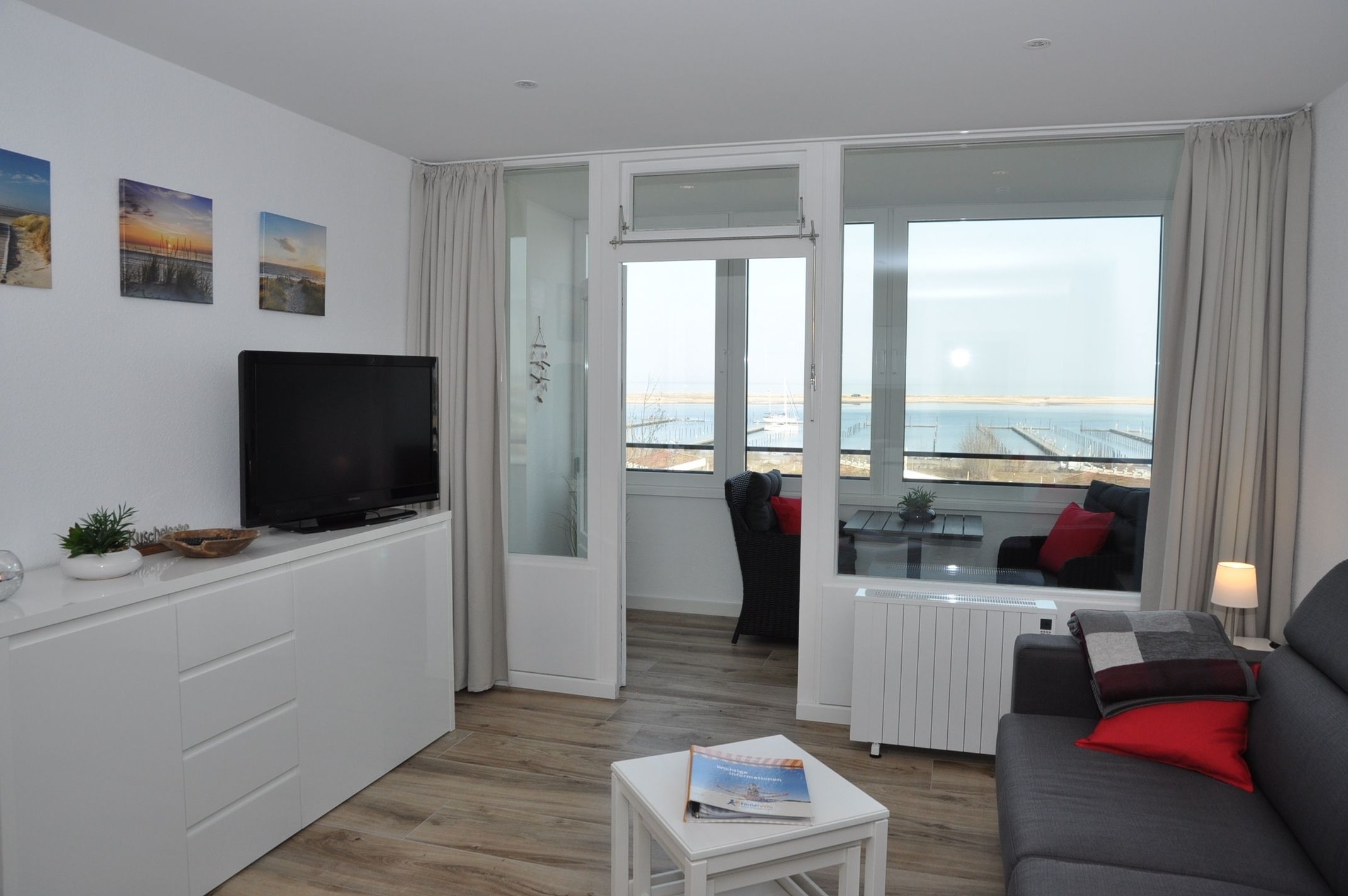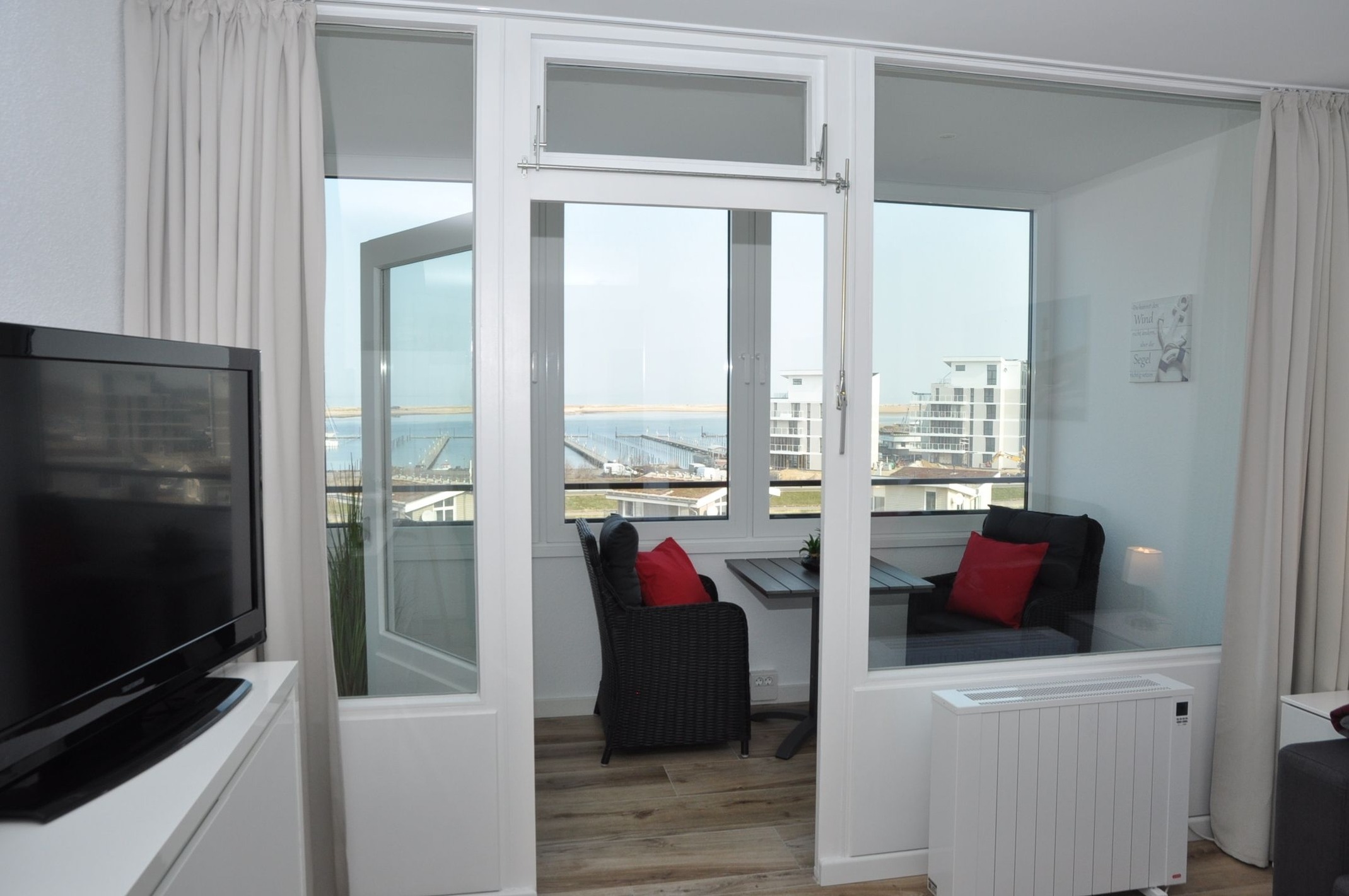 Die Wohnung ist modern ausgestattet, die offene Wohnküche bietet alles was das Herz begehrt - Induktionsherd, Toaster, Kaffee- und Espressomaschine, Spülmaschine sowie eine Mikrowelle mit Backofen-Funktion. Zur Nacht wird die Couch einfach zum gemütlichen Bett ausgeklappt. Wunderbar - der Ausblick direkt auf den Yachthafen. Im geschlossen Balkon kann man den Abend gemütlich ausklingen lassen.