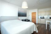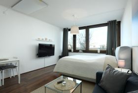 Charmant und schlicht empfängt dieses 1-Zimmer-Appartement bis zu 2 Erwachsene und 1 Kind im 2. Stock des Haus Zugvogel (Palstek 2b) in zweiter Reihe zur Marina.