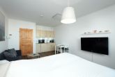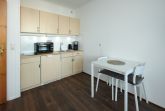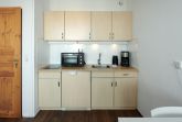 Das Appartement bietet alles, was man für einen Urlaub am Meer benötigt: ein helles Badezimmer mit Dusche, eine kleine Küchenzeile und ein bequemes Doppelbett sowie eine Schlafcouch, einen Kleiderschrank und einen Fernseher. Auch ein Kinderreisebett lässt sich noch gut unterbringen.