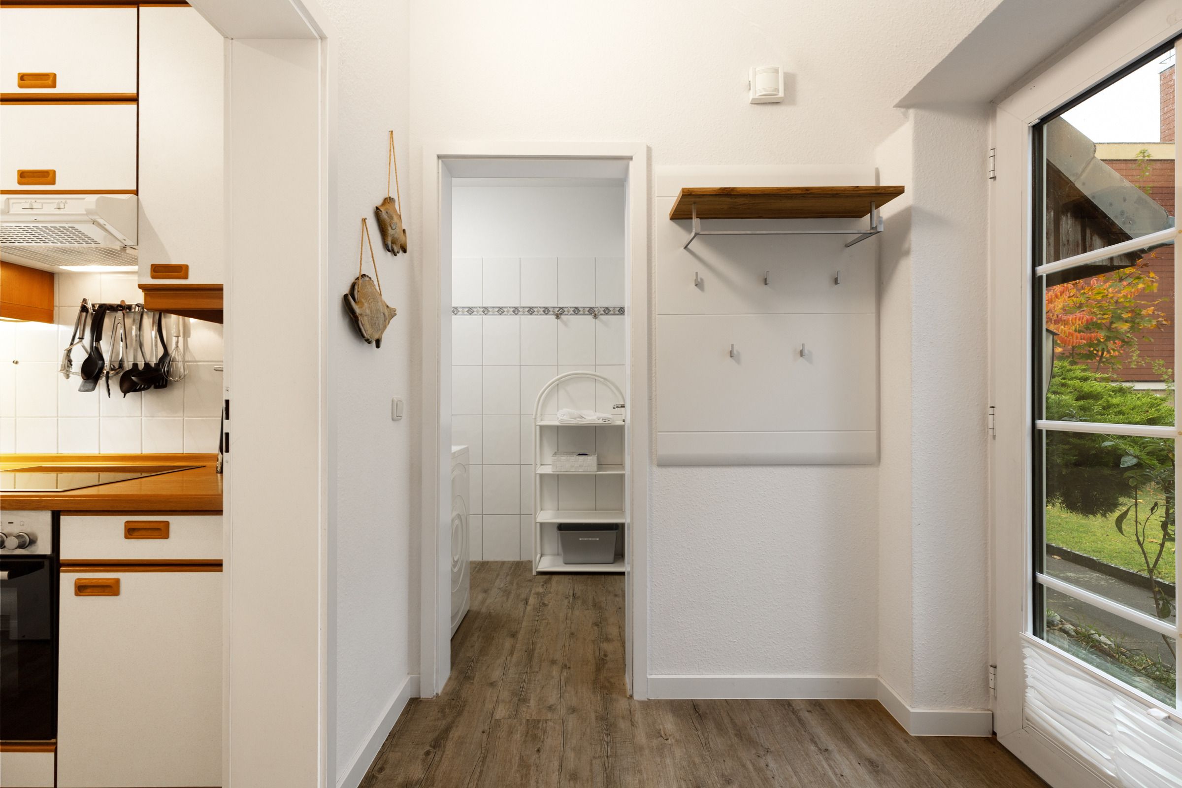 Ihr PKW-Stellplatz ist ca. 80 m vom Haus entfernt. Für die An und Abreise können Sie vor das Haus fahren. Für Fahrräder, Surfbrett & Co. steht Ihnen ein kleiner Schuppen zur Verfügung.