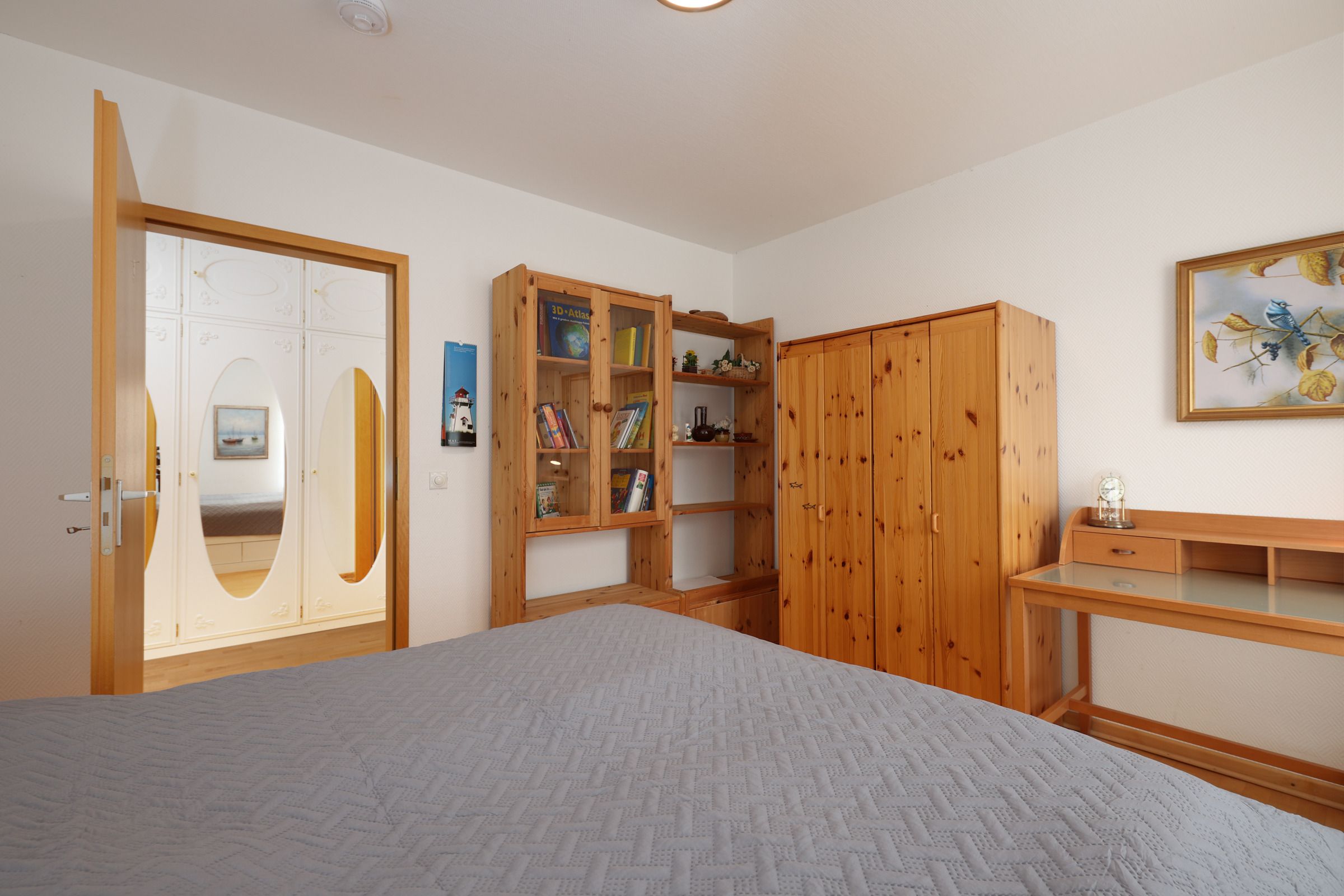 Schlafzimmer: Doppelbett (2x 80x200 cm), Kleiderschrank, Verdunkelung (Rollo)
