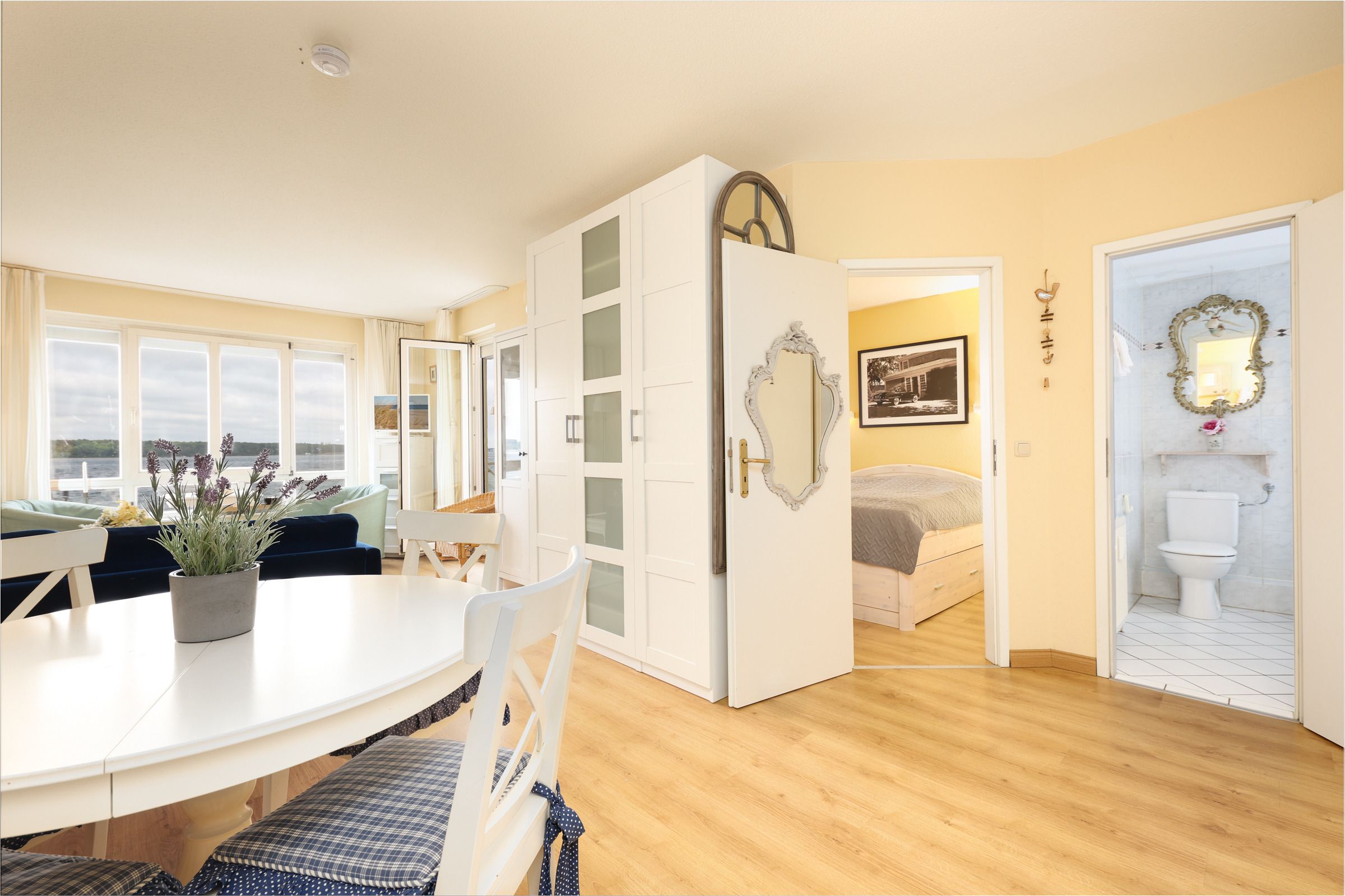 Die liebevoll eingerichtete Ferienwohnung befindet sich im 1.OG des Strandhotel. Von hier haben Sie einen herrlichen Blick auf die Kieler Förde und den Strand von Laboe. Sie erreichen Ihr Feriendomizil bequem über den Aufzug oder die Treppe. In der Tiefgarage haben Sie Ihren Platz für Ihren PKW und mitgebrachte Fahrräder.