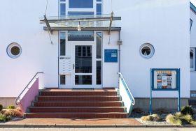Die Schlüsselübergabe erfolgt über einen Tresor am Kraushaar Ferienwohnungen Servicebüro in der Strandstraße 10, 24235 Laboe.