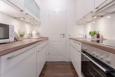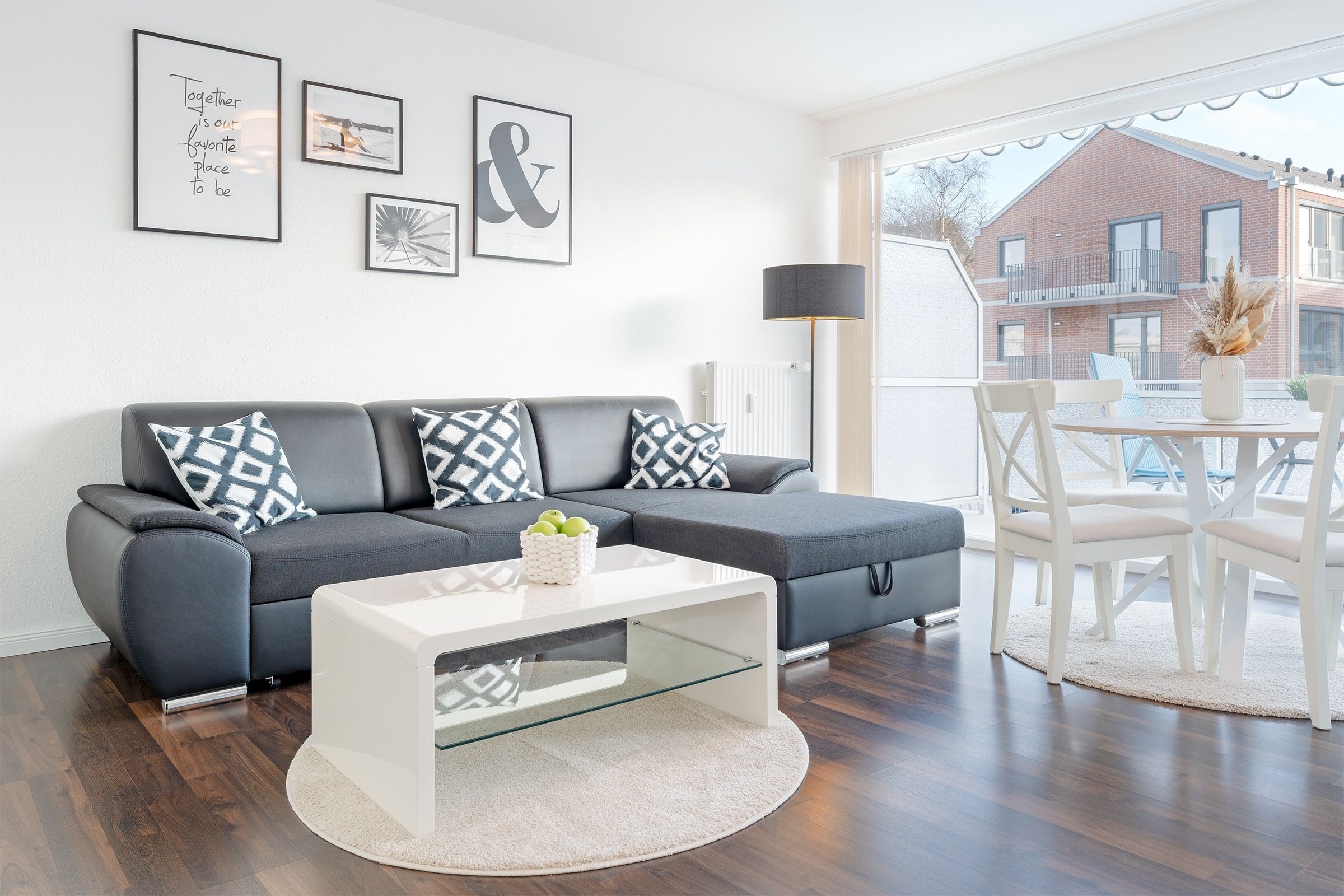 Stylisch und edel präsentiert sich die Ferienwohnung Bude 7 in der schönen Wohnanlage Alte Bergstraße 11 – nur rund 200 Meter vom Ostseestrand entfernt. Der Wohnbereich besticht durch eine gemütliche Sitzecke und einen Esstisch an der Fensterfront. Treten Sie direkt hinaus und genießen Sie die Seeluft auf dem möblierten Balkon. Die Auszeit haben Sie sich wirklich verdient. In der separaten, gut ausgestatteten Küche wartet eine Nespresso-Maschine auf ihren Einsatz. Nach einem sonnigen Strandtag können Sie sich mit der Playstation 4 noch ein wenig die Zeit vertreiben. Wunderbar schlafen werden Sie wahlweise im Doppelbett (140x200 cm) im kuscheligen Schlafzimmer oder im bequemen Schrankbett (90x200 cm) im Wohnbereich. Das moderne Duschbad ist hell gefliest und bringt Sie entspannt in den neuen Tag.