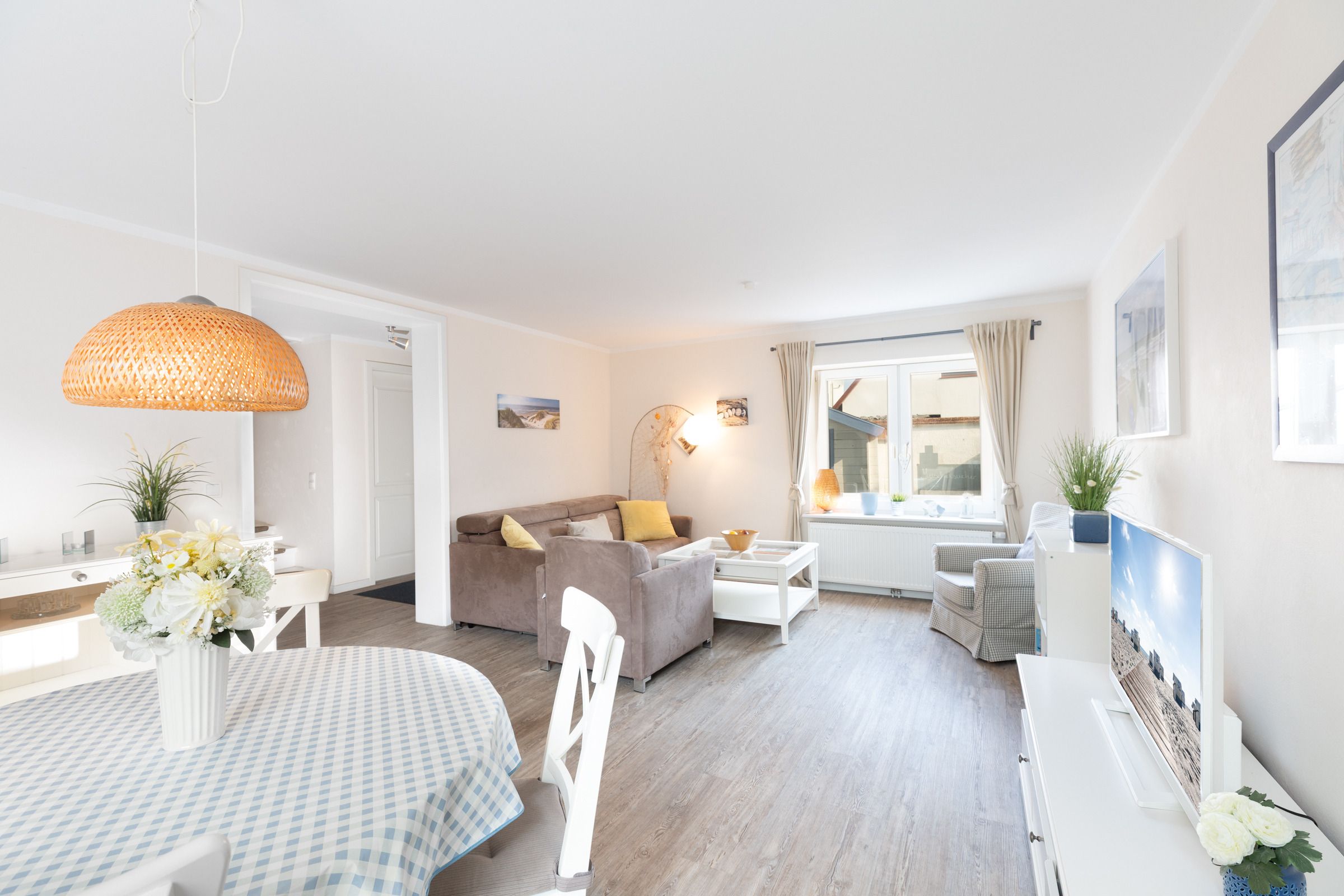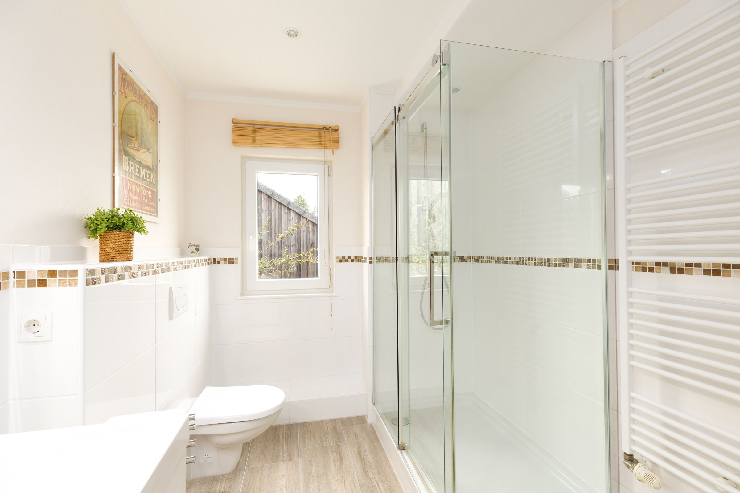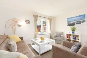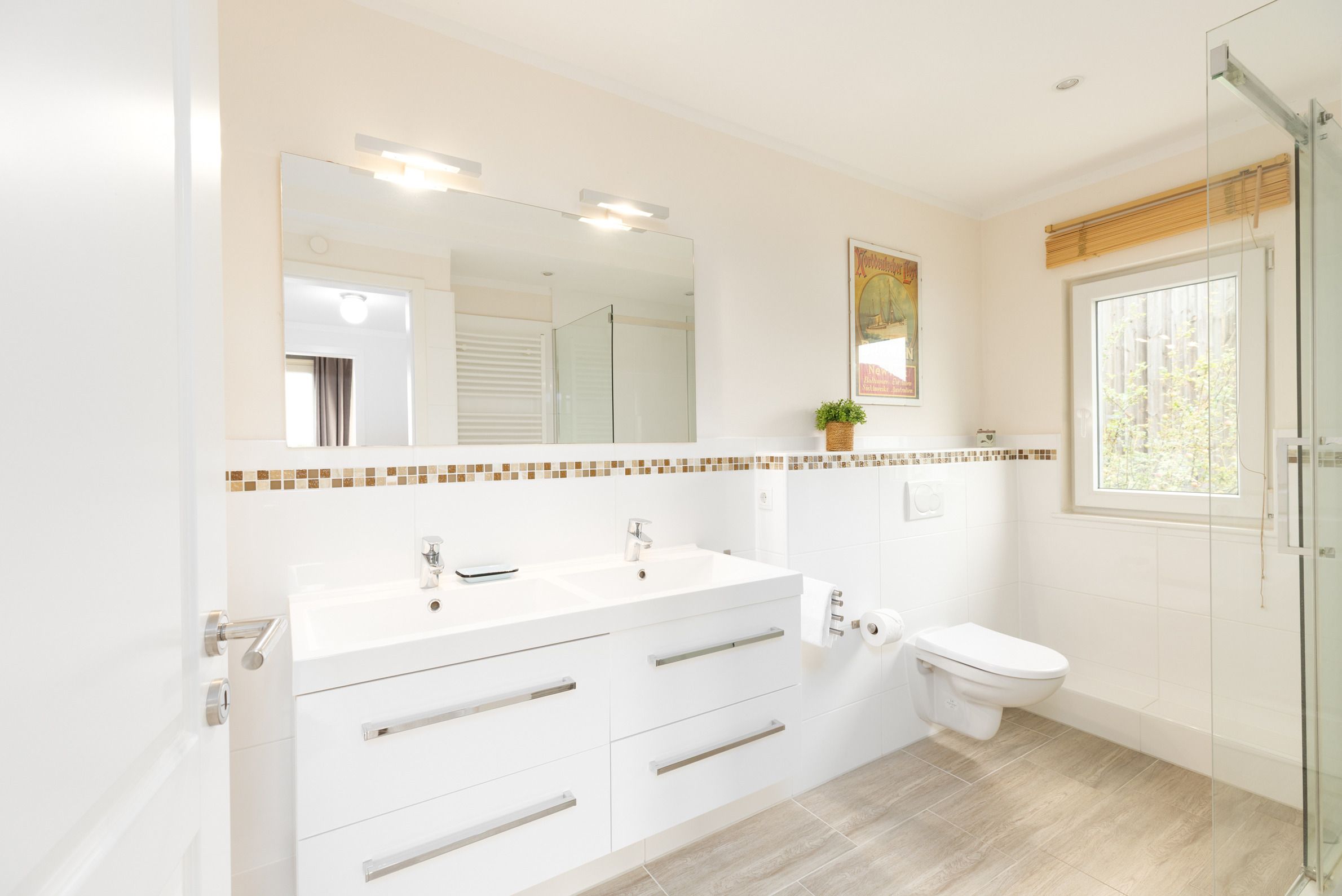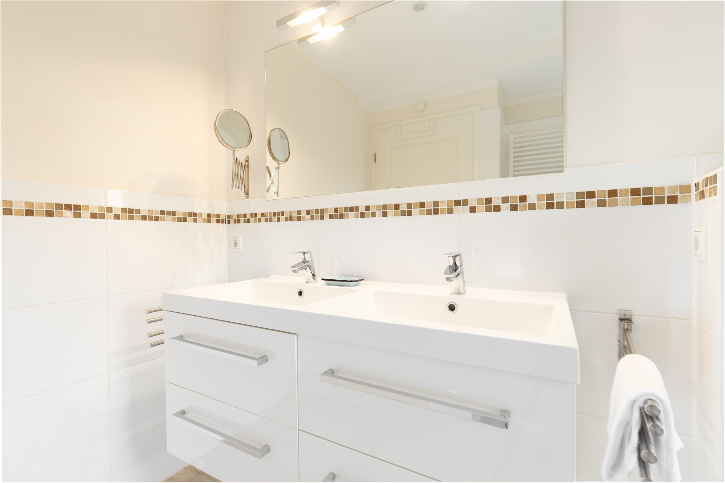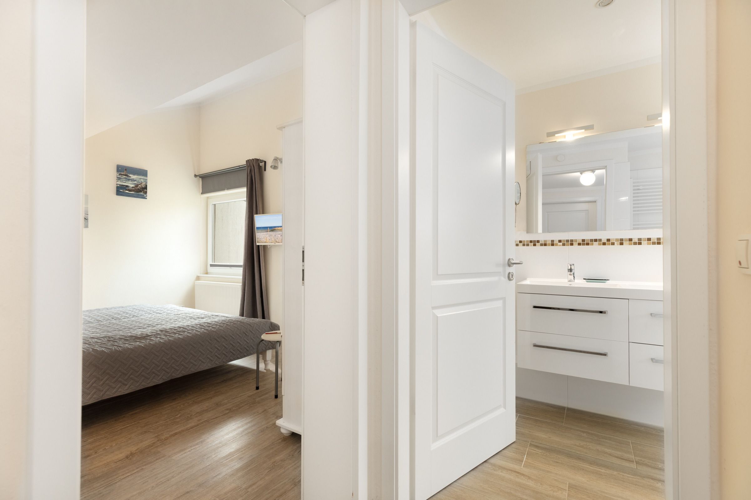 Zwei separate Schlafzimmer, wovon eines mit einem Doppelbett und eines mit 2 Einzelbetten ausgestattet ist, versprechen erholsame Nächte. Ein Duschbad mit großer Dusche, Doppelwaschbecken und Handtuchwärmer sowie ein Gäste-WC runden das Angebot dieser Ferienwohnung ab. Ein kostenfreier WLAN-Anschluss ist hier ebenfalls vorhanden.