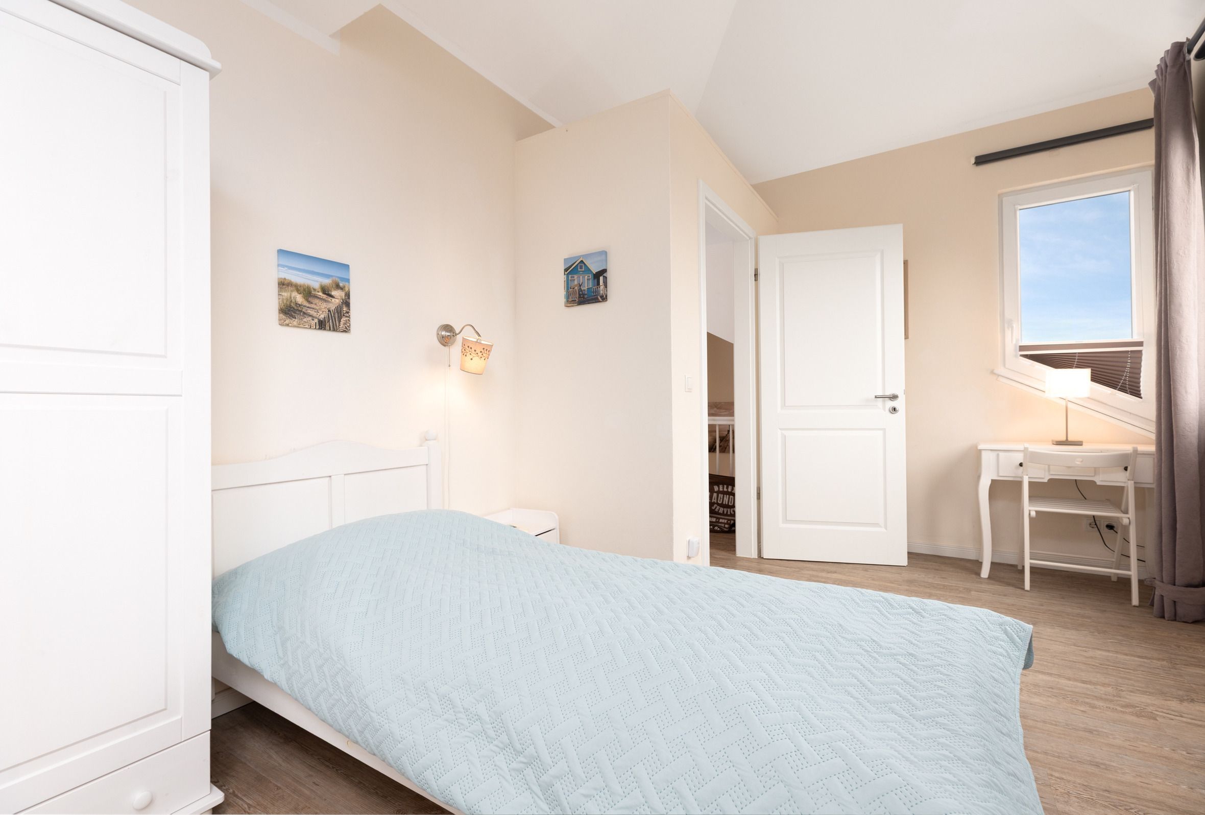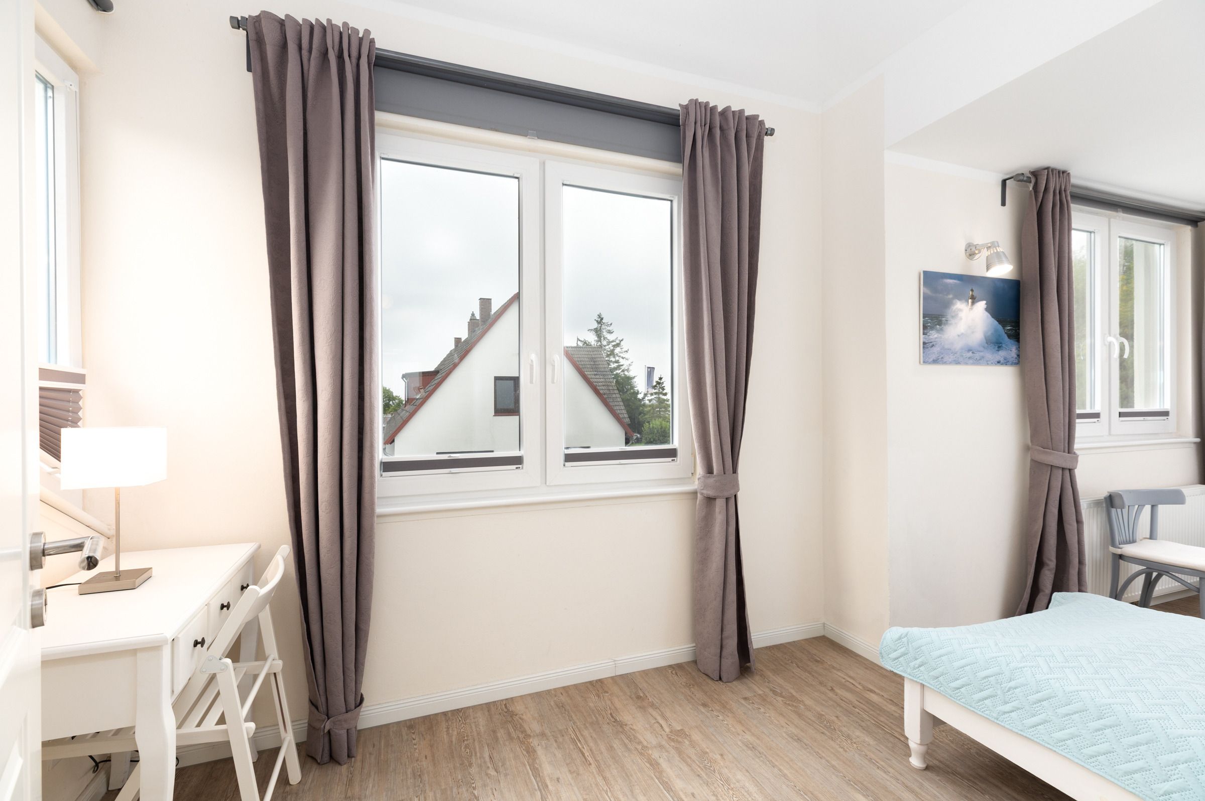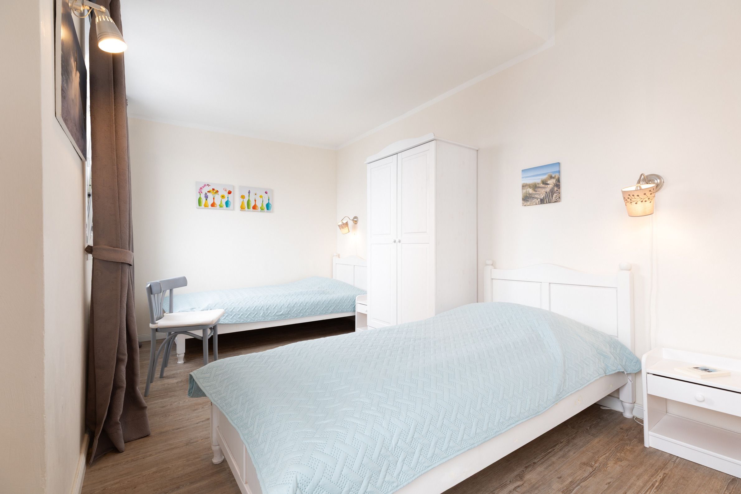 Schlafzimmer 2: 2 Einzelbetten, Kleiderschrank, Verdunkelung: Rollo