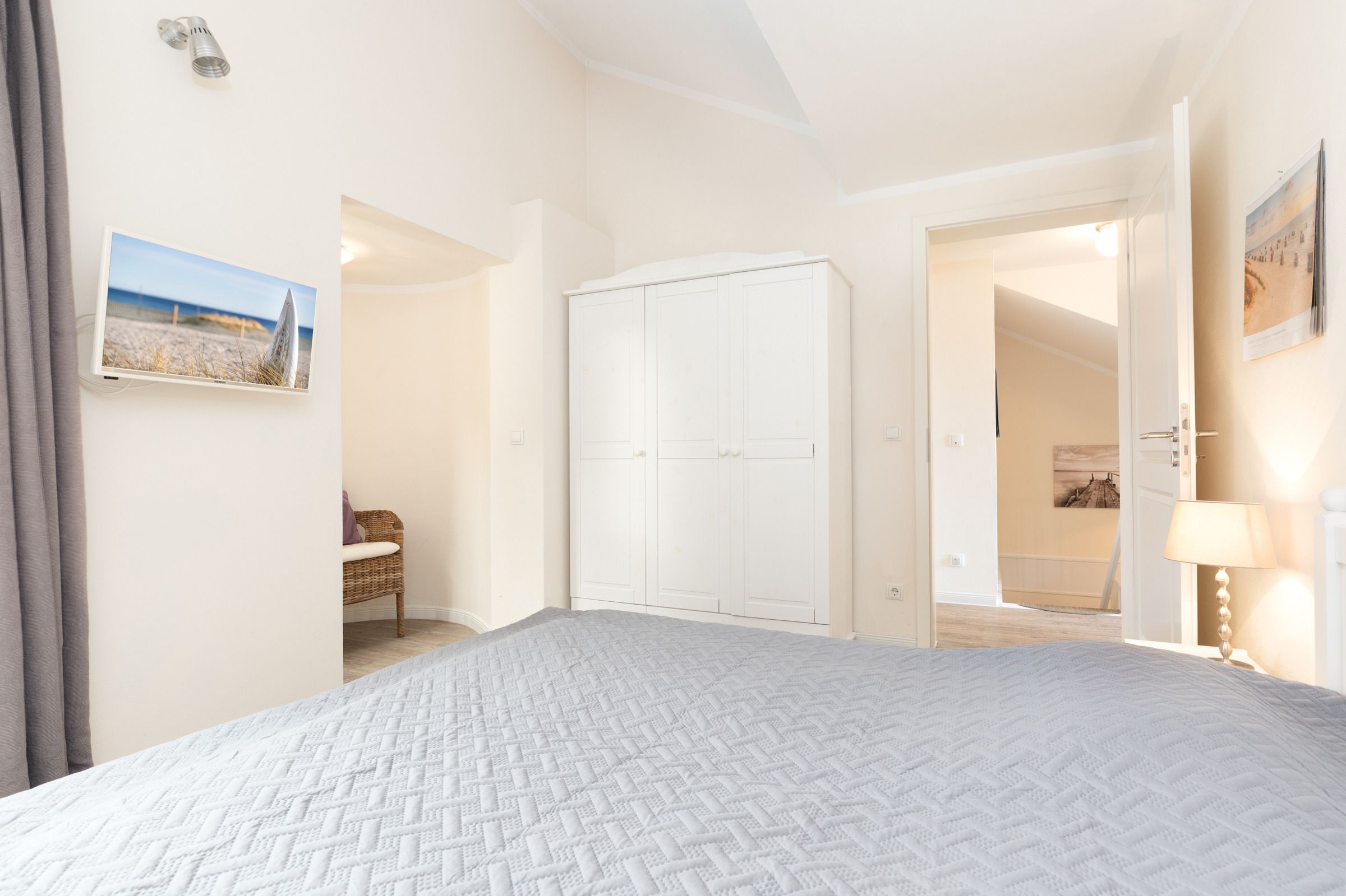 Schlafzimmer 1: 1 Doppelbett, Kleiderschrank, TV, Verdunkelung: Rollo
