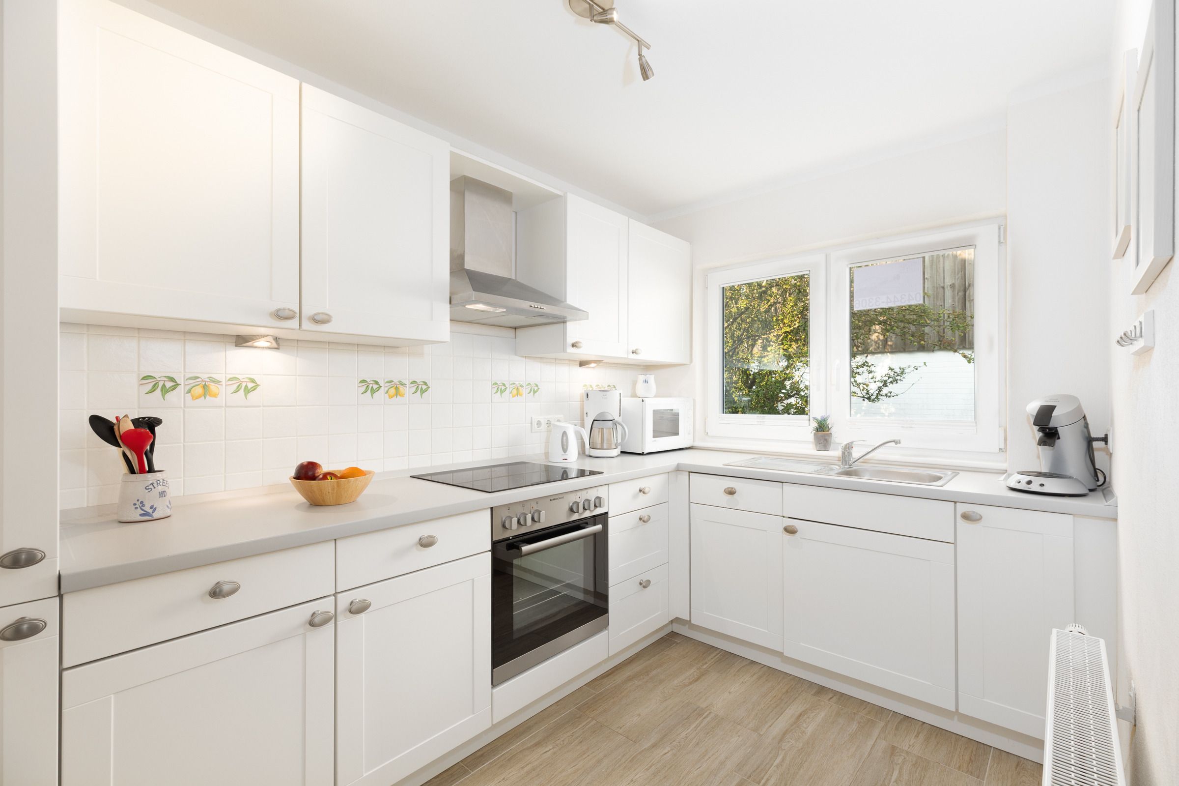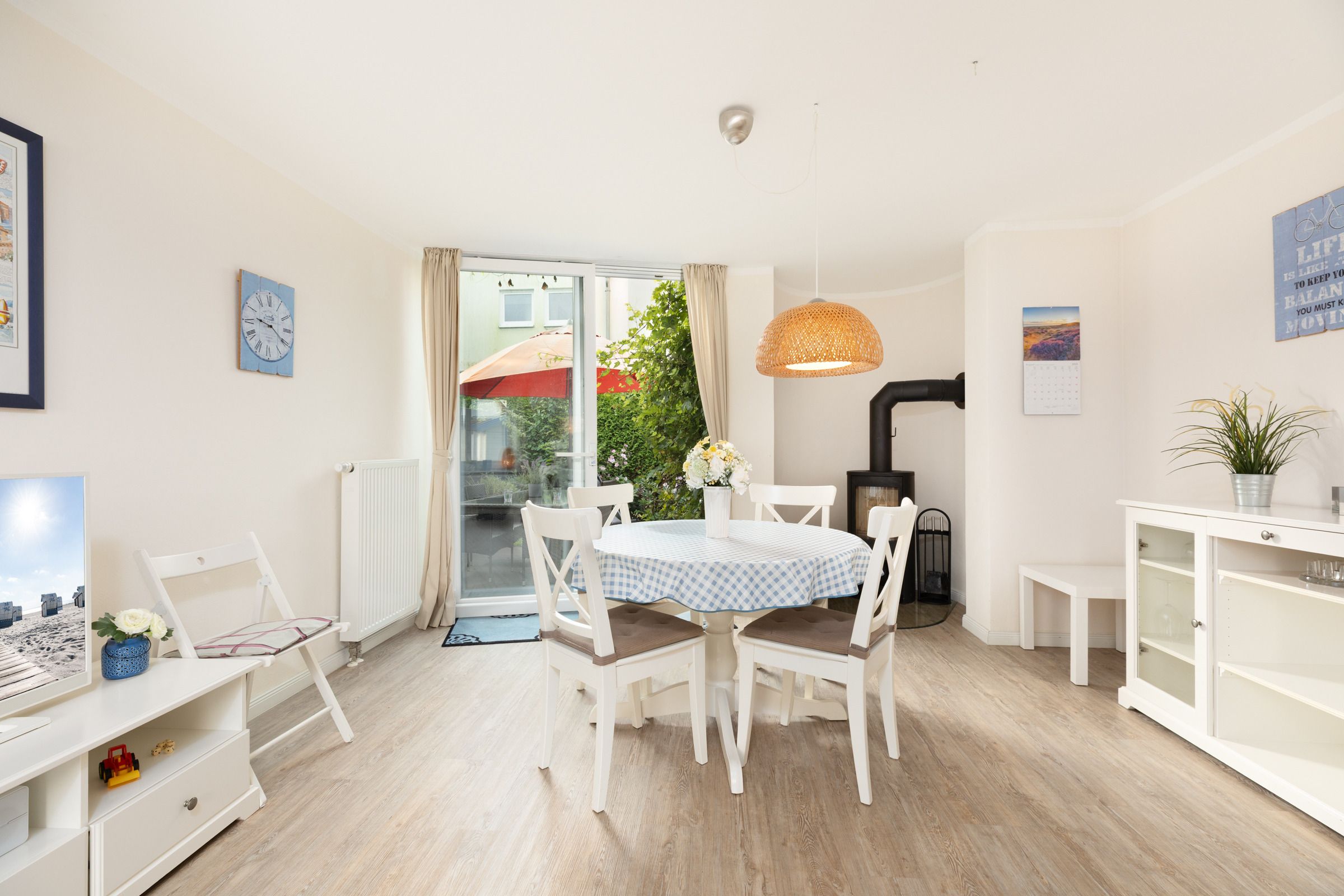 Es erwartet Sie der heimelige Wohn-/Essbereich mit Kaminofen, der auch an kühlen Tagen eine warme und gemütliche Atmosphäre entstehen lässt. Bereiten Sie Ihr Frühstück, Mittag- oder Abendessen in der gute ausgestatteten Küche zu und genießen Ihre Mahlzeiten bei schönem Wetter auf der sonnigen Terrasse.