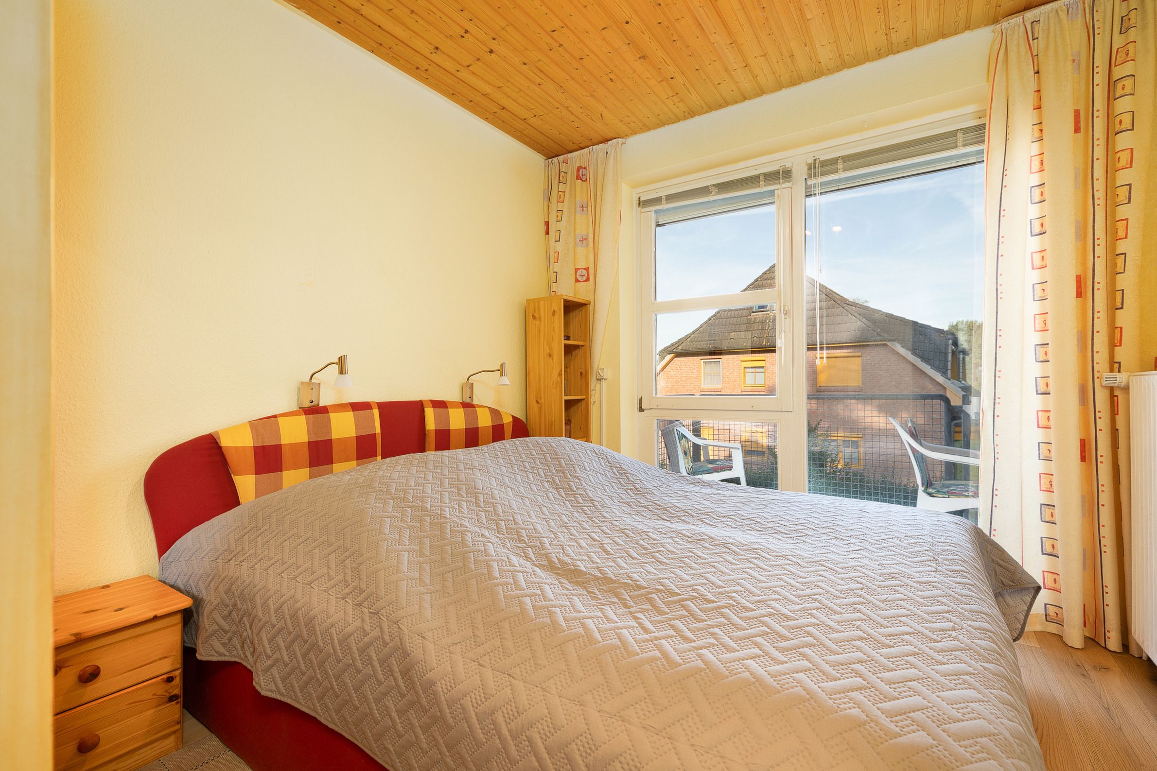 Schlafzimmer 1 (1. OG): 1 Doppelbett (2x 80x200 cm), Kleiderschrank, Verdunkelung: Jalousien