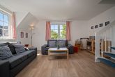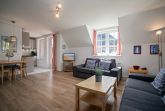 Auf einer Wohnfläche von ca. 65 m² verteilen sich ein Wohnzimmer mit intergrierter Küchenzeile und Essbereich, ein Duschbad und zwei separate Schlafzimmer im Dachgeschoss, die mit einem Doppelbett (2x 90x200 cm) und zwei Einzelbetten (je 90x200 cm) ausgestattet sind.