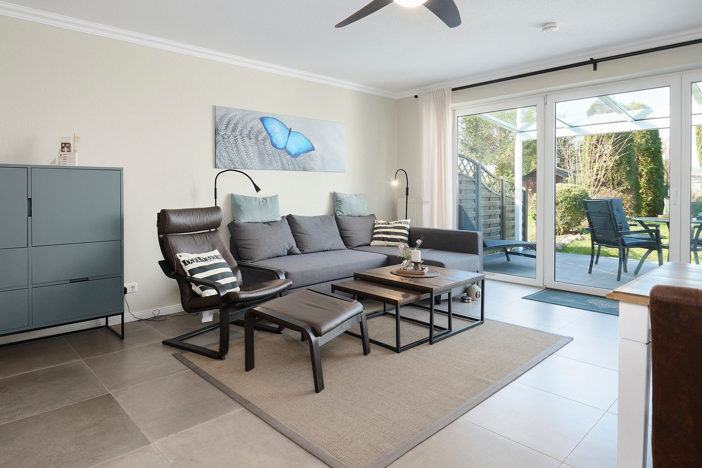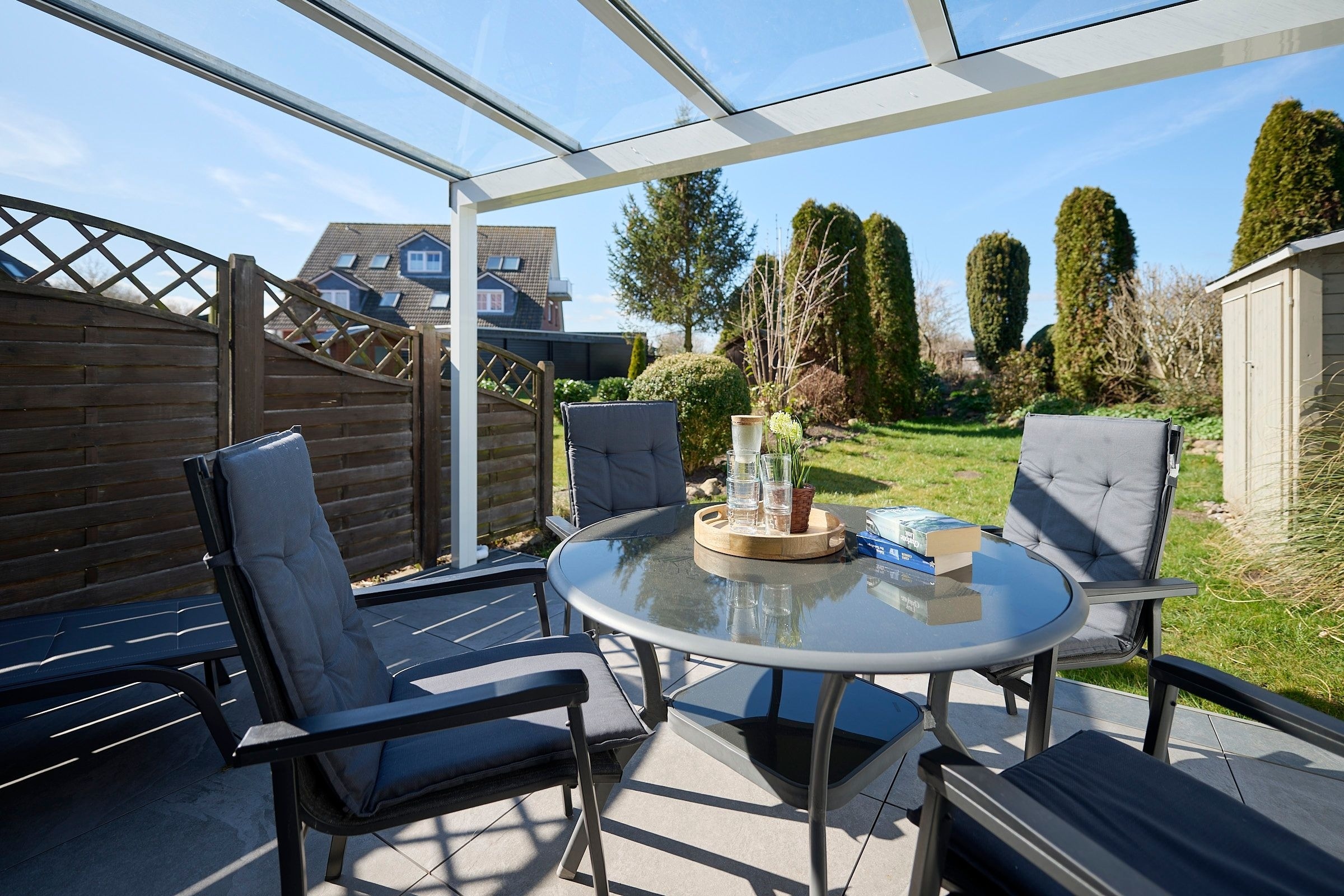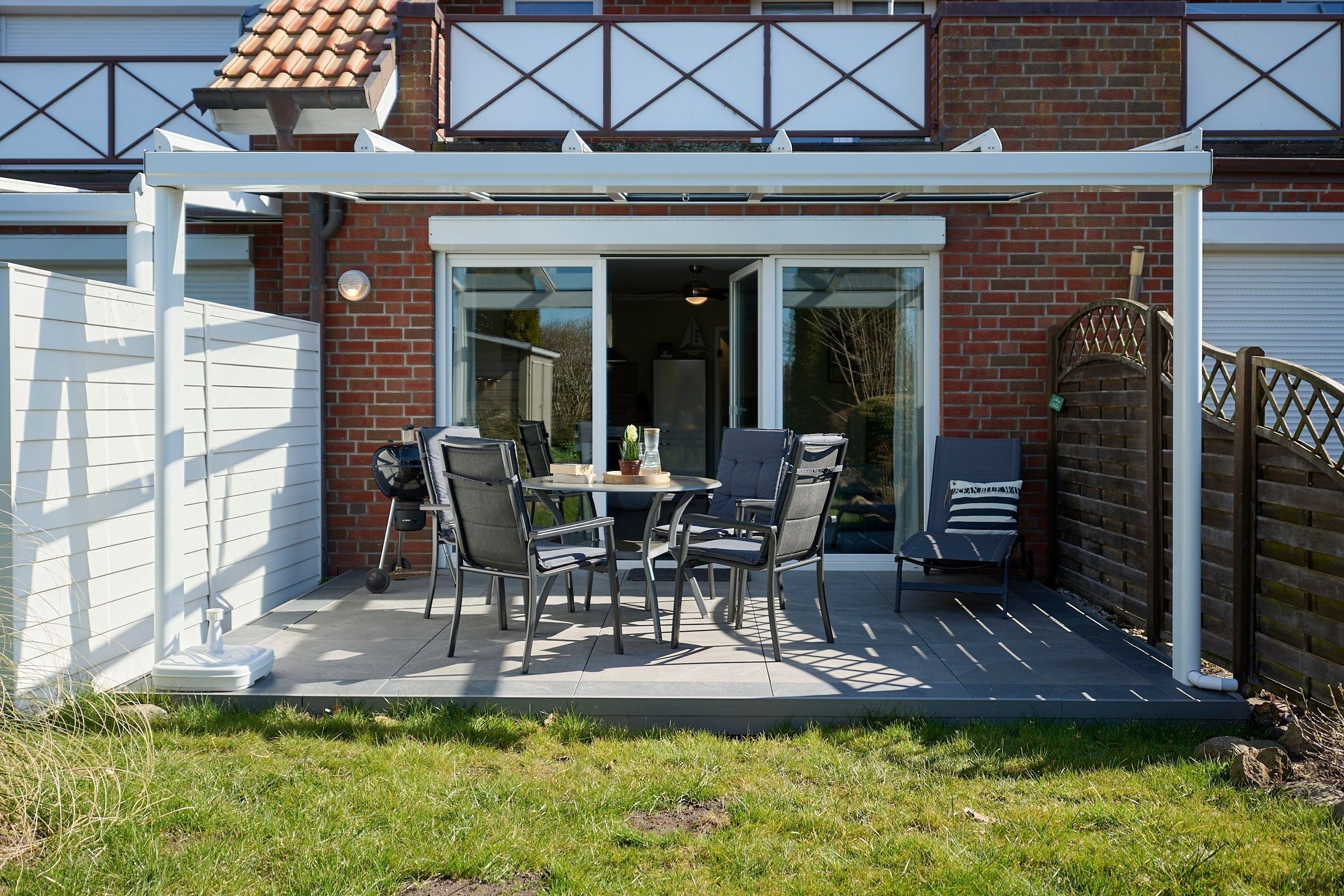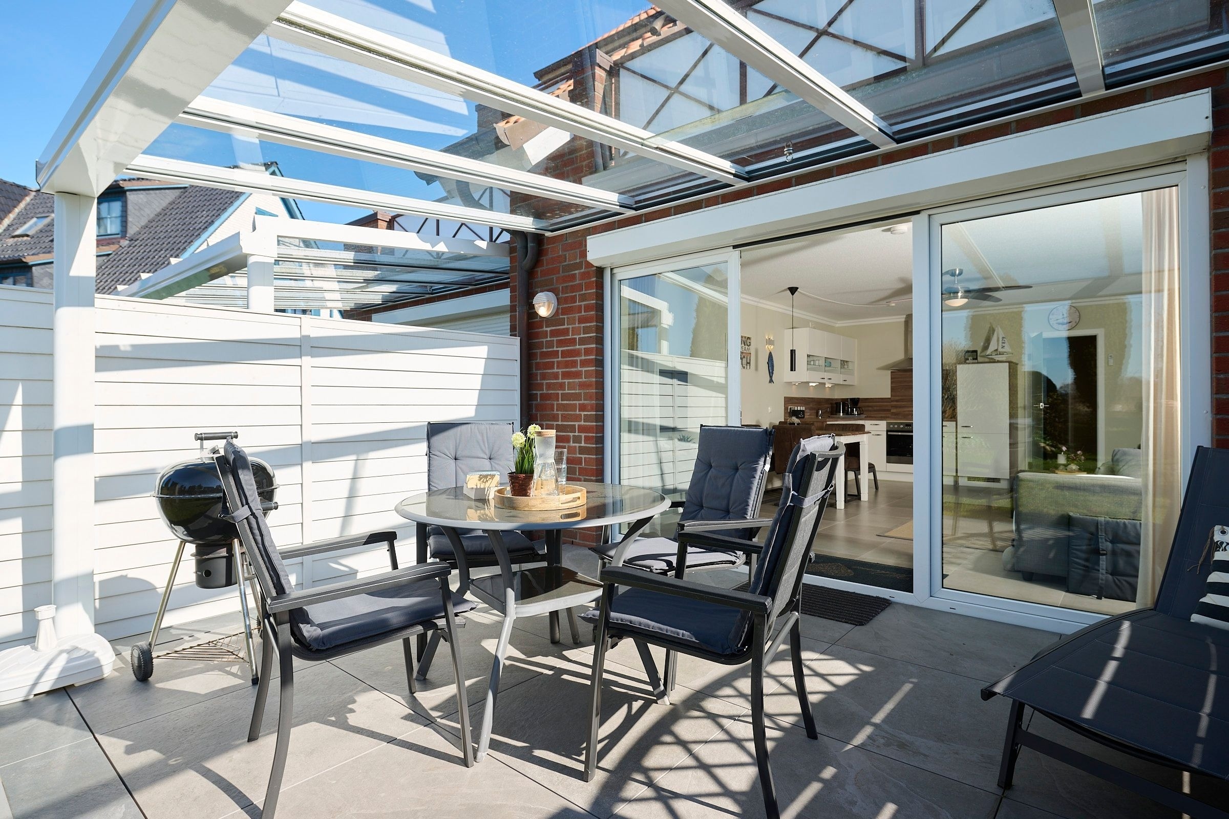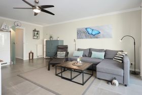 Vom großzügigen, lichtdurchfluteten Wohnzimmer können Sie direkt auf die zur Sonnenseite gerichtete Terrasse treten, die mit bequemen Gartenmöbeln und einen Grill ausgestattet ist. Die mit allem Komfort ausgestattete Küche lässt keine Wünsche offen. Das Duschbad ist mit einem Handtuchwärmer, Kosmetikspiegel und einen Fön ausgestattet. Die Fußbodenerwärmung sorgt hier für wohlige Wärme. WLAN ist inklusive.