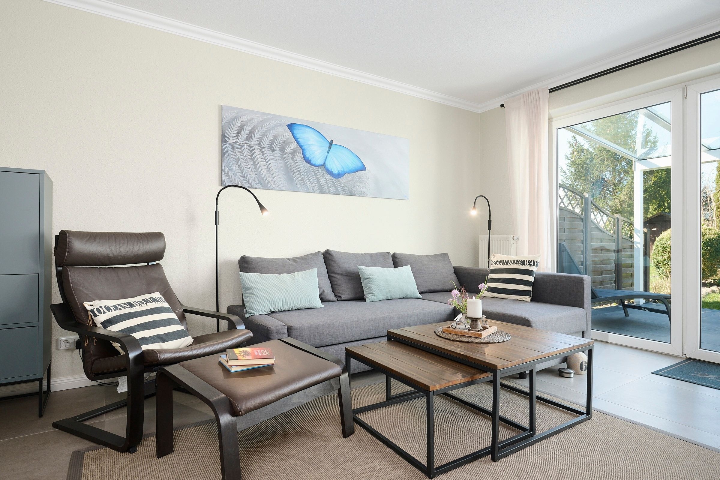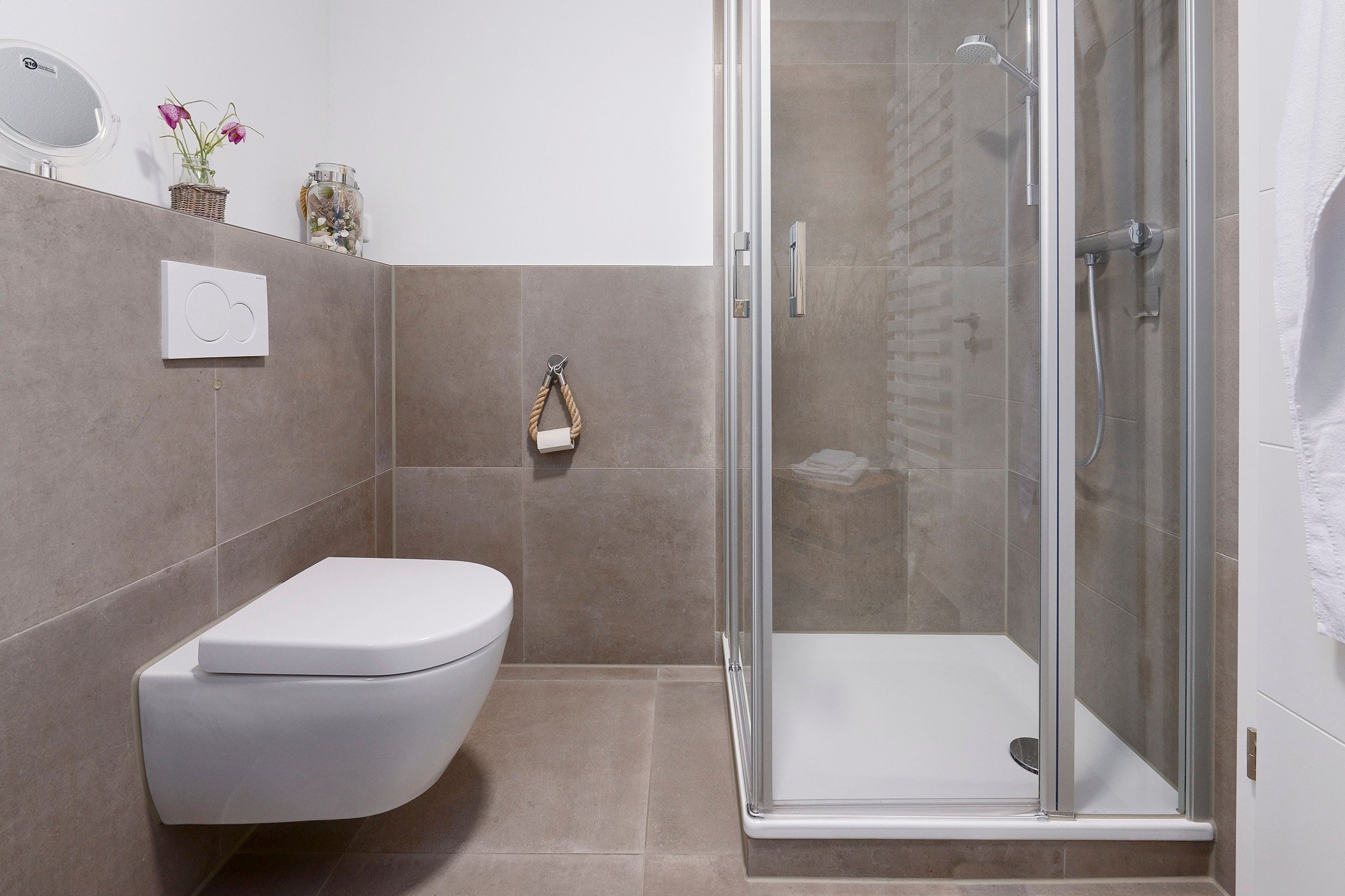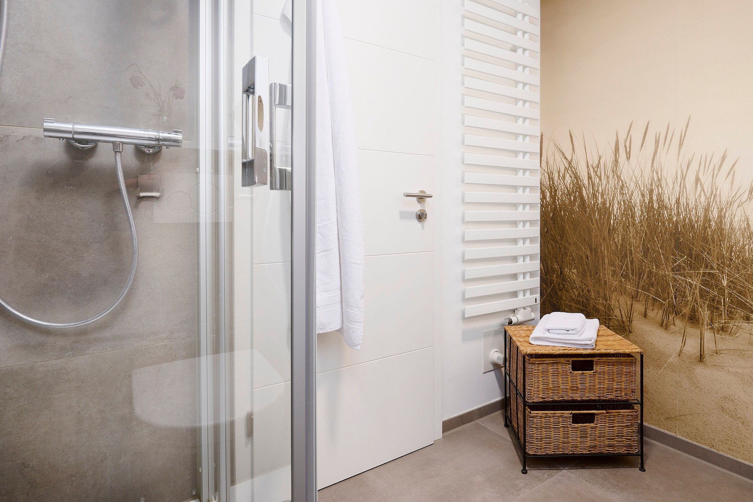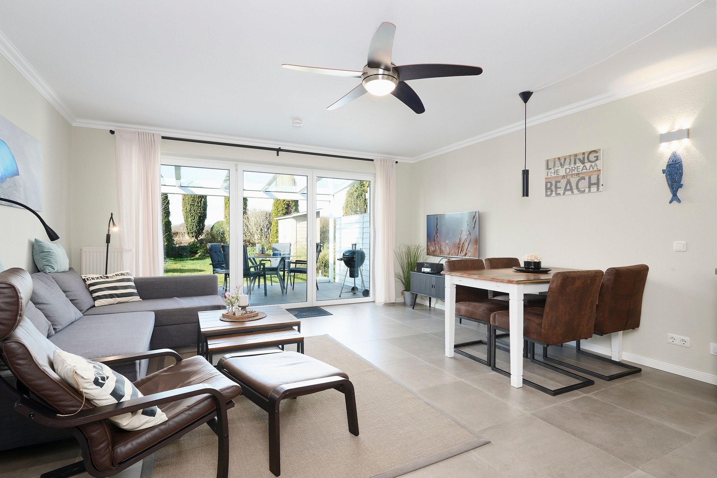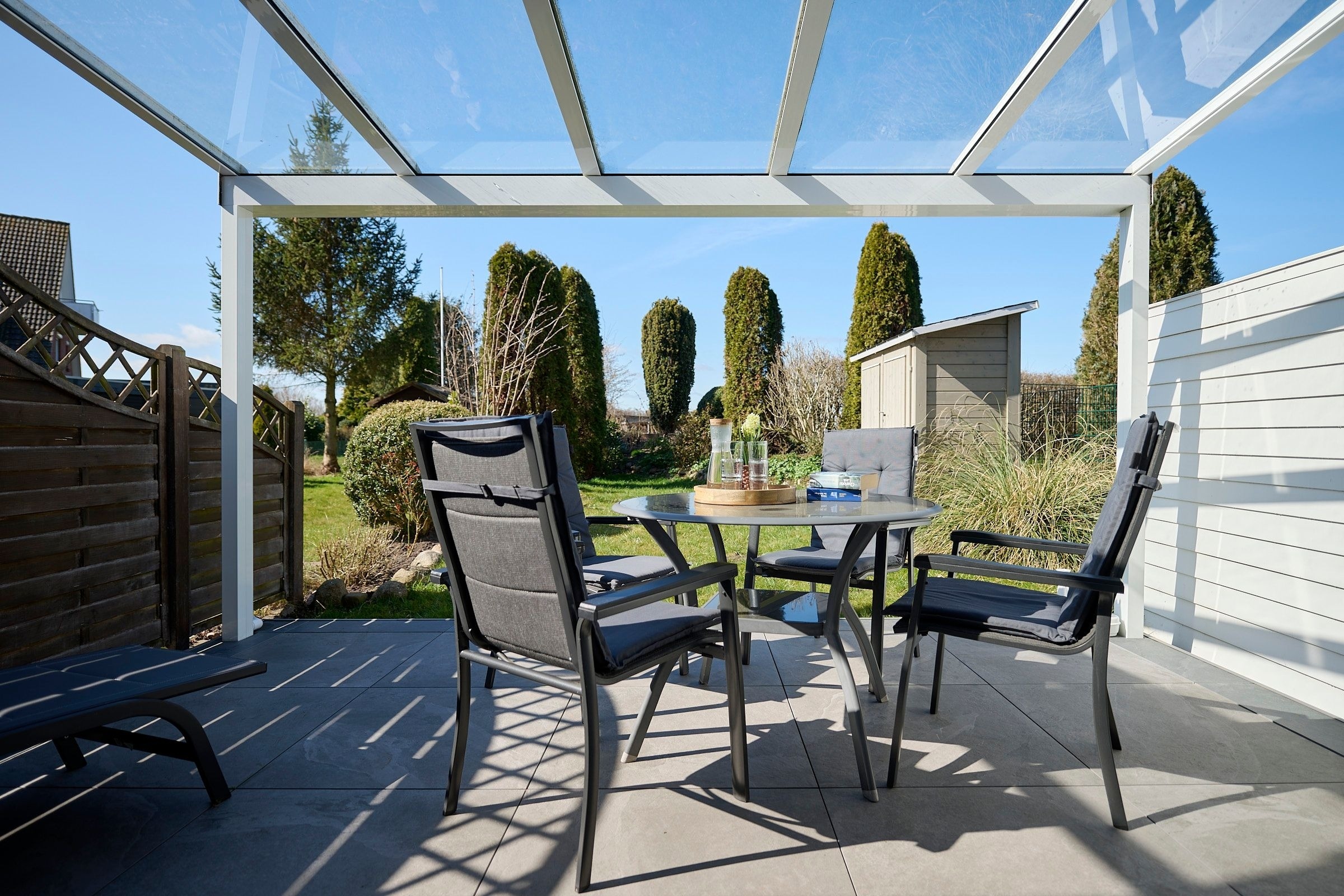 Vom großzügigen, lichtdurchfluteten Wohnzimmer können Sie direkt auf die zur Sonnenseite gerichtete Terrasse treten, die mit bequemen Gartenmöbeln und einen Grill ausgestattet ist. Die mit allem Komfort ausgestattete Küche lässt keine Wünsche offen. Das Duschbad ist mit einem Handtuchwärmer, Kosmetikspiegel und einen Fön ausgestattet. Die Fußbodenerwärmung sorgt hier für wohlige Wärme. WLAN ist inklusive.