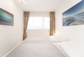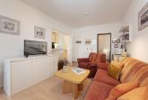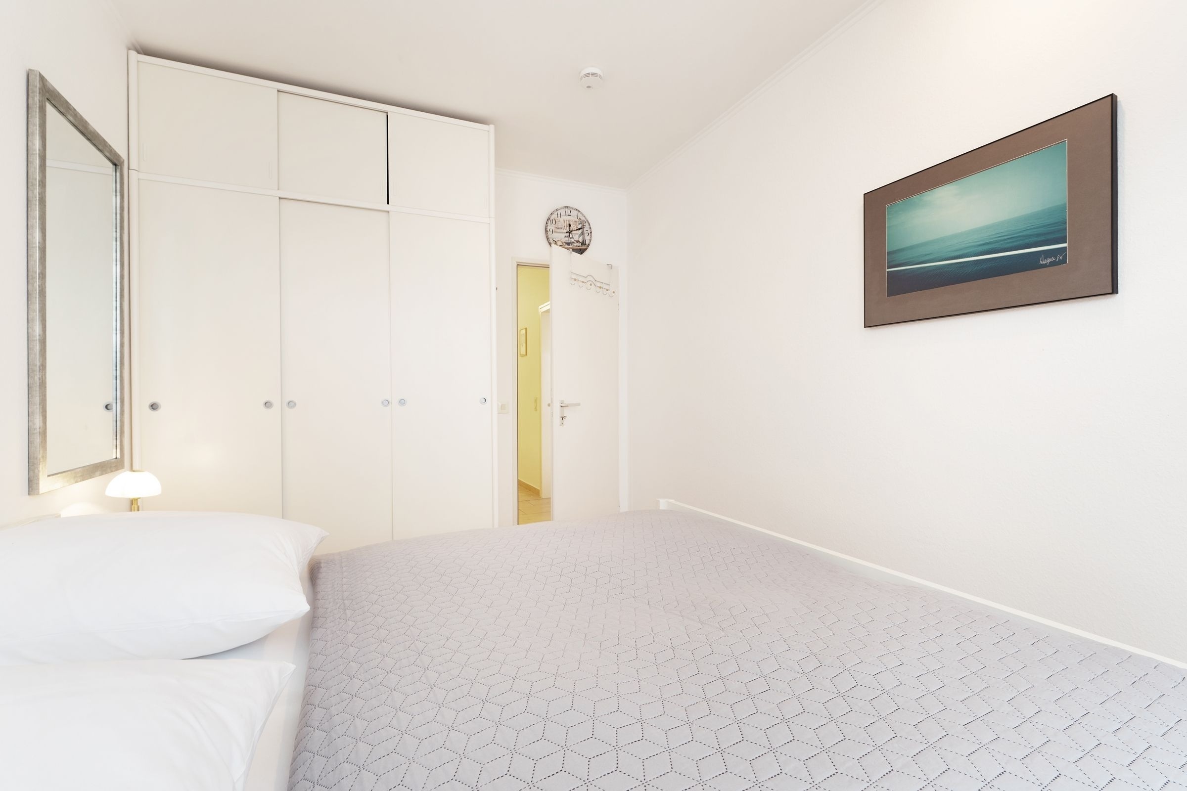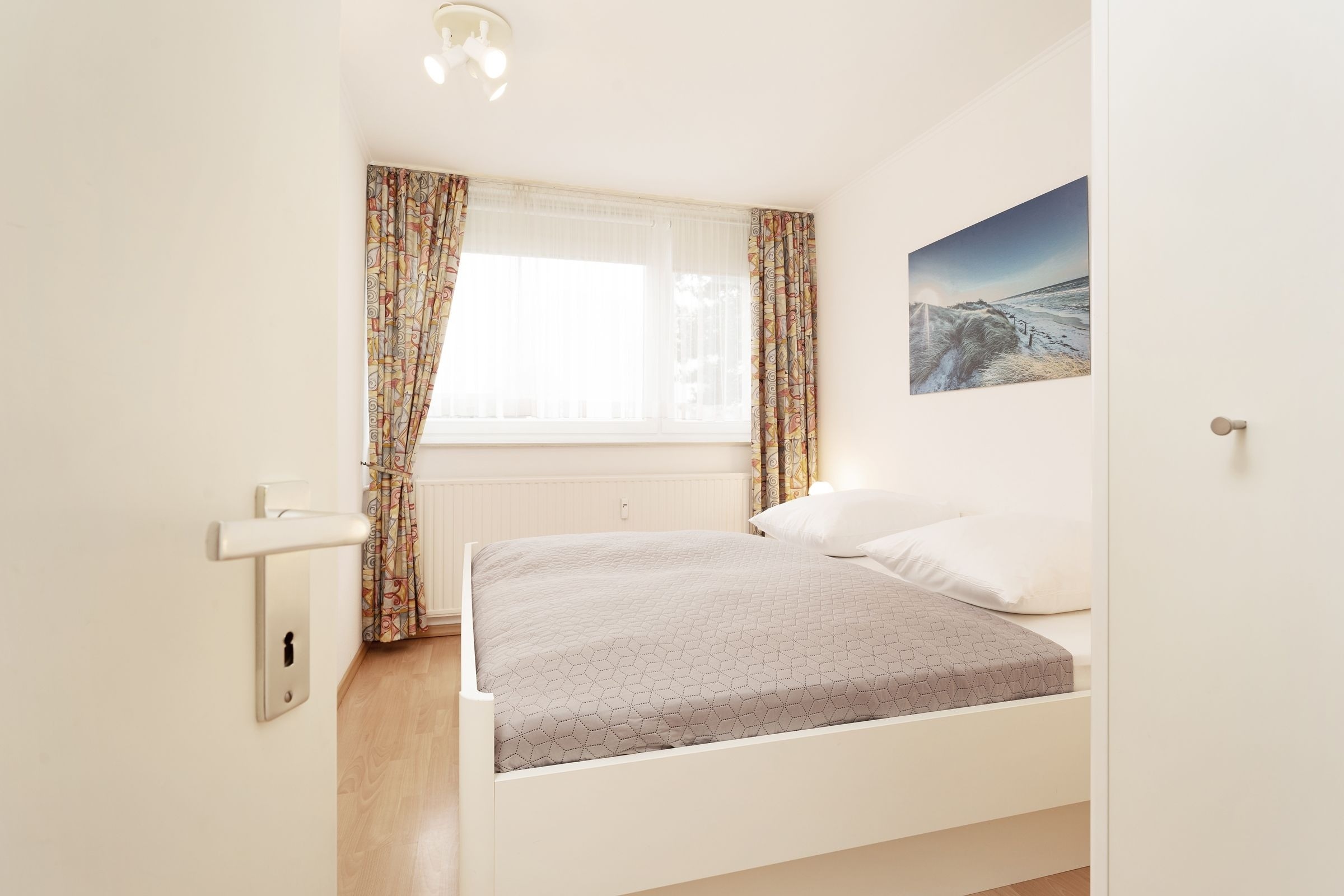 Die Ferienwohnung befindet sich im 3. Stock und mit nur 130 Meter Entfernung zum Strand bietet sie alles für einen entspannten Ostseeurlaub. Der Wohnbereich ist gemütlich eingerichtet und verfügt über TV und Radio. Vom Wohnzimmer aus gelangen Sie auf den nordöstlich ausgerichteten Balkon, der mit Gartenmöbeln ausgestattet ist und sich ideal für ein Frühstück in der frischen Meeresbrise eignet. Die offene Küche bietet sämtliche Annehmlichkeiten, darunter einen Ceranherd, Backofen, Mikrowelle und Kaffeemaschine. Der angrenzende Essbereich lädt zu gemeinsamen Mahlzeiten ein. Die Wohnung verfügt über zwei Schlafzimmer: das Hauptschlafzimmer ist mit einem Doppelbett (2x 90x200 cm) und ein zweites Schlafzimmer mit einer Schlafcouch (90x200 cm) ausgestattet, jeweils mit genügend Stauraum für Ihre Urlaubsgarderobe. Das hell geflieste Duschbad ist innenliegend und bringt Sie frisch in den neuen Tag.