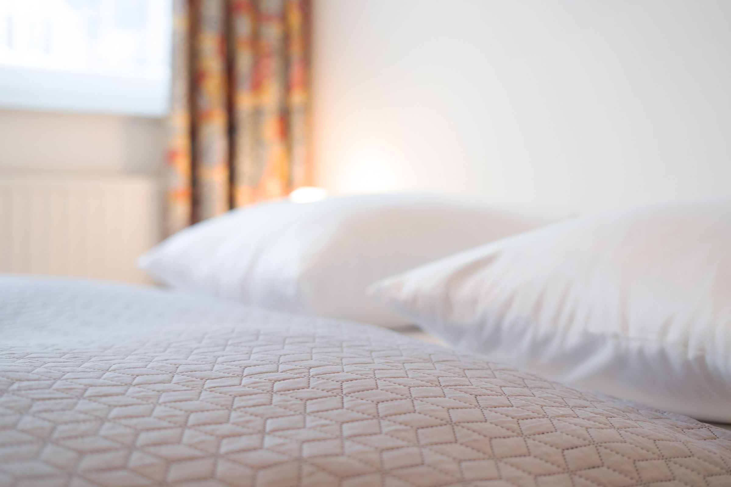 Schlafzimmer 1: Doppelbett (2x 90x200 cm), Kleiderschrank, Verdunkelung: Rollos und Gardinen, kein Platz für Babybett vorhanden