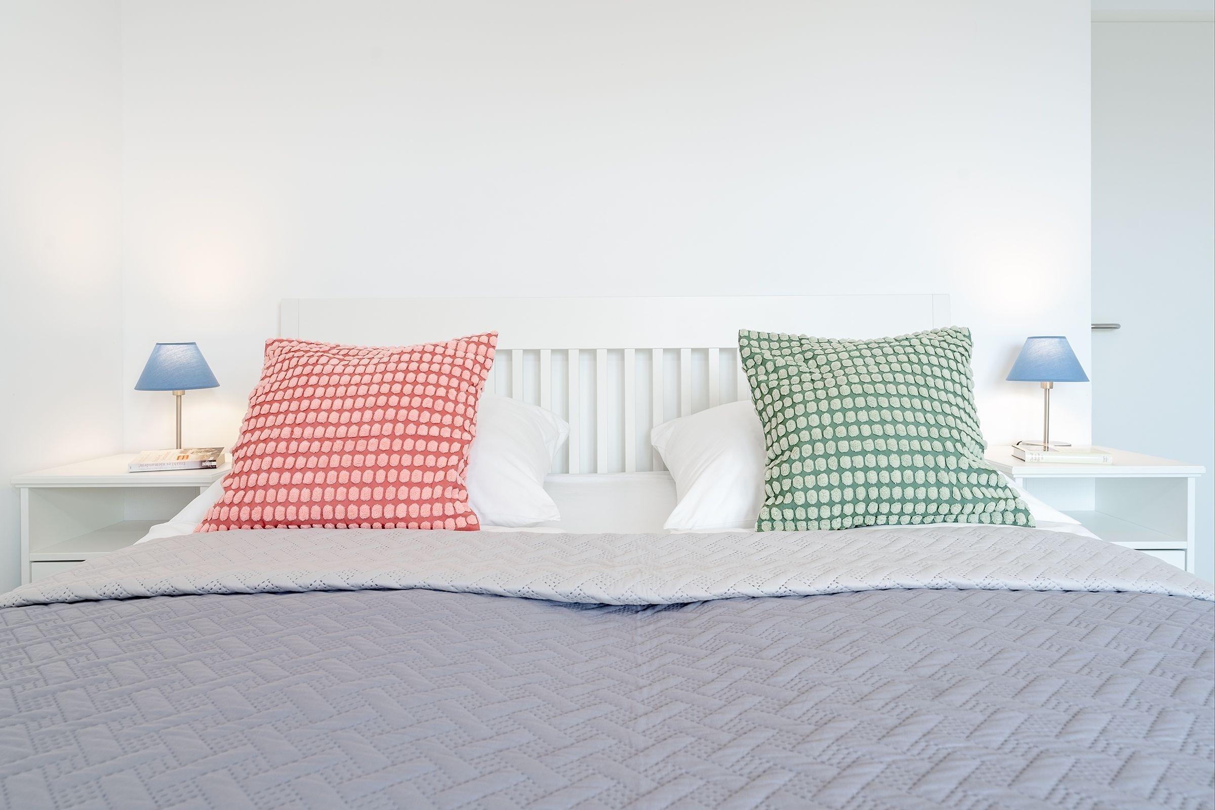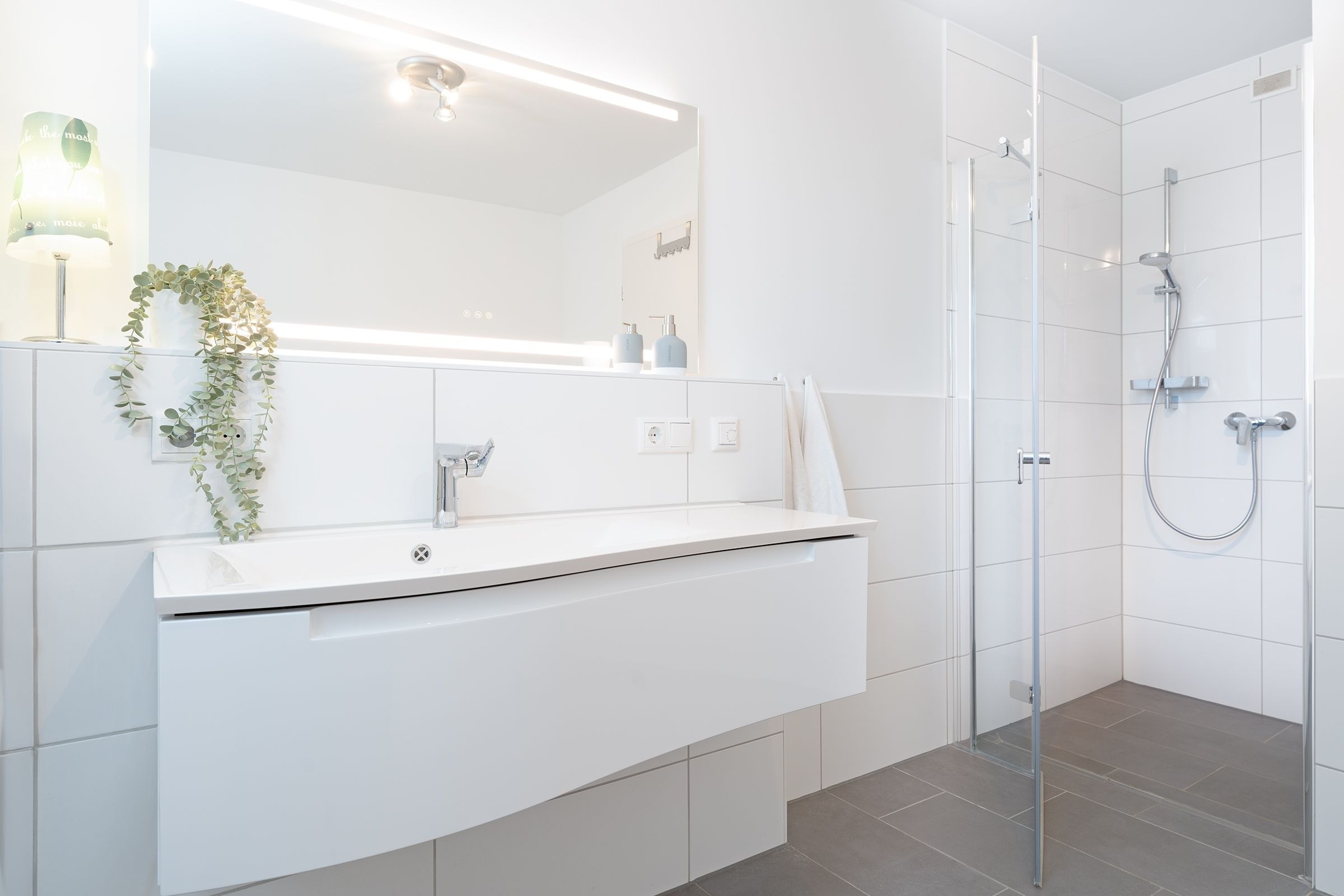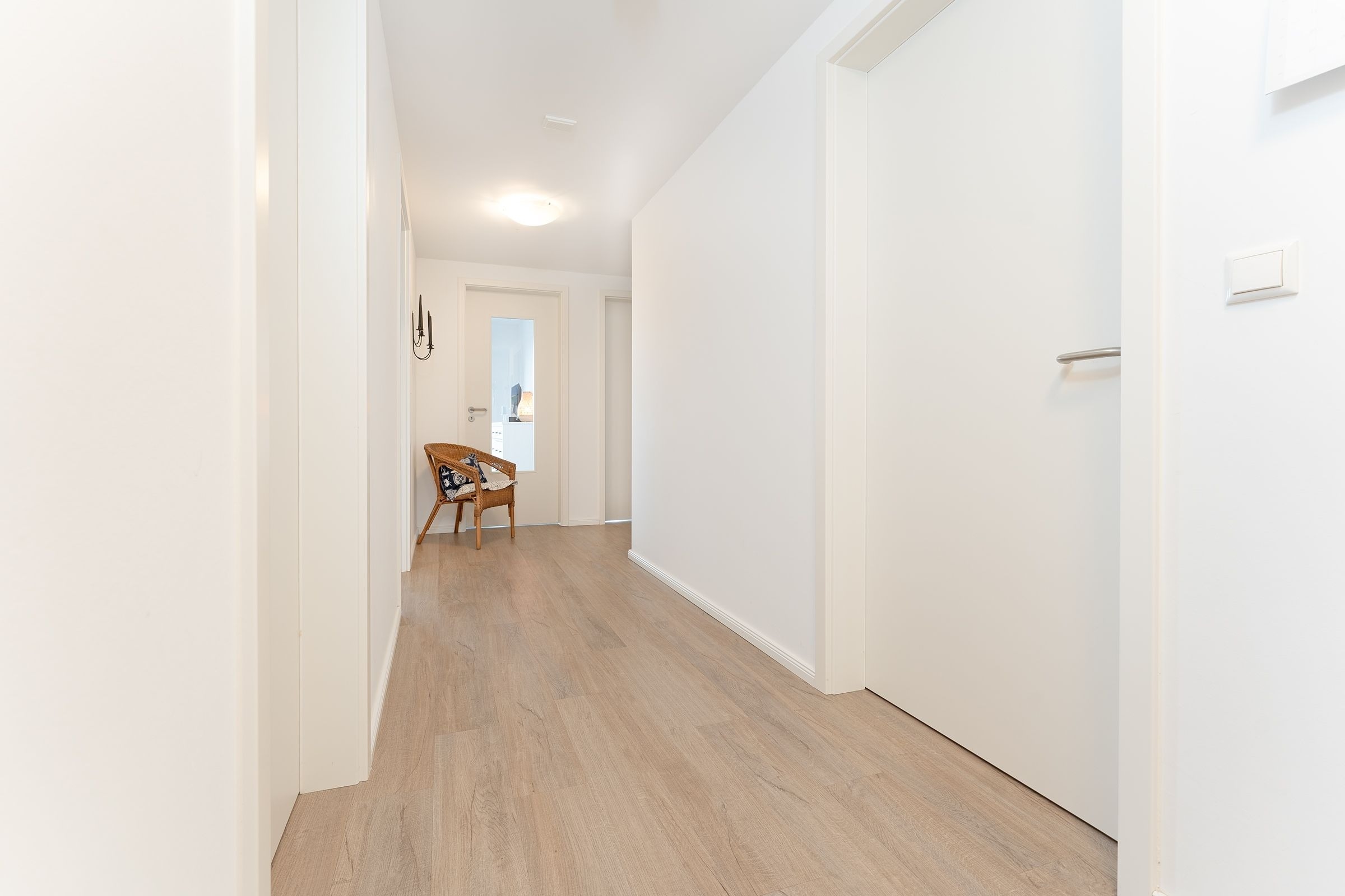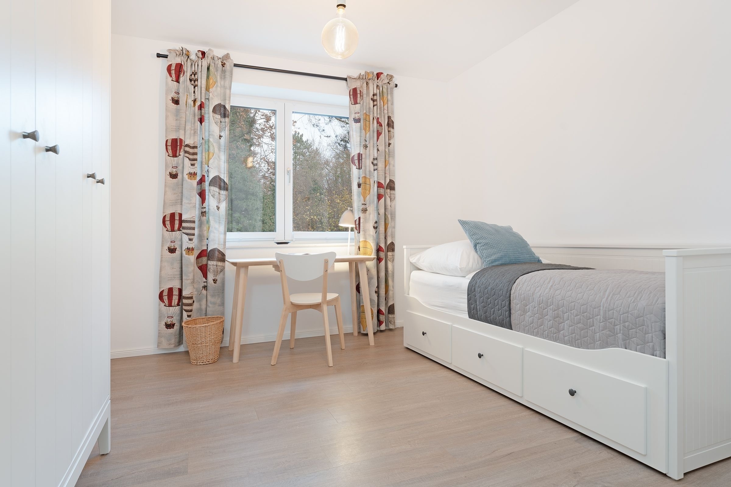 Der helle Wohnbereich empfängt Sie mit einer gemütlichen Sitzecke und einer kuscheligen Sofalandschaft – und einem traumhaften Blick auf den Großen Plöner See. Treten Sie auf den großzügigen, möblierten Südwest-Balkon und lassen Sie hier den Abend mit Ihren Lieblingsspeisen ausklingen. Die zum Wohnbereich hin offene, moderne Küche mit Geschirrspüler und Nespresso-Maschine bringt Hobbyköche sicher zum Lächeln. Nach einem tollen Urlaubstag finden Sie im Doppelbett (2x 90x200 cm) im Schlafzimmer erholsamen Schlaf. Von hier aus haben Sie auch Zutritt auf den großen Balkon. Das zweite Schlafzimmer bietet ein Kojenbett (80x200 cm, ausziehbar auf 160x200 cm). Morgens begrüßt Sie das tageslichthelle Bad mit bodengleicher Dusche und Badewanne. Dazu gibt es ein Gäste-WC. Ziehen Sie zum Start in den Tag ein paar Bahnen durch den See, eine schöne Badestelle ist fußläufig erreichbar.