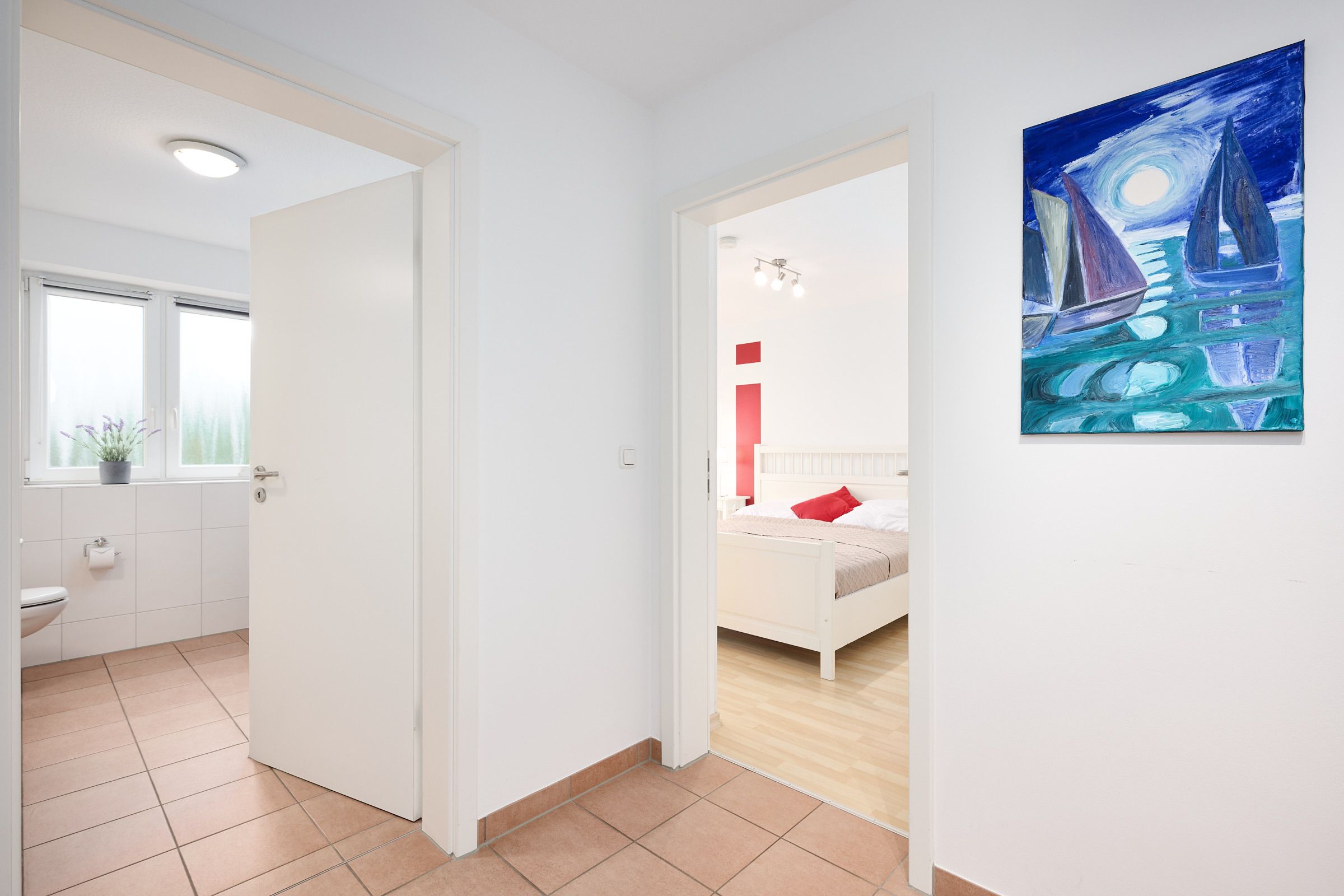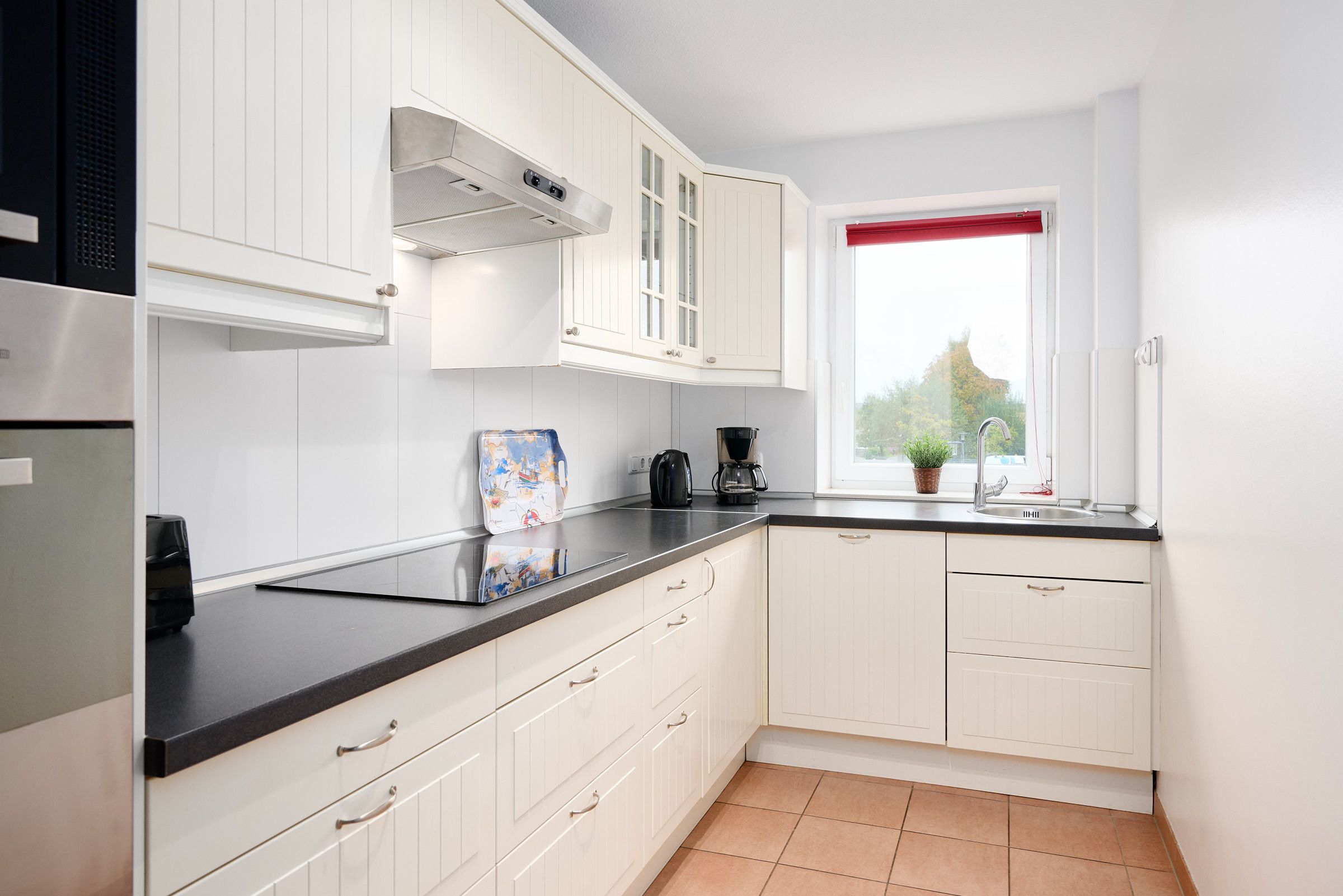 Die Fläche verteilt sich auf 2 separate Schlafzimmer, eine Küche, ein Duschbad mit WC, ein Gäste-WC und ein Wohnzimmer mit Essbereich. Hier können bis zu 4 Personen mit Kleinkind den Urlaub genießen. Über einen Fahrstuhl können Sie die Wohnung im 1. Obergeschoss bequem erreichen. Die mit allem Komfort ausgestattete Küche beinhaltet ein Cerankochfeld, Mikrowelle, Geschirrspüler, Wasserkocher, Kaffeemaschine, Kühlschrank und diverses Koch- und Essgeschirr. Vom großzügigen, lichtdurchfluteten Wohnzimmer können Sie direkt auf den zur Sonnenseite gerichteten Balkon treten. Was gibt es schöneres, als nach einem erholsamen Tag bei einem Glas Wein den Abend zu genießen!