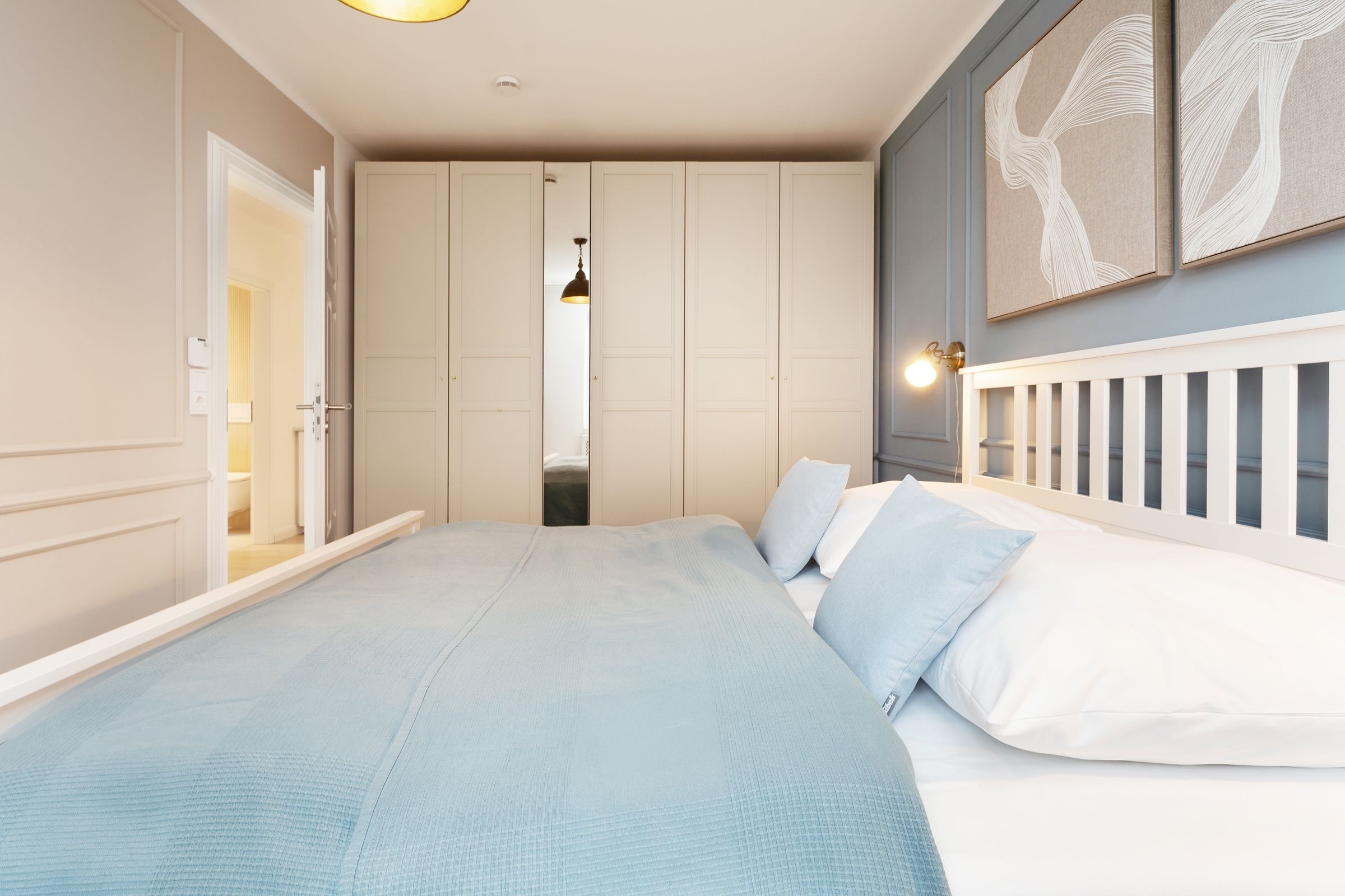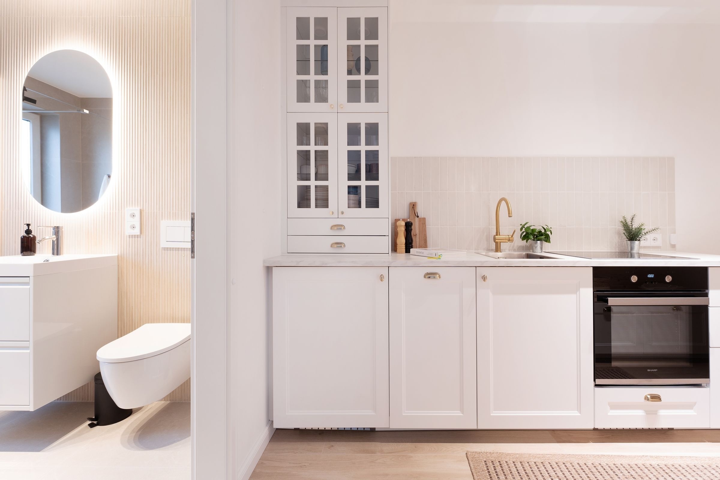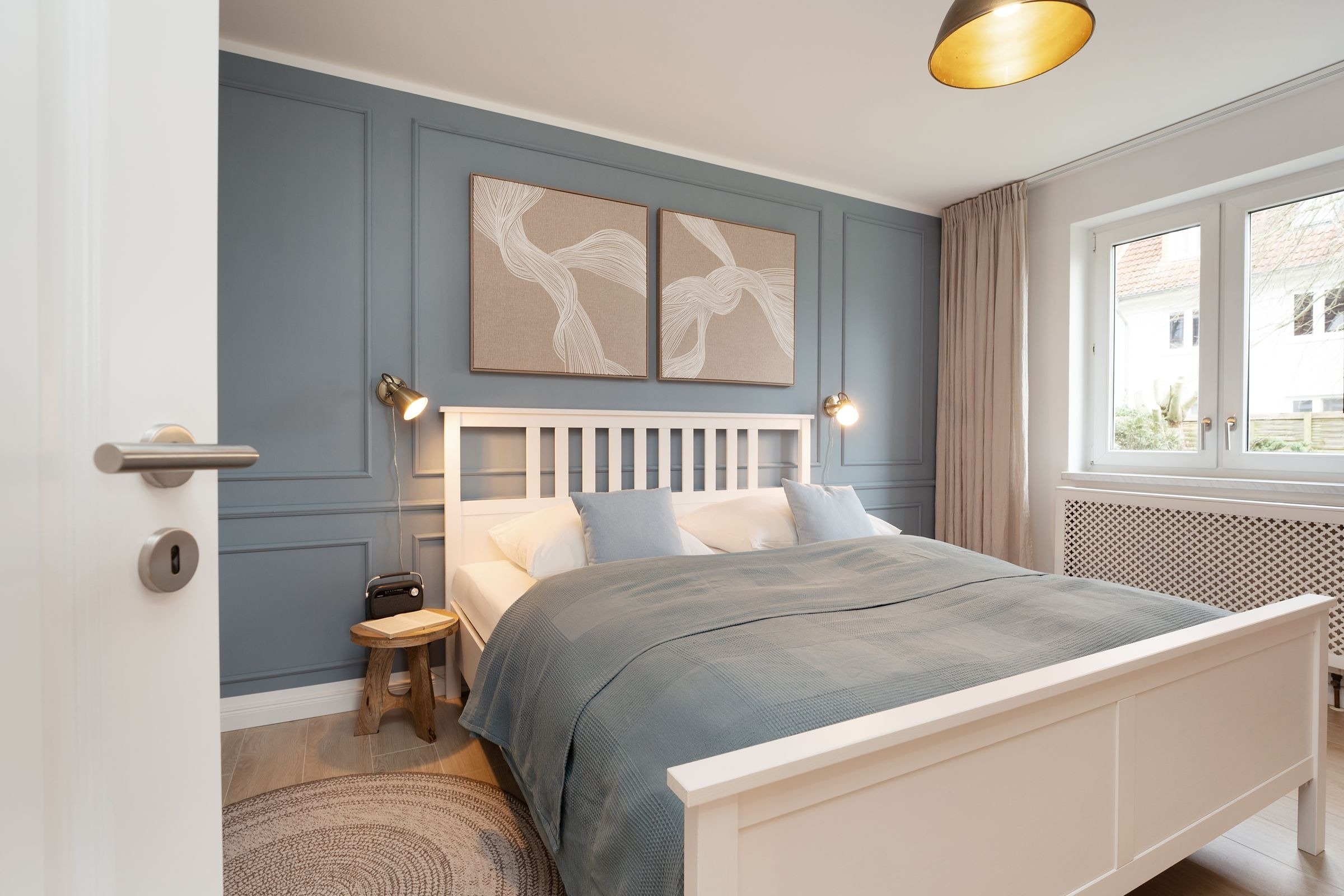 Diese elegant eingerichtete Ferienwohnung auf dem Priwall besticht durch ihre geschmackvolle Einrichtung und lichtdurchflutete Räume. Der stilvolle Wohnbereich lädt mit einer gemütlichen Sitzecke und einem hochwertigen Flachbild-TV zu entspannten Abenden ein. Die großzügige Terrasse, ausgestattet mit Gartenmöbeln, bietet die perfekte Kulisse für gemeinsame Stunden an der frischen Ostseeluft. Die offene Küche im Eingangsbereich verbindet modernes Design mit Funktionalität. Ausgestattet mit einem Induktionsherd, Backofen, einem Kühlschrank mit Gefrierfach, Nespresso-Maschine, Wasserkocher und weiteren Annehmlichkeiten, ist sie perfekt für Kochliebhaber. Der angrenzende Essbereich fügt sich harmonisch in das Ambiente ein. Das Schlafzimmer überzeugt durch sein komfortables Doppelbett (2x 90x200 cm) und stilvolles Interieur. Ein bequemes Schlafsofa bietet im Wohnbereich zwei zusätzliche Schlafmöglichkeiten (ca. 140x200 cm). Das tageslichthelle Badezimmer ist modern gestaltet und verfügt über eine bodengleiche Dusche sowie einen beheizbaren Handtuchhalter.